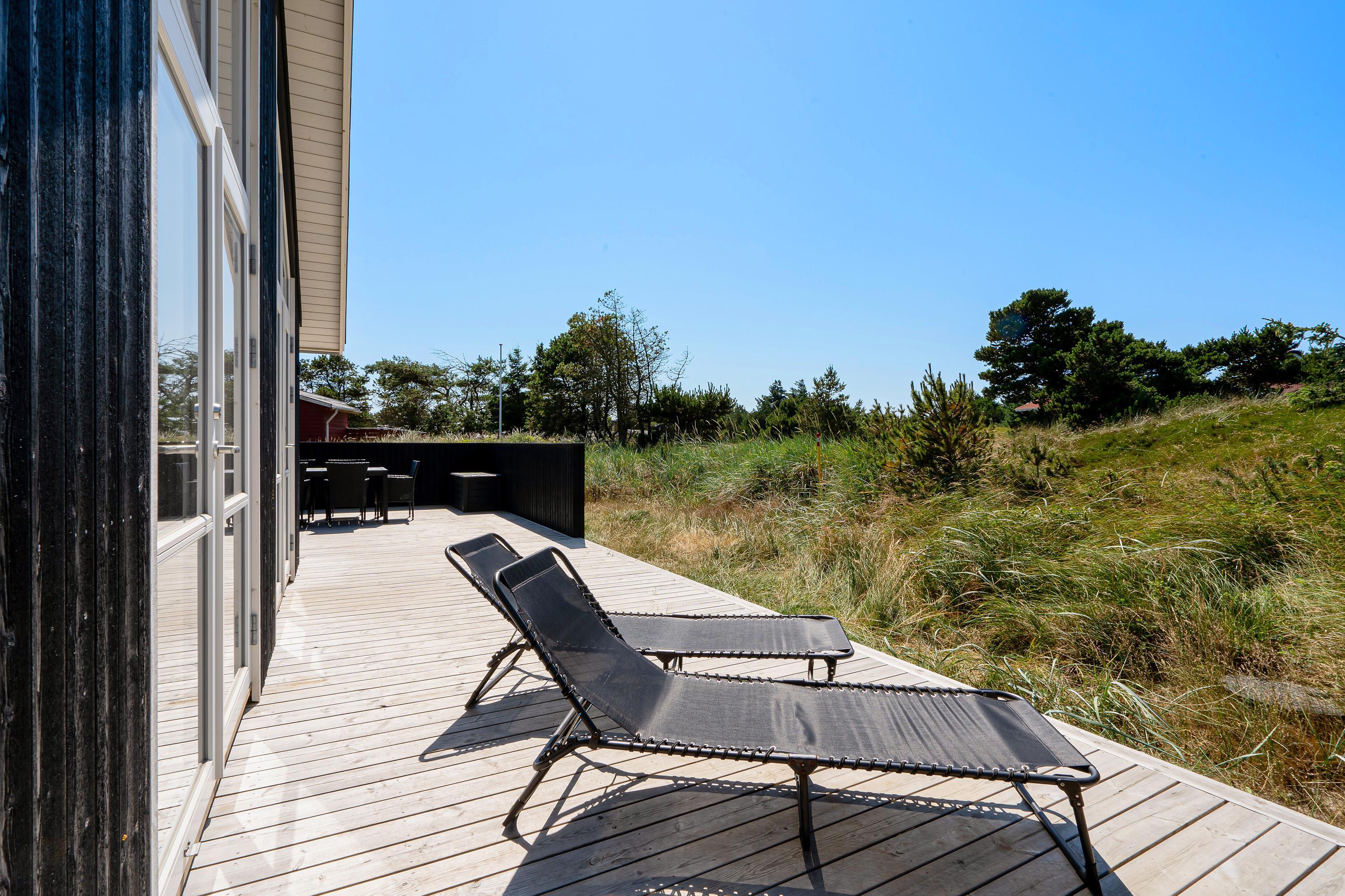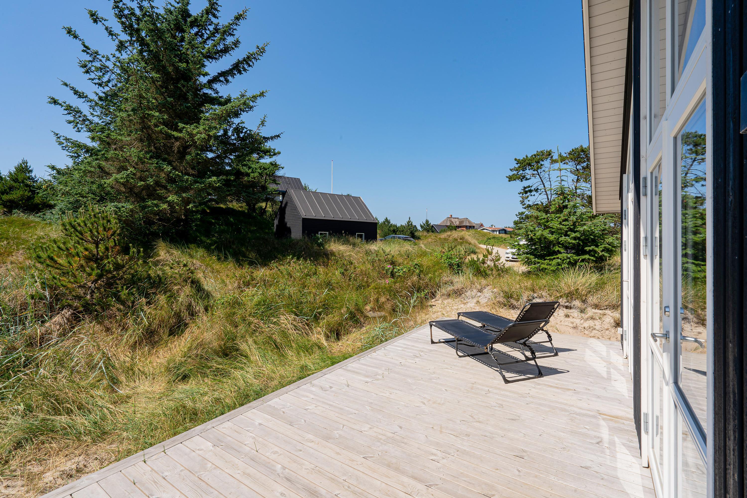 Fra alrummet kan I træde direkte ud på sommerhusets lækre træterrasse. Her er det oplagt at rykke ud på de feriedage, hvor vejret er helt i top. Find jer en god plads i solen og sæt jer til rette i havemøblerne med en god bog og lidt koldt at drikke.