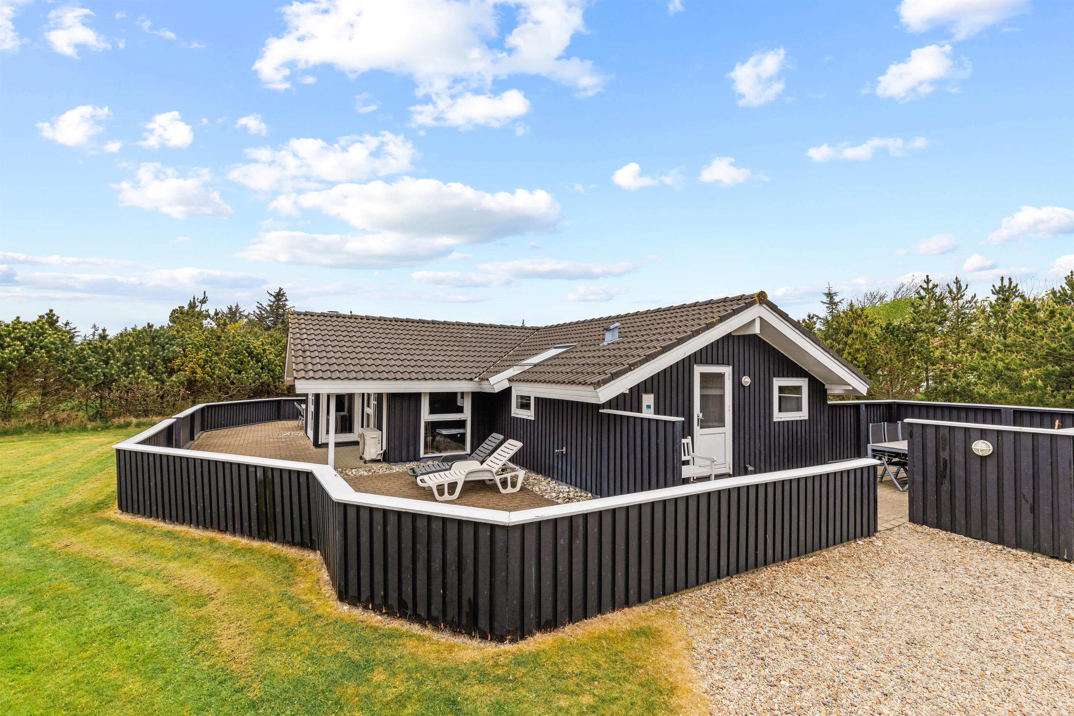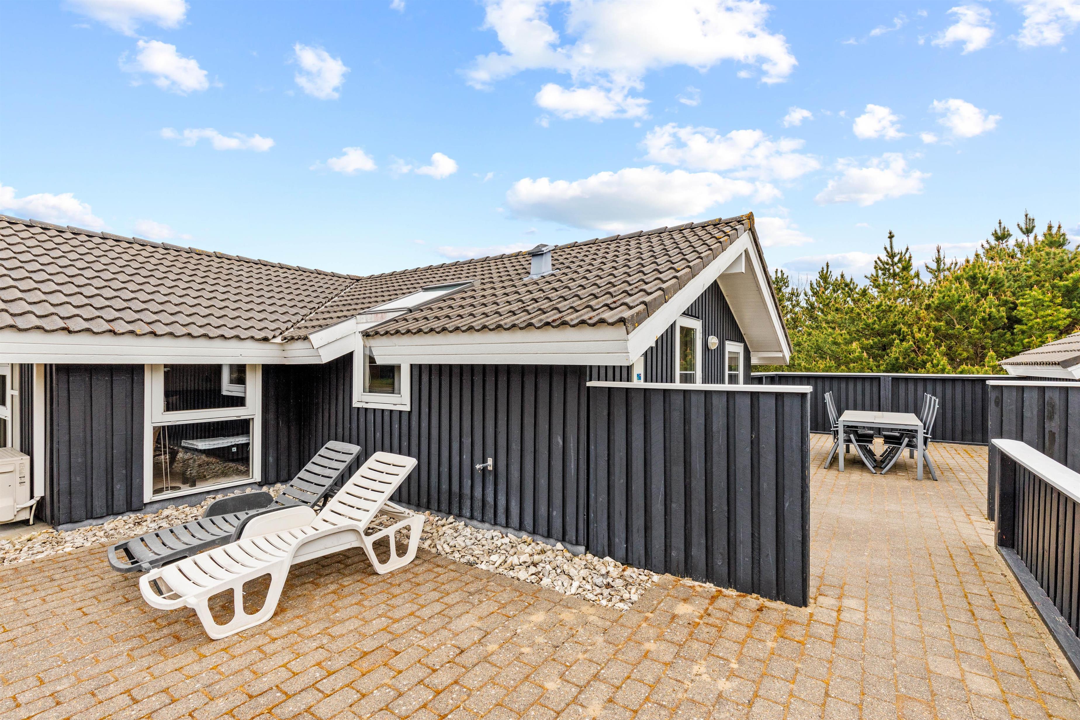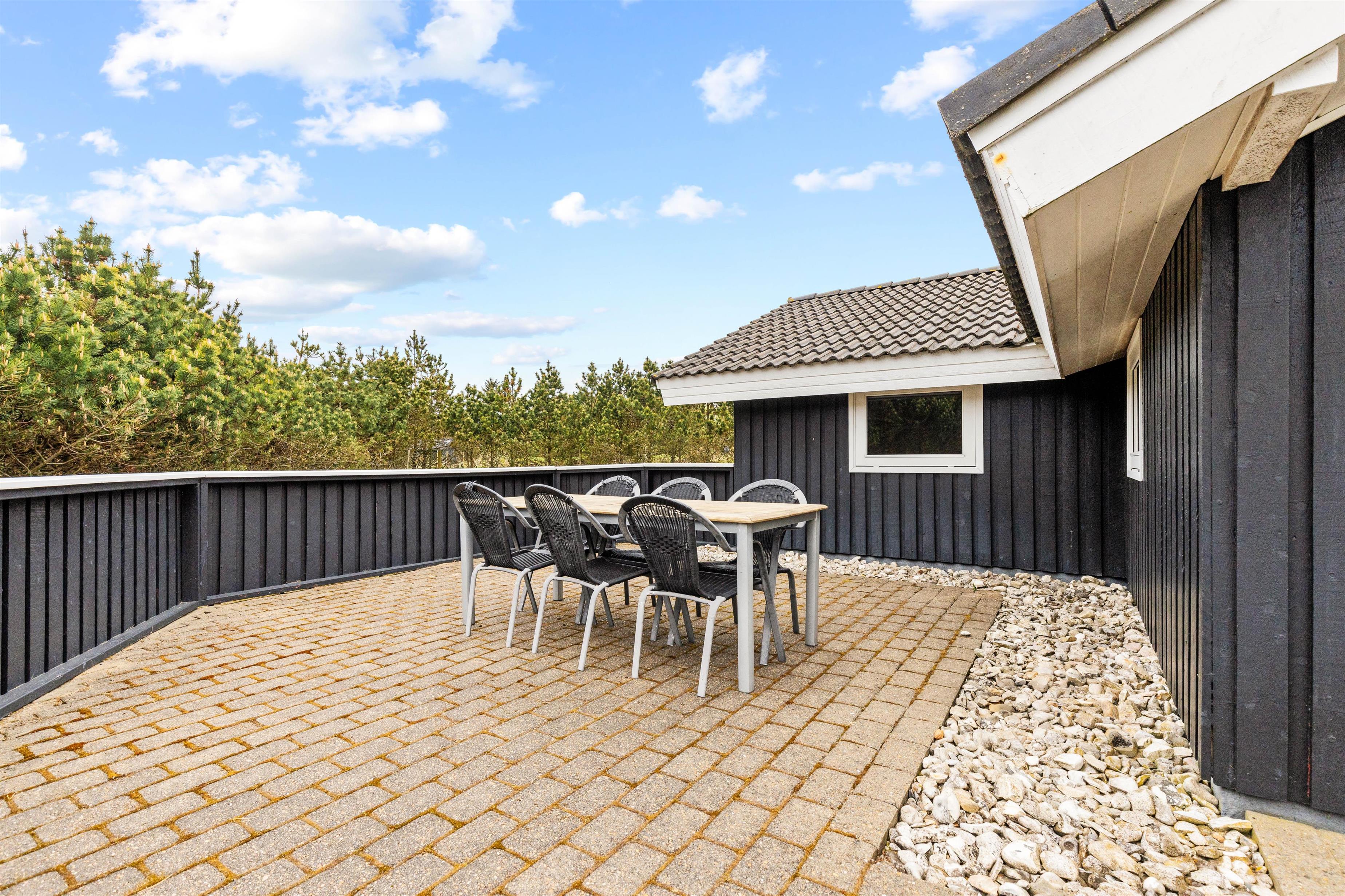 Om sommeren foregår det meste af ferien sikkert på den dejlige terrasse og store grund. Den store terrasse er afskærmet hele vejen rundt og udstyret med bekvemme møbler. Her kan I altid finde det helt perfekte sted til at nyde solen.