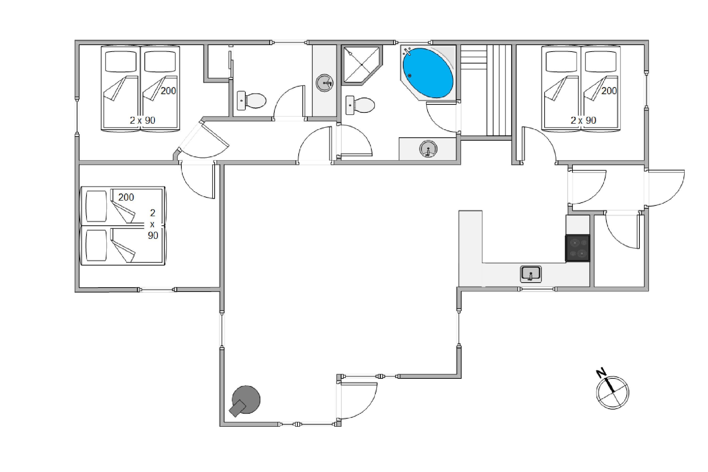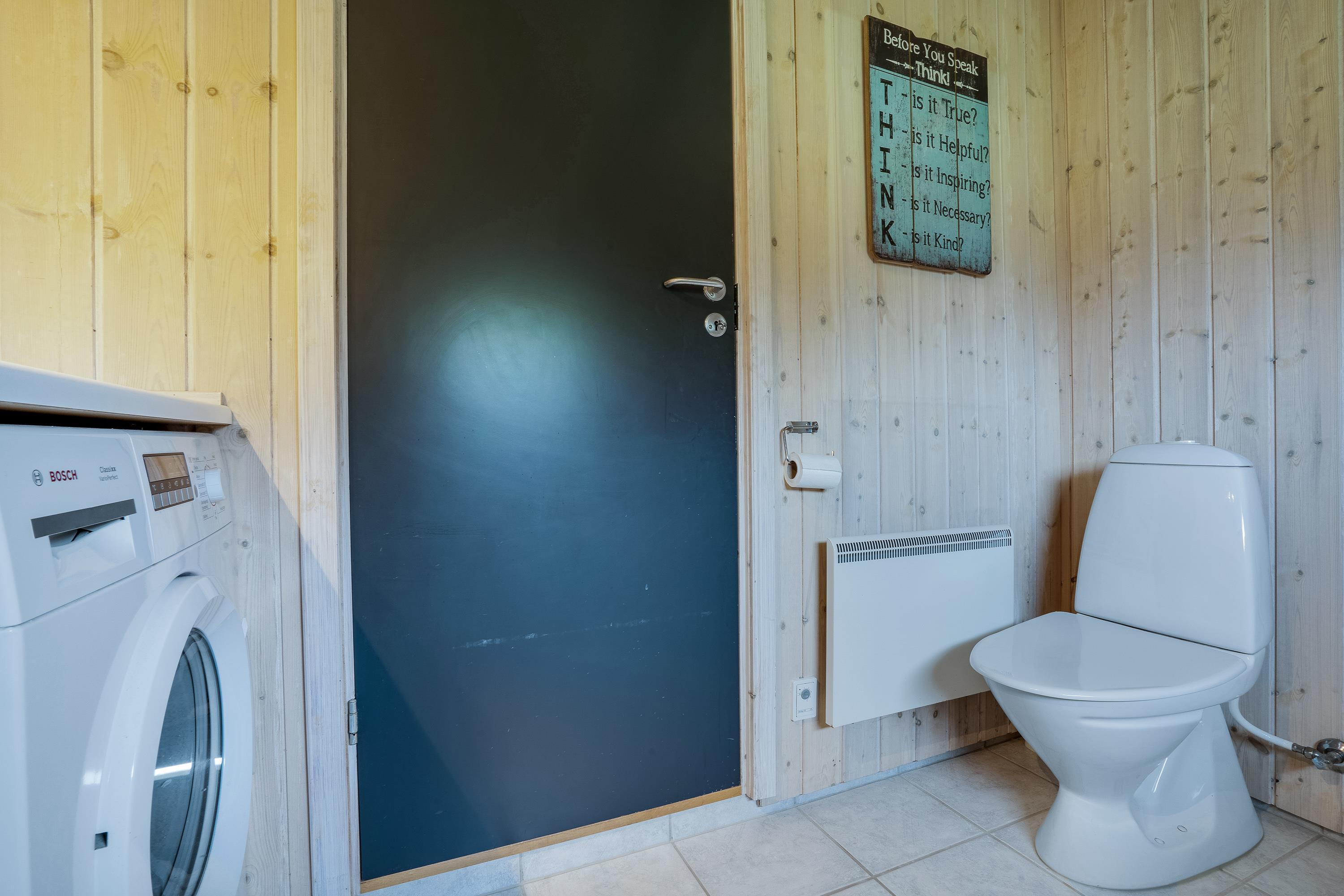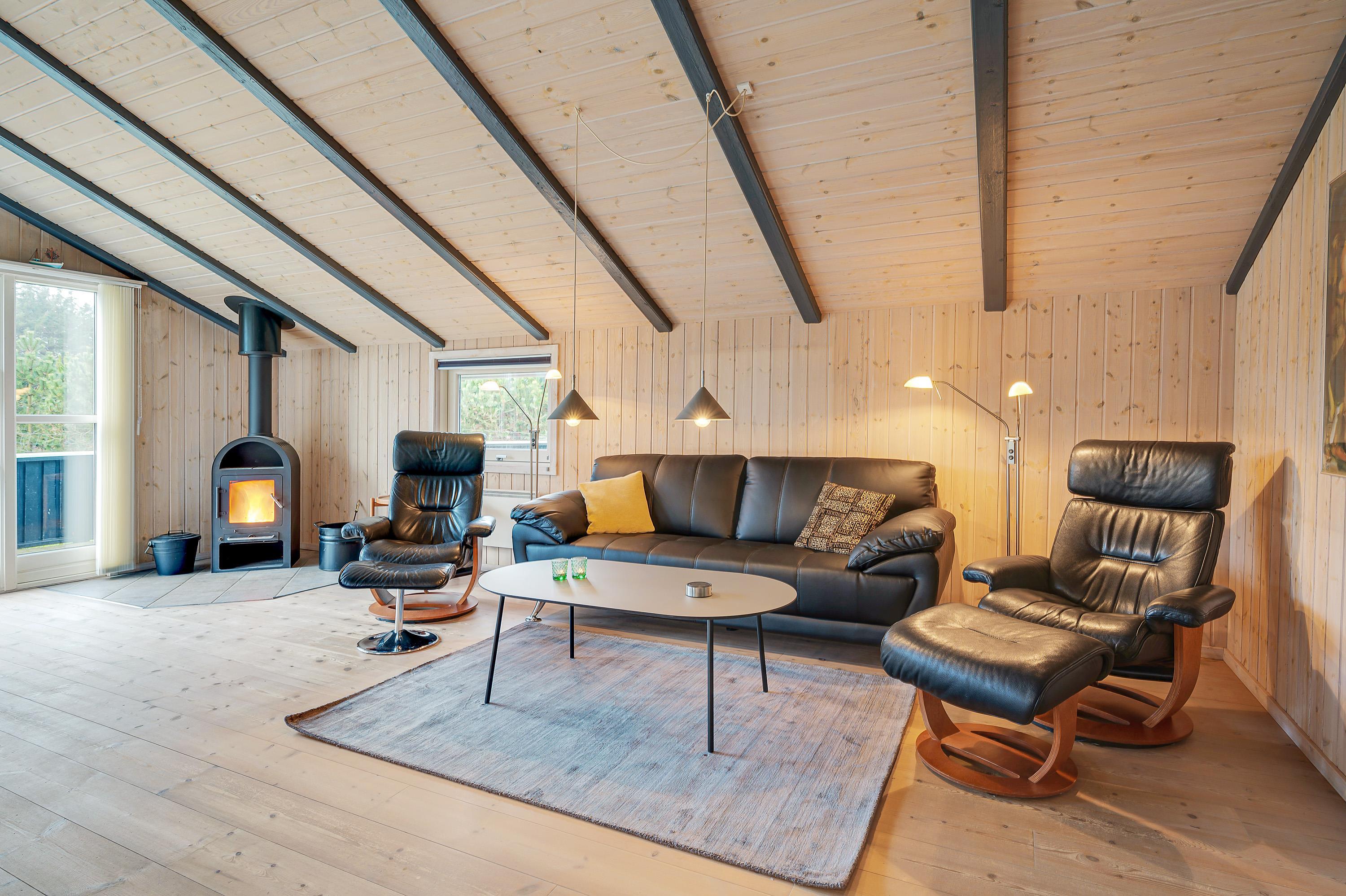 De 2 badeværelser har begge gulvvarme, og i det ene har I en skøn wellnessafdeling. Et afslappende bad i spaen, efterfulgt af en tur i saunaen, er den perfekte måde at blive varmet godt igennem efter en dag i den friske vesterhavsluft, – det er afslapning pur. Efter jeres egen lille wellness-kur, kan I tænde op i brændeovnen og lade dagen klinge ud med den hyggelige varme.