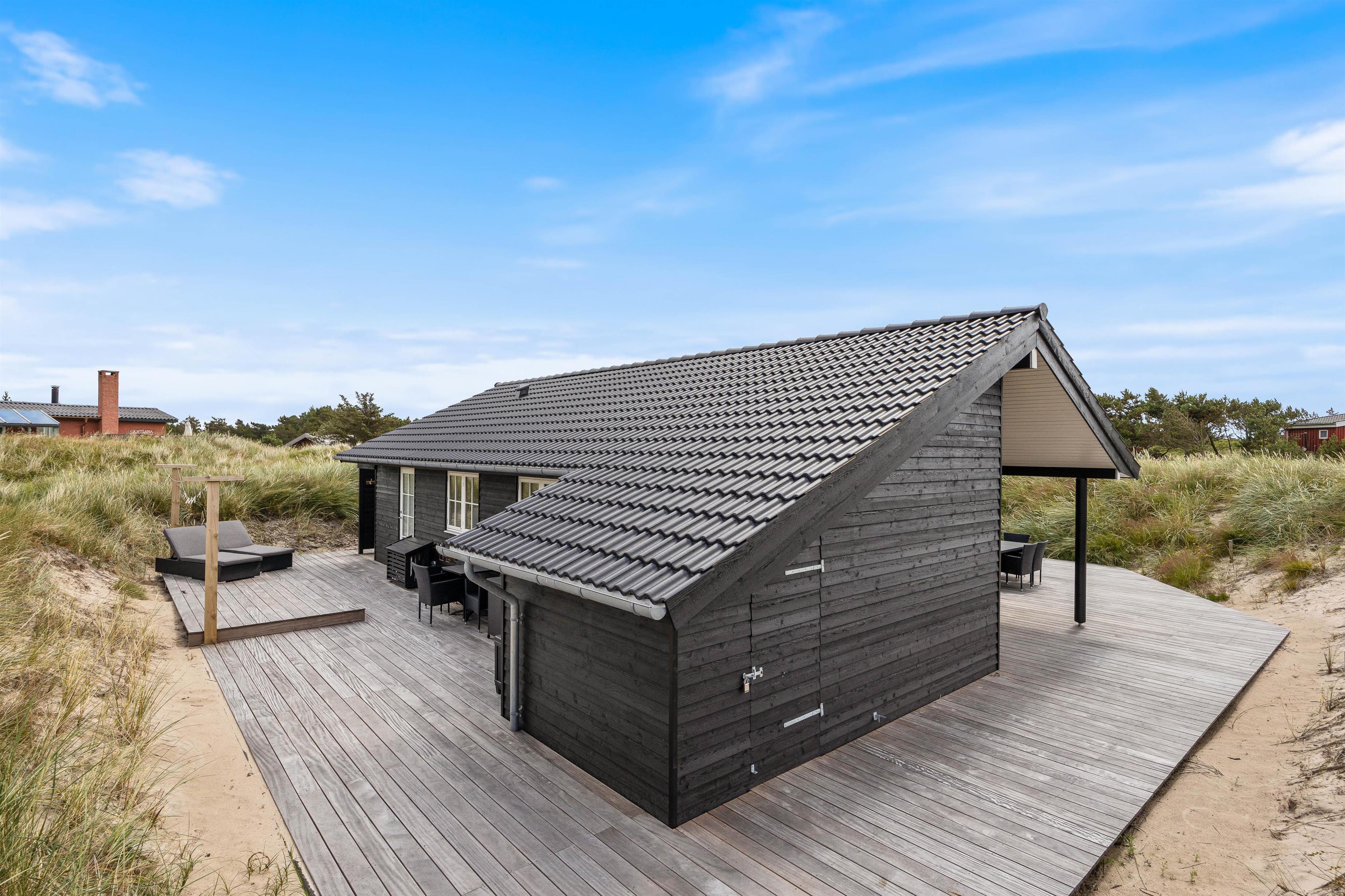På en naturskøn plet i Vejers Strand, kun 400 meter fra Vesterhavet, finder I dette flotte sommerhus til 4 personer. Det klassiske træhus er opført i 2021 og byder på et velafstemt miks mellem moderne, skandinavisk stil og høj hyggefaktor i bedste charmerende sommerhusstil. Det indbydende indre er blandt andet indrettet med brændeovn, og en stor træterrasse hele vejen rundt om feriehuset sørger for, at I kan nyde solens stråler fra morgen til aften. På terrassen er der også en udebruser, der kan benyttes fra april til november.