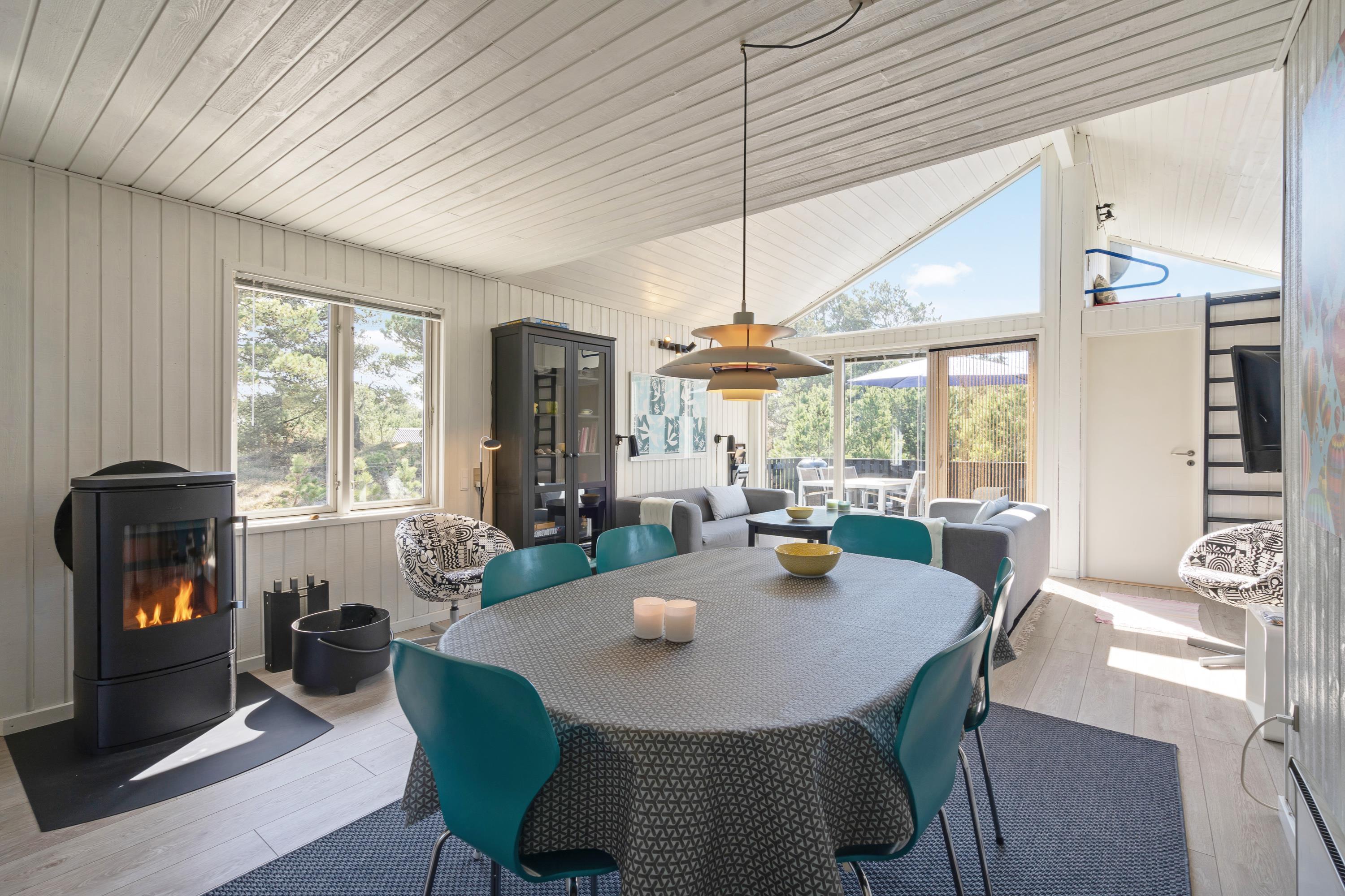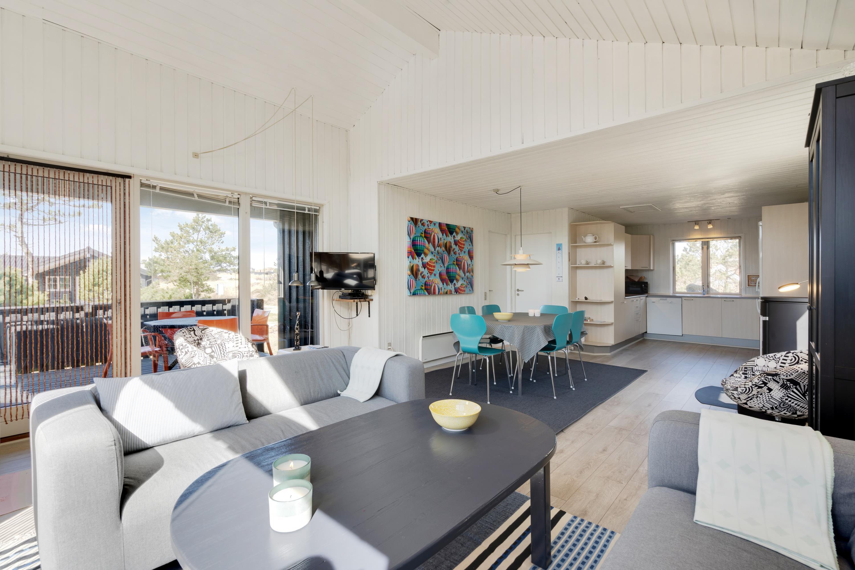 I dette klassiske feriehus er der god plads til de 6 personer, og på de 108 m² er der ikke overladt noget til fantasien. I det veludstyrede og lyst indrettede køkken kan I sammen tilberede dagens måltider, og sammen med jeres nærmeste kan I slappe af og nyde feriefreden i det smagfulde opholdsrum med spiseafdeling og stue.