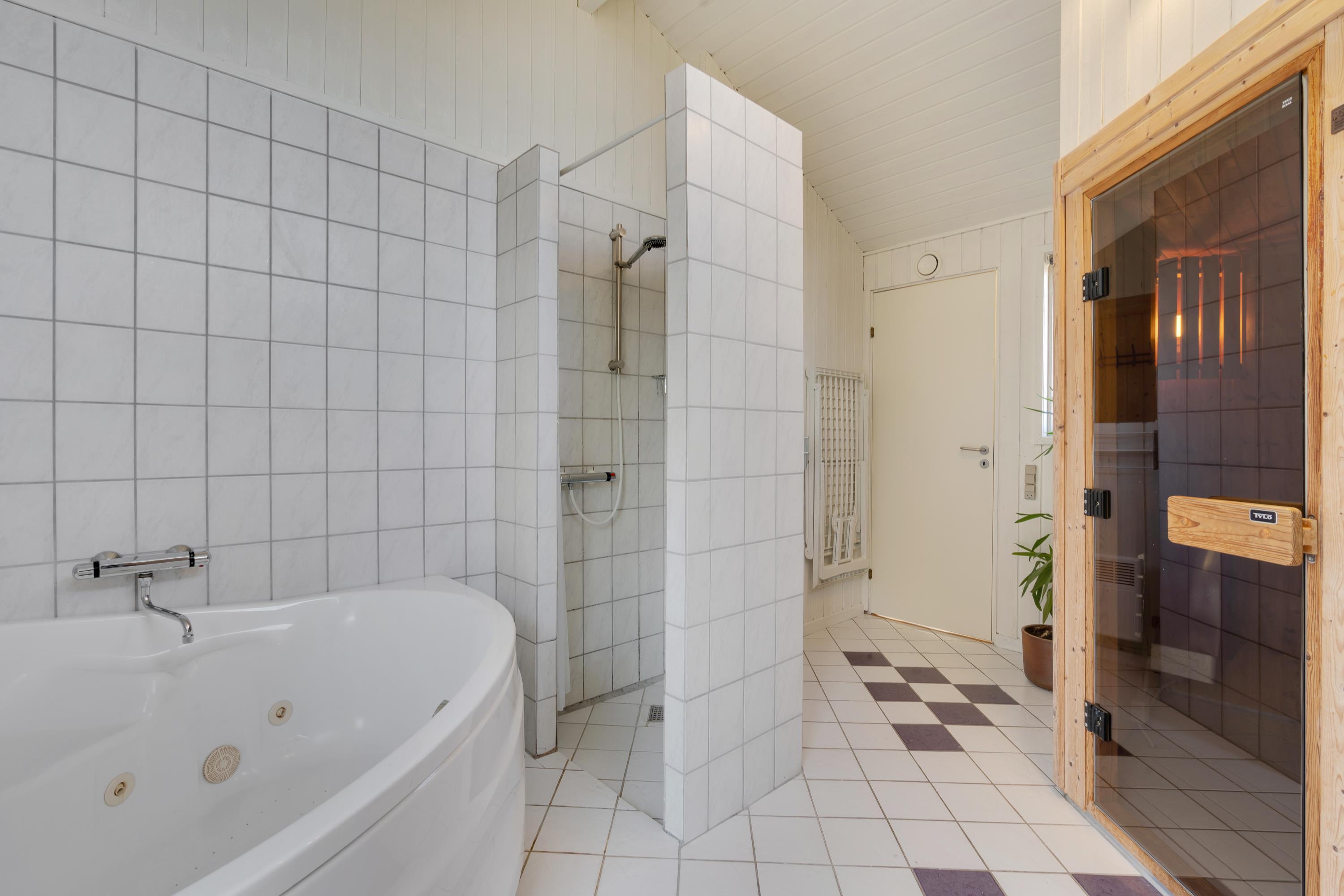 Sovepladserne er fordelt på 3 fine soverum. På det største af badeværelserne finder I en sauna og et spabad, hvor I kan varme jer på de kolde vinterdage eller tanke nye kræfter efter en herlig feriedag ude i den friske luft.