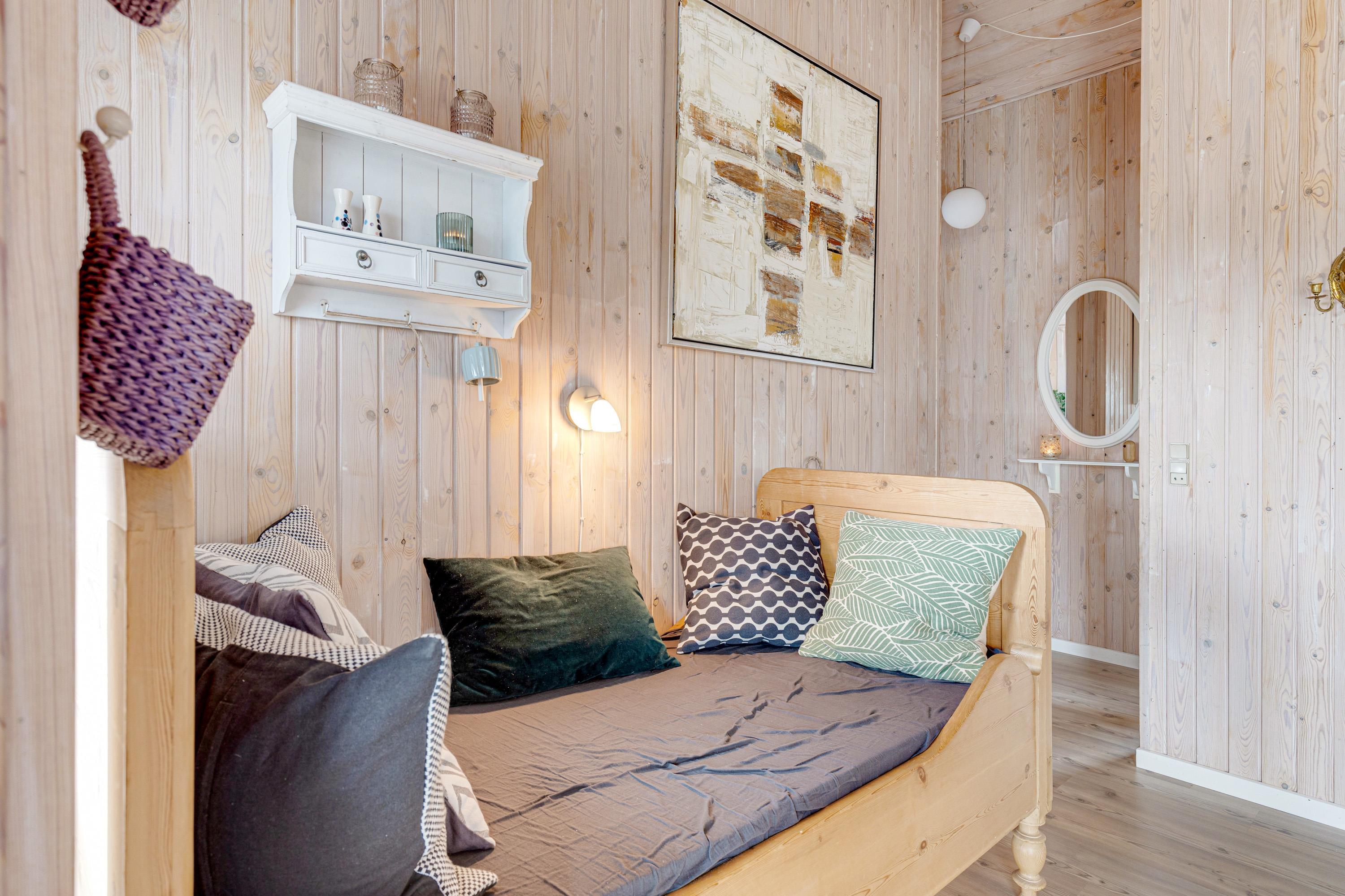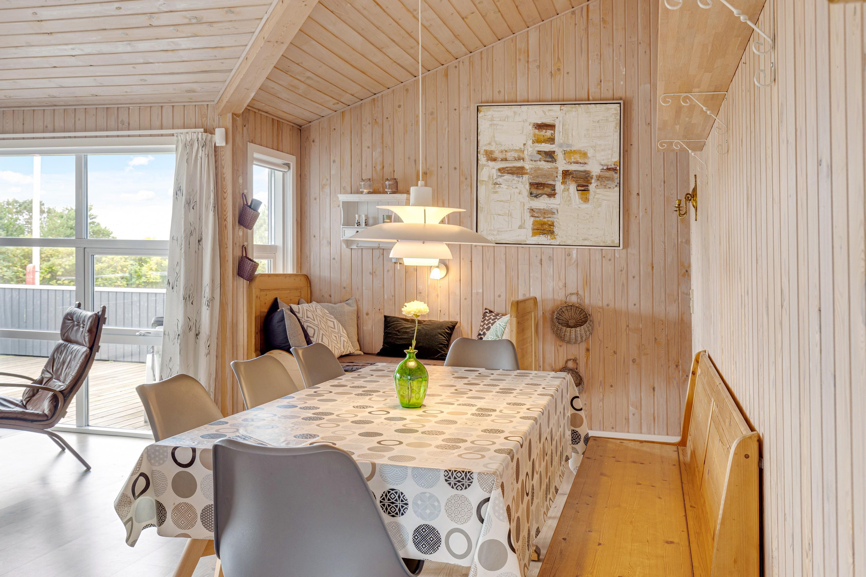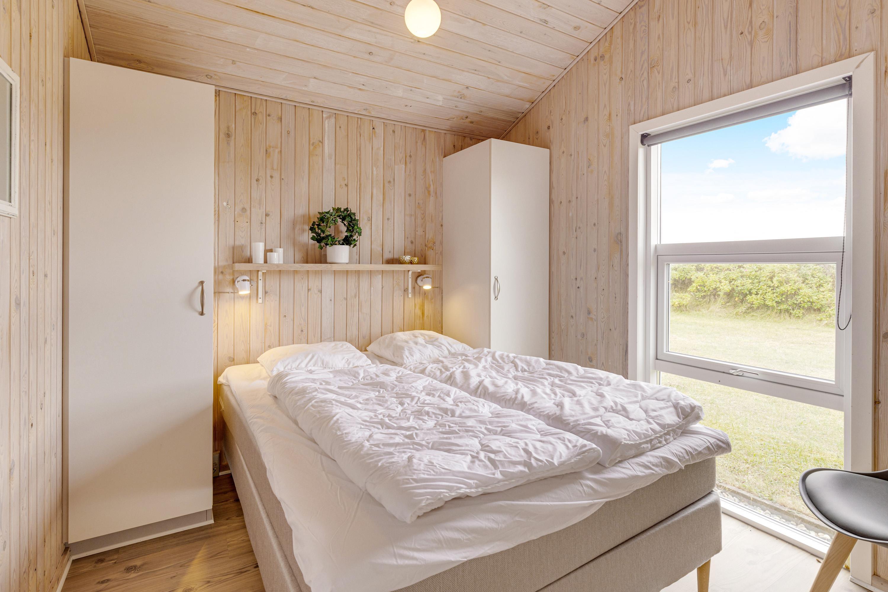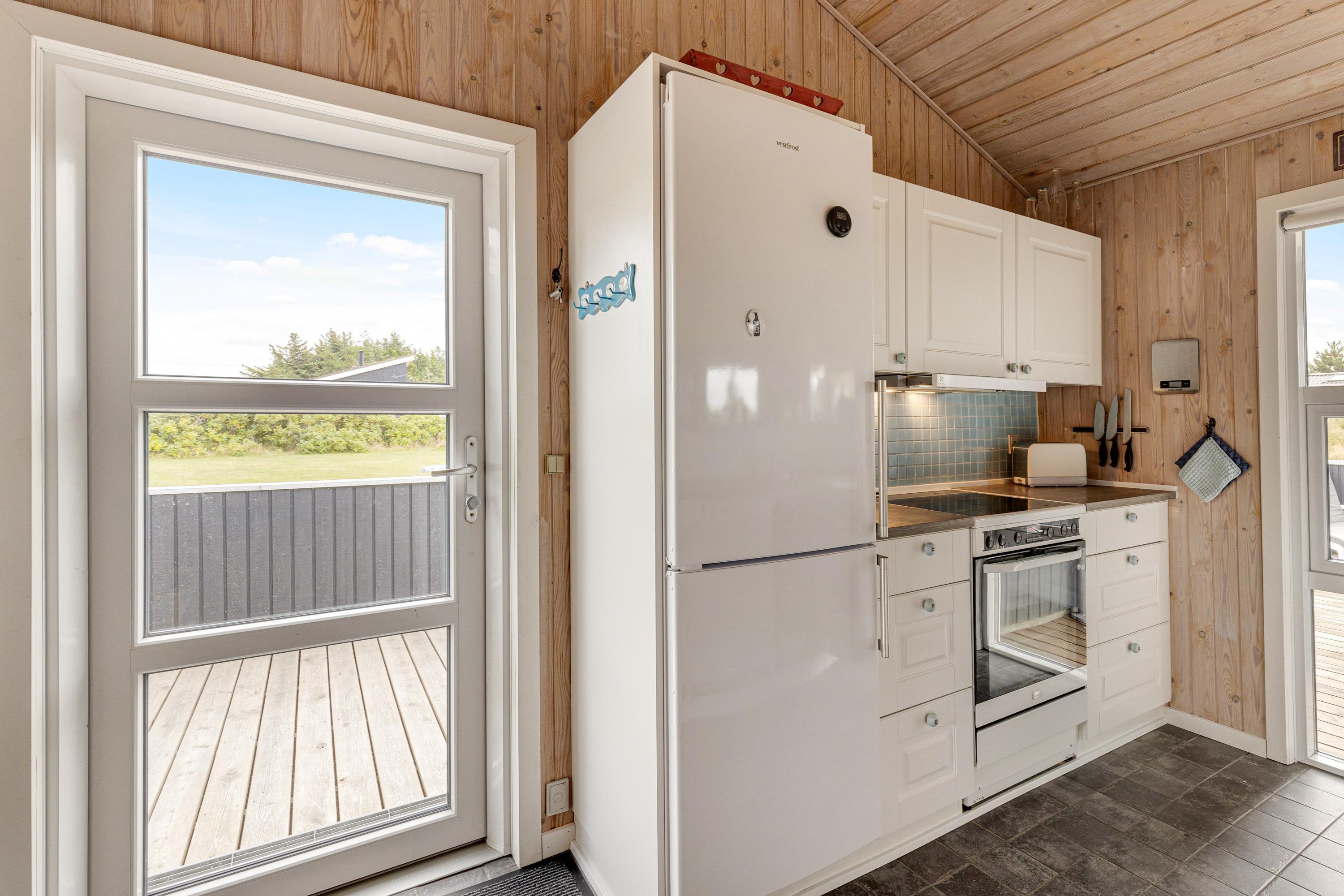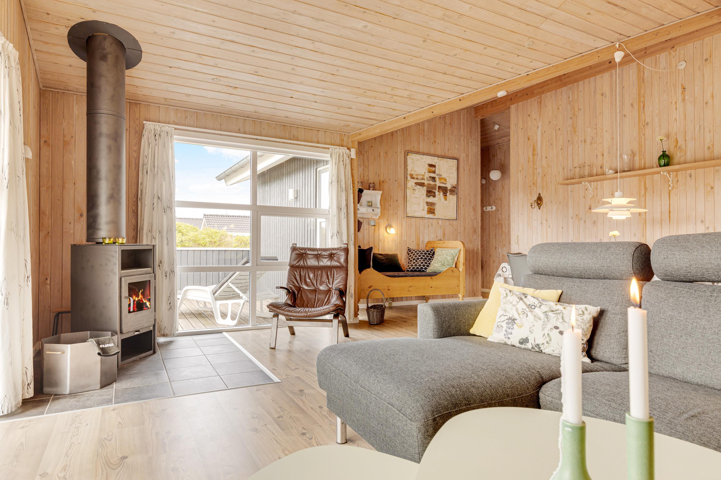 Allerede når I træder inden for i sommerhuset på Jafdalvej 79 i Vejers Strand, vil I blive mødt af den hyggelige og indbydende indretning. De lyse trævægge og -lofter samt det skønne lysindfald skaber tilsammen en dejlig ferieatmosfære for jer at holde ferie i.