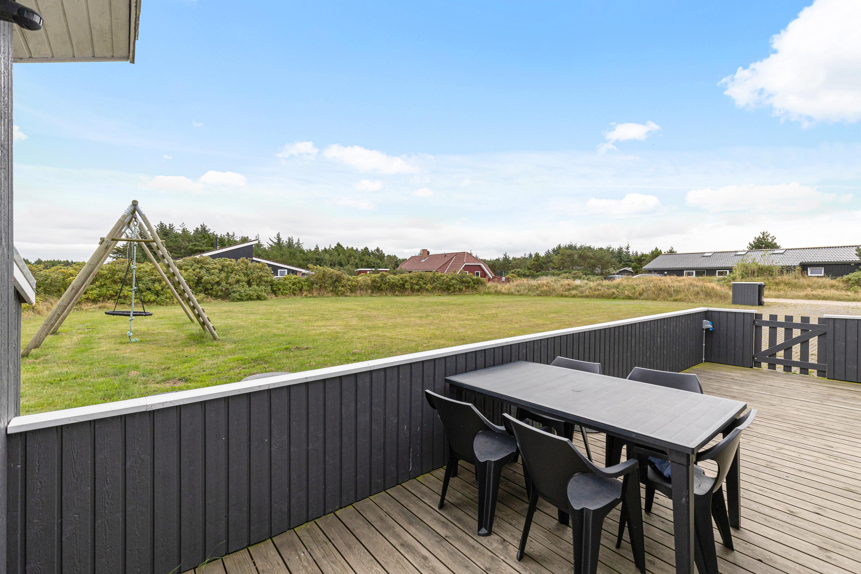 Omkring det meste af sommerhuset løber der en skøn terrasse, som I kan tilbringe de solrige feriedage på. Både havemøbler og liggestole står klar til jer, så I kan finde jer godt til rette på et godt spot i solen. Terrassen er desuden lukket, så her kan I have hunden med ud, uden den går på opdagelse på egen hånd.