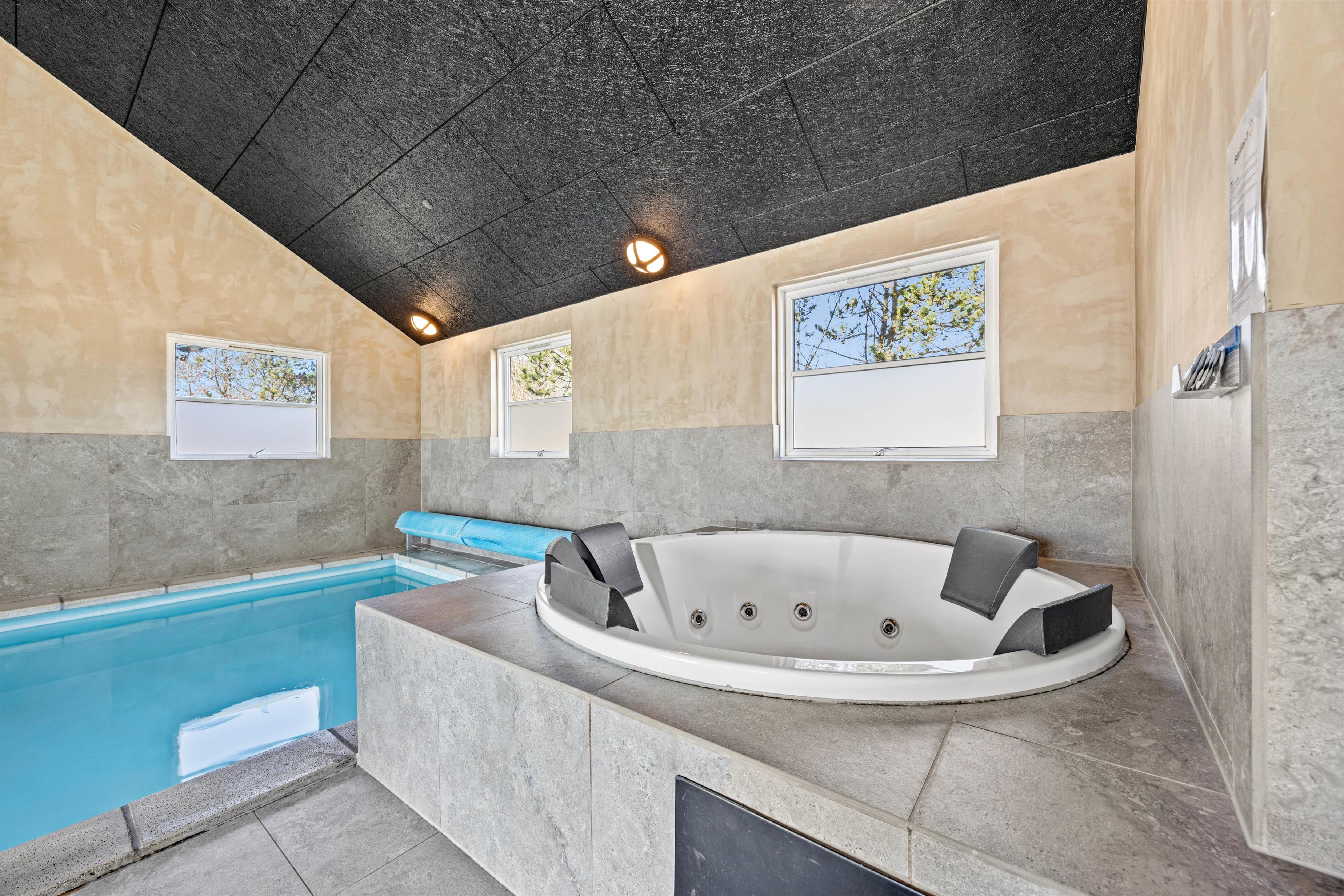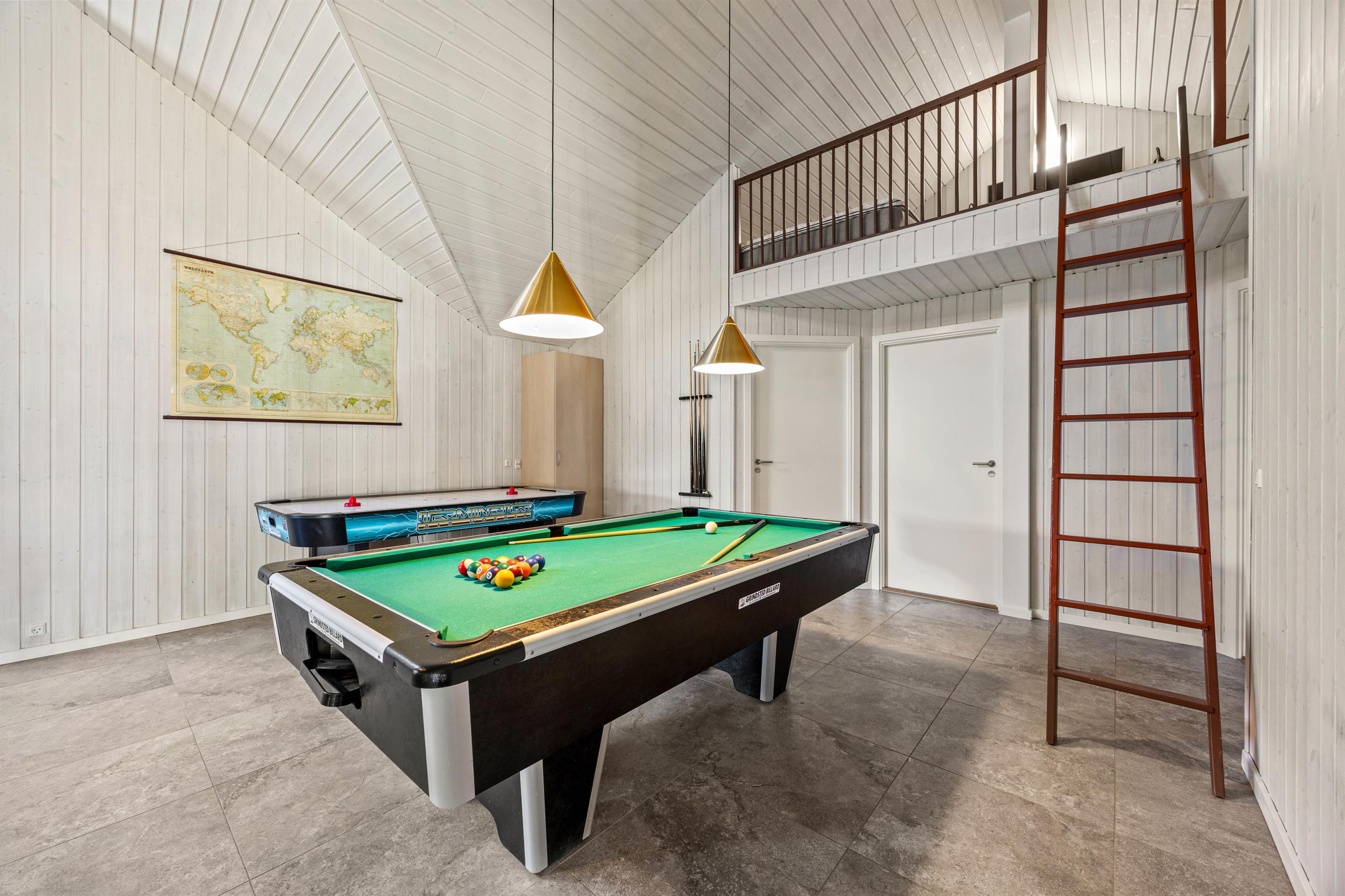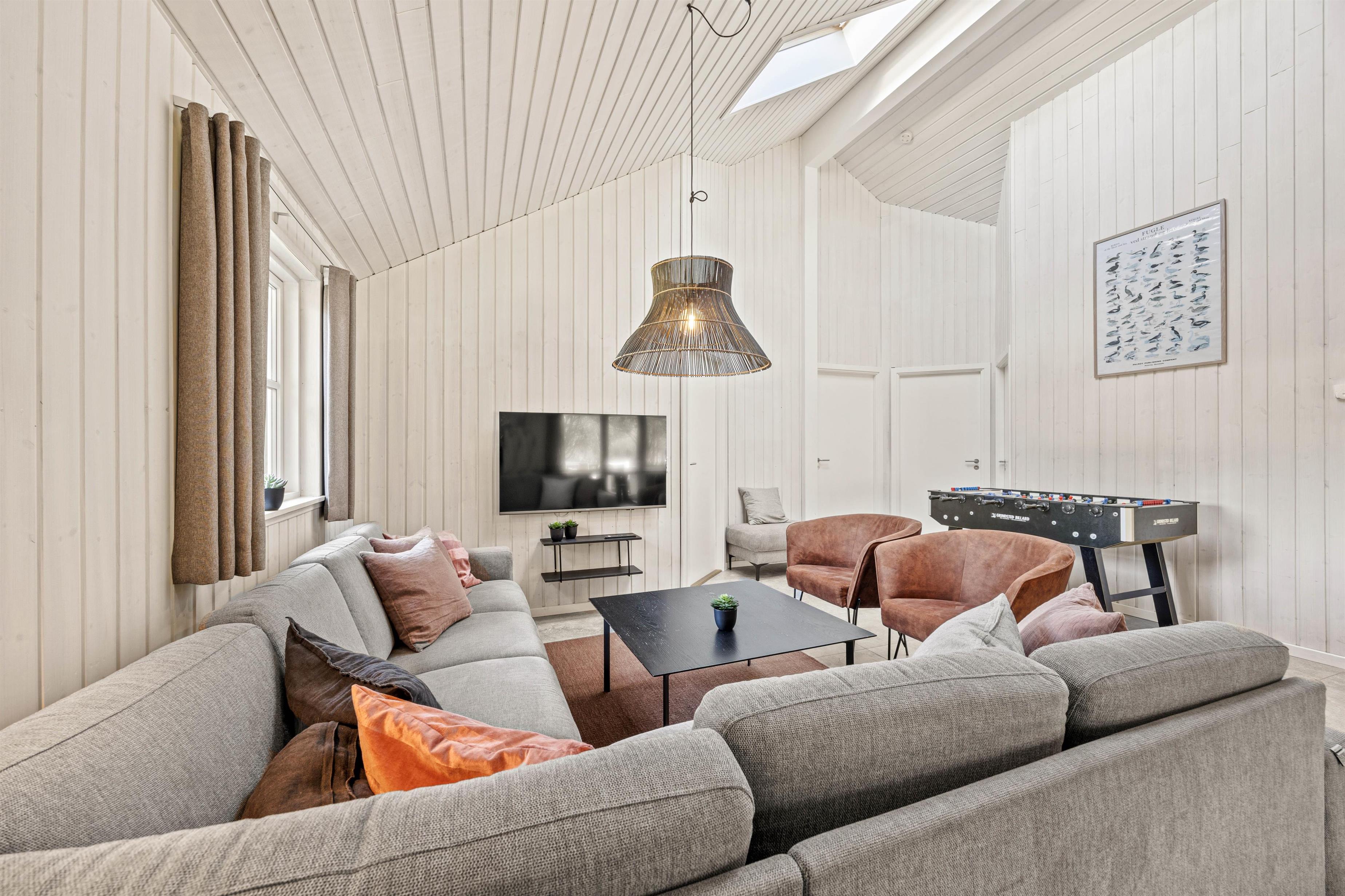 Feriehuset i Vejers er et sandt aktivitetshus, der tilbyder dig og dine medrejsende adskillige muligheder for fritidsaktiviteter. Nyd den fantastiske swimmingpool, eller træk dig tilbage til saunaen eller spabad for at forkæle krop og sjæl. For fysisk aktivitet står billard, bordtennis og bordfodbold til din rådighed. Du kan også være aktiv udendørs på den store grund på 2957 m², hvad enten det er til beachvolleyball eller en afslappet grillaften på den overdækkede terrasse.