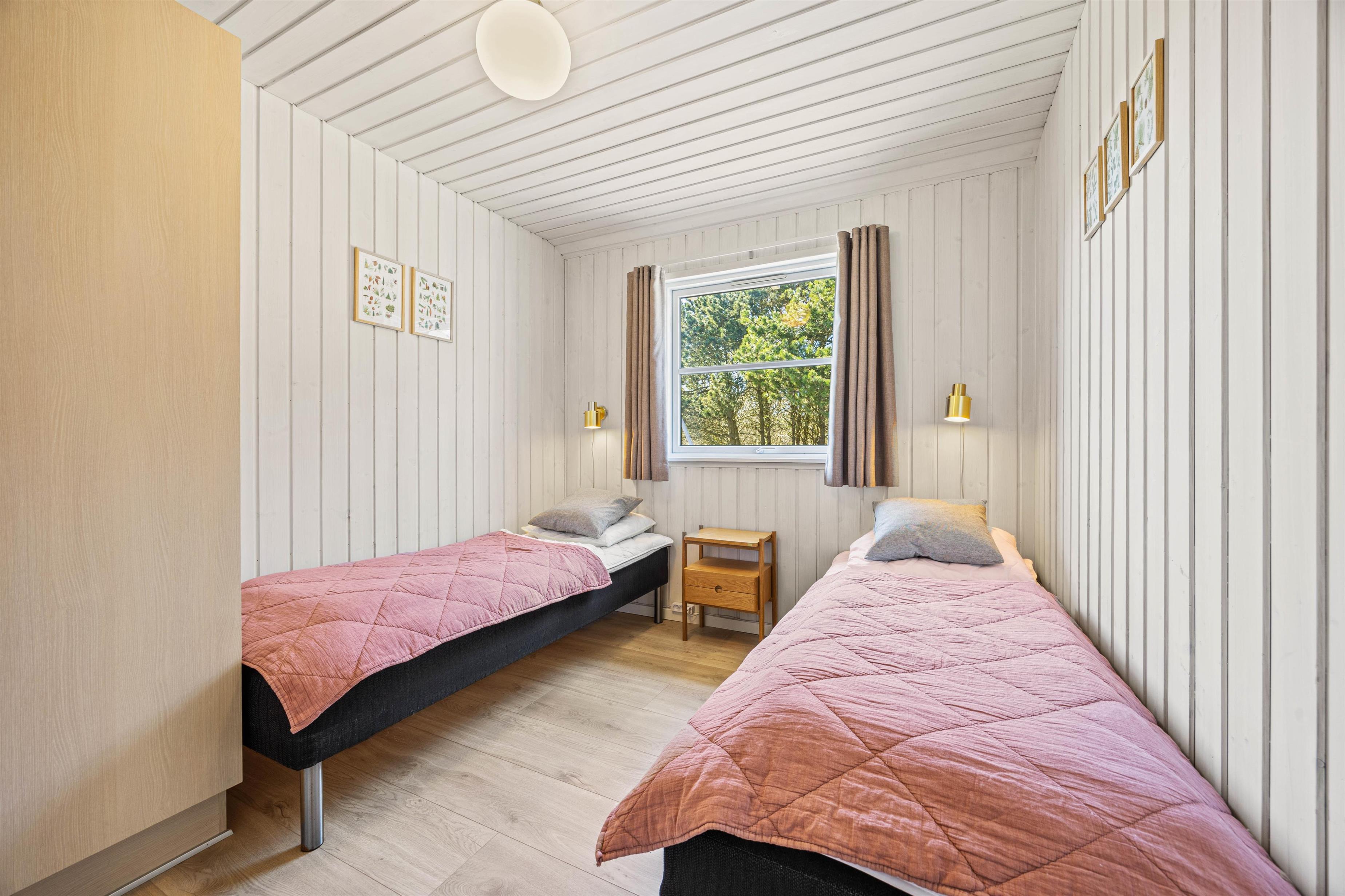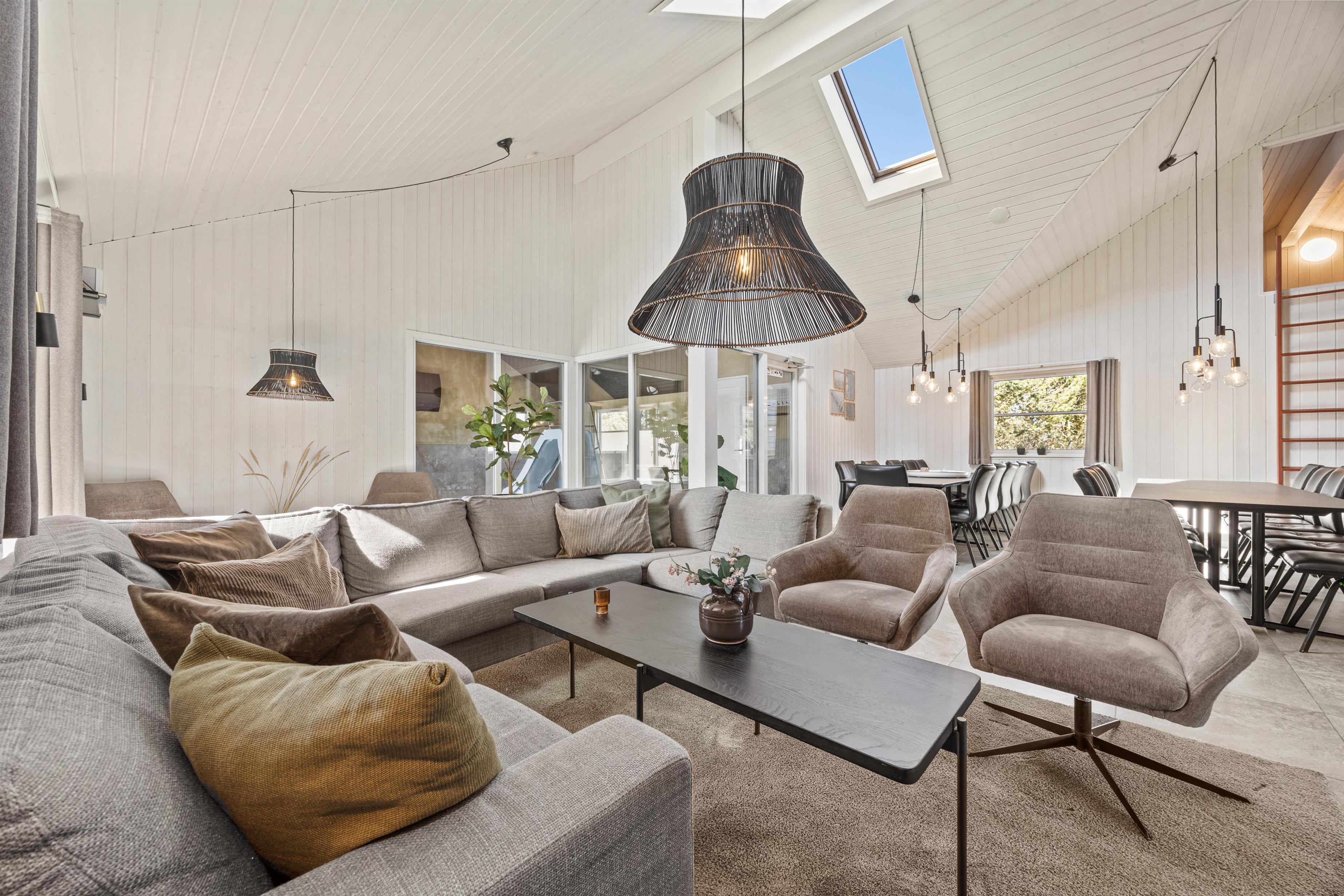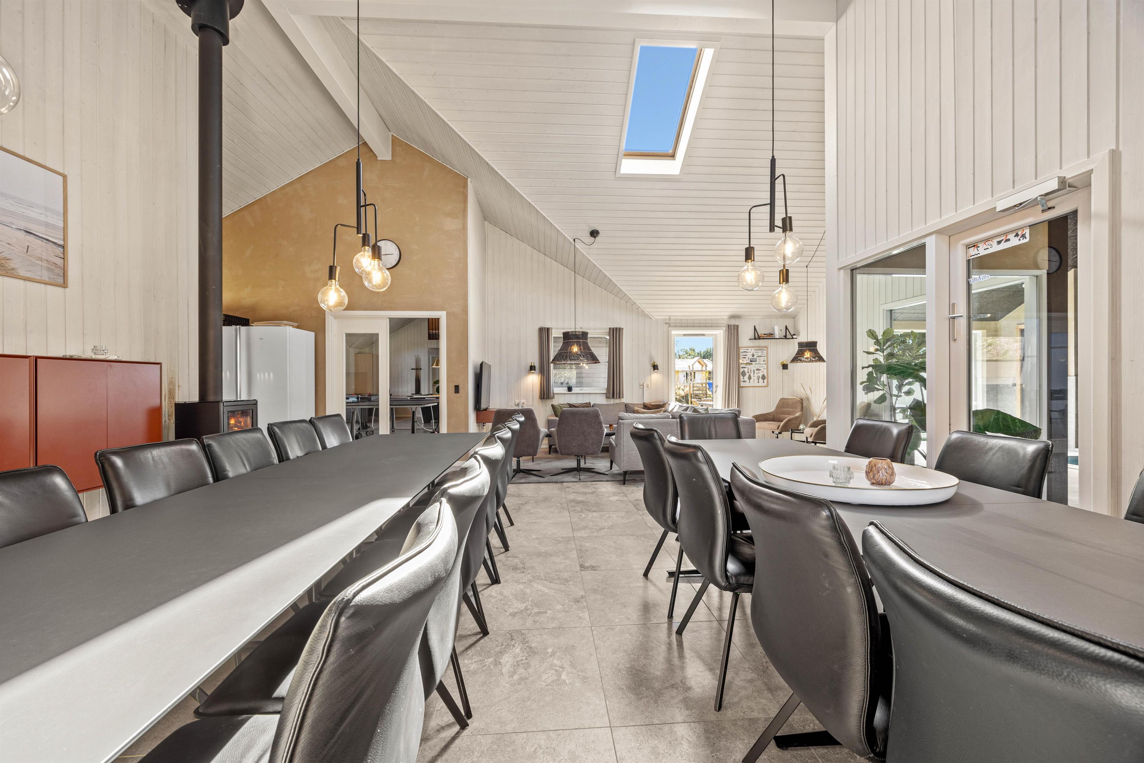 Med i alt 9 smagfuldt indrettede soveværelser og en kombination af 6 dobbeltsenge og 6 enkeltsenge, og 2 hems med hver 3 enkeltmadrasser, giver sommerhuset i Vejers rigelig plads til op til 24 personer. Bekvemt og komfortabelt kan du slappe af med din familie eller venner i disse indbydende rum. De 4 badeværelser er moderne udstyret, så der opstår ingen ventetider, og alle kan starte friske på dagen. Opholdsområdet kompletteres af en hyggelig brændeovn, der giver behagelig varme på køligere aftener.