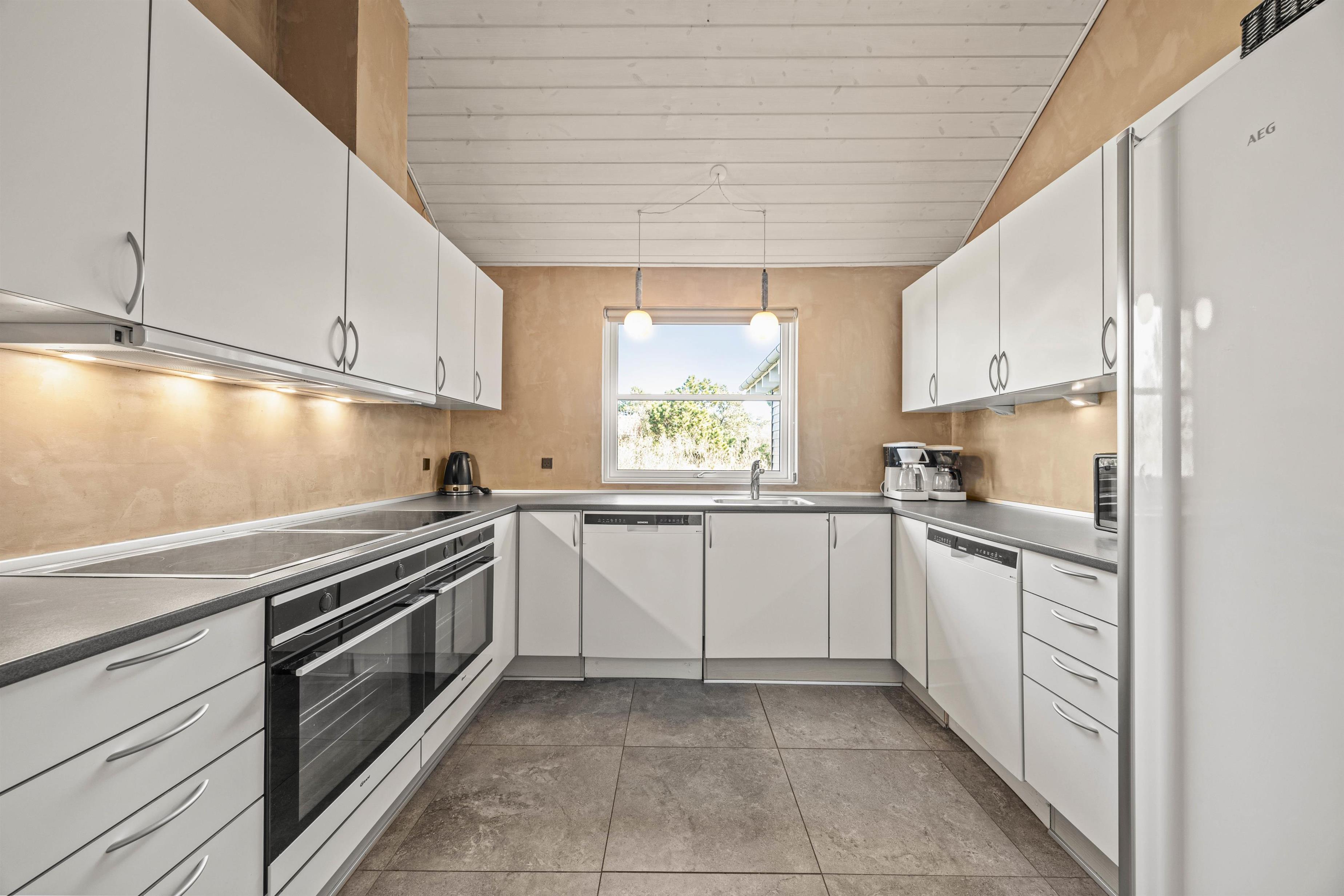 Feriehuset i Vejers er godt udstyret til at tilbyde dig al komfort. Køkkenet er forsynet med en opvaskemaskine, og der er både en vaskemaskine og en tørretumbler, der letter hverdagen. Den energibesparende varmepumpe sørger for et behageligt indeklima og bidrager til en miljøvenlig ferie. Til de små står der gyngestativ og sandkasse klar, og hvis du ønsker at medbringe din firbenede ven, er op til tre hunde hjerteligt velkomne.