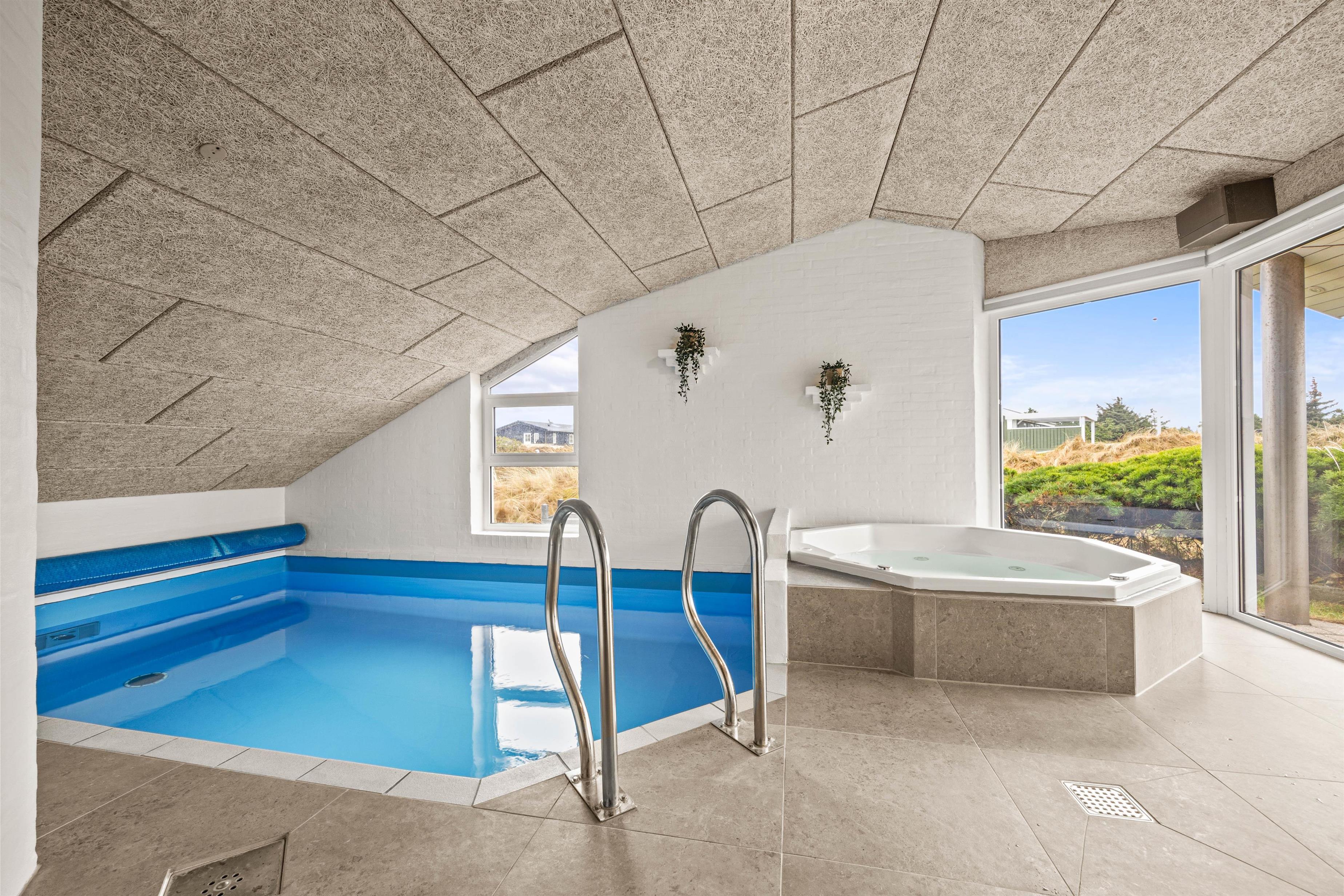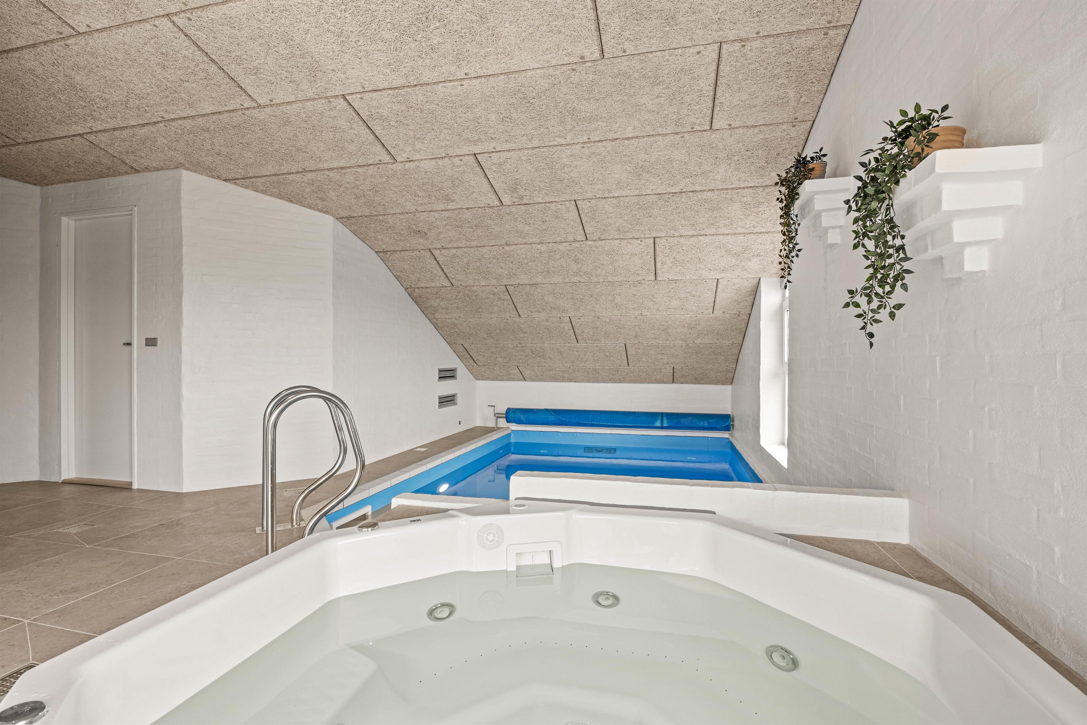 Sauna, spa og poolen med modstrømsanlæg kan bruges hele året rundt, uanset årstiden eller udetemperaturen. Poolen byder børnene på de bedste rammer for timevis af sjov, eller måske endda prøve deres første svømmetur eller måske er de voksne mere til ren afslapning i den boblende jacuzzi med den dejlige udsigt. Saunaen befinder sig en af de to badeværelser, hvor gulvvarmen sikrer jer varme fødder om morgenen.