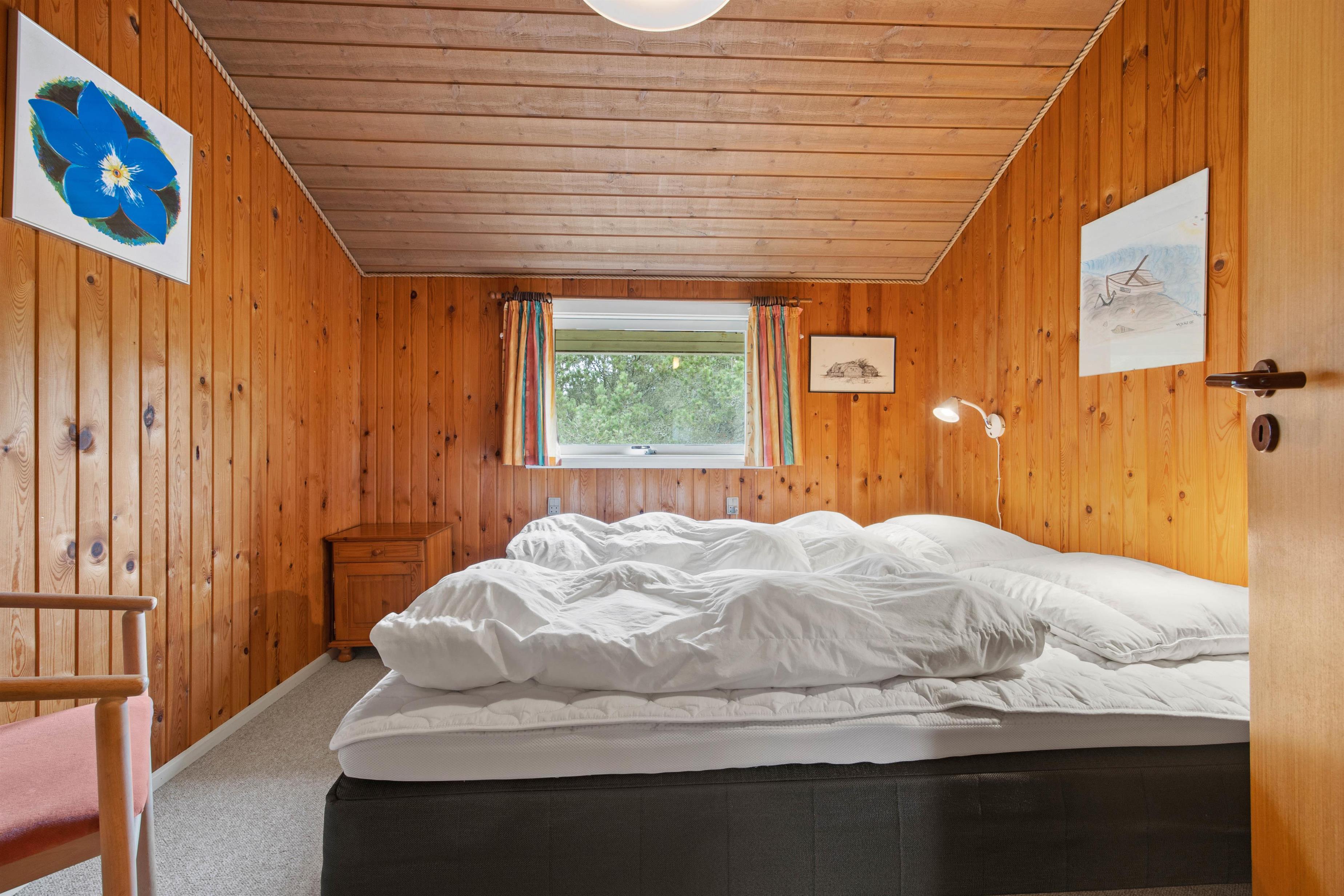 Sommerhusets badeværelse med bruser har gulvvarme installeret, så I ikke fryser om tæerne om morgen, mens I børster tænder. De 6 feriegæster kan fordele sig på 3 soveværelser, hvoraf 2 er indrettet med dobbeltseng. I det sidste soveværelse er der en køjeseng, som børnene vil elske.