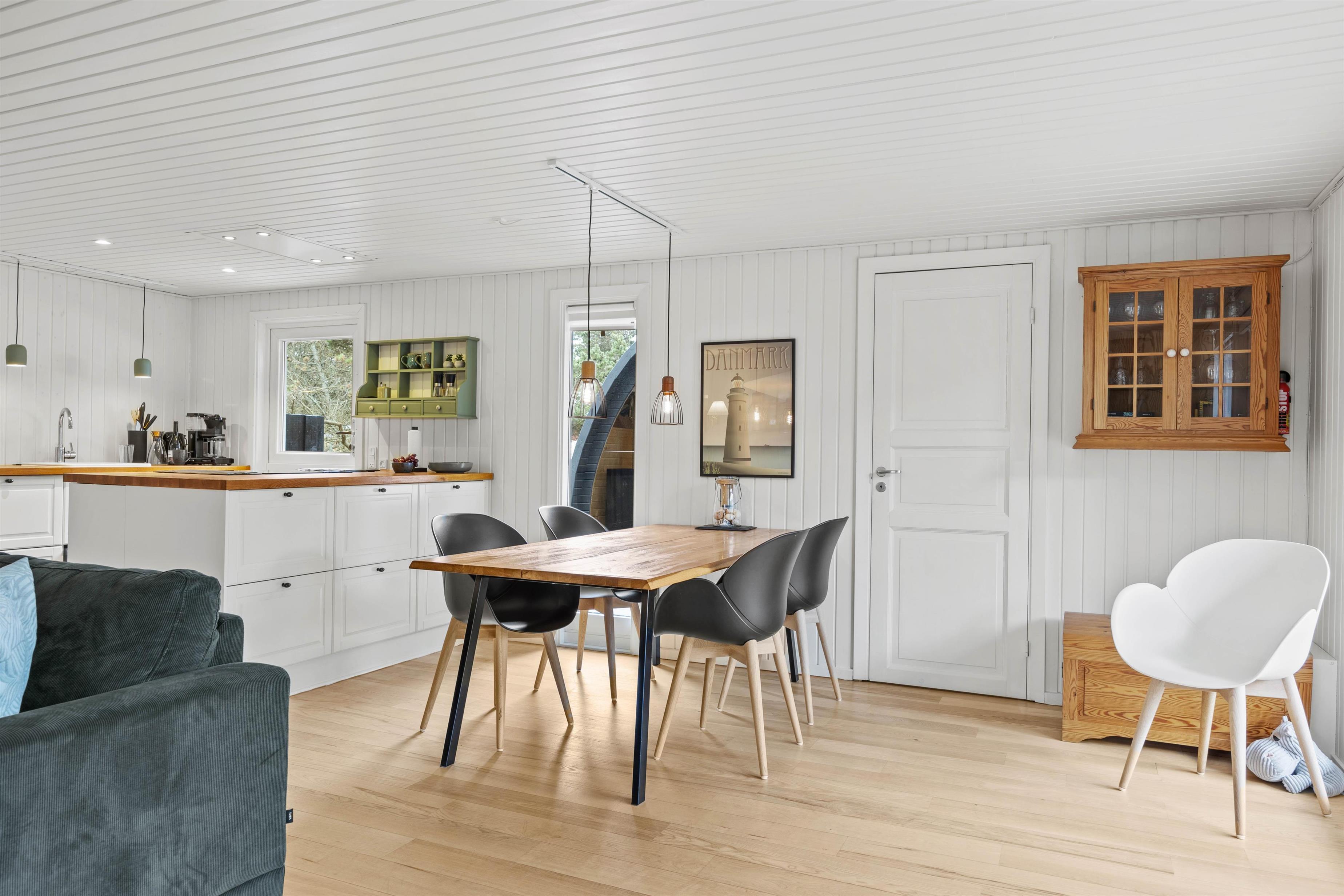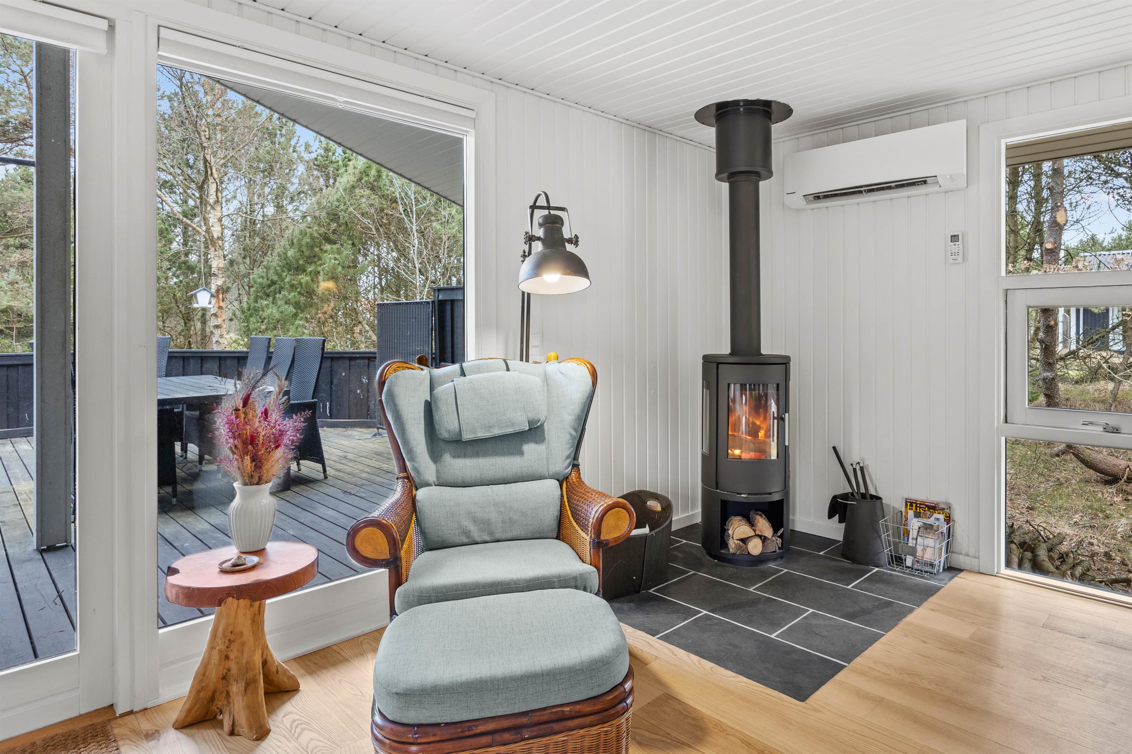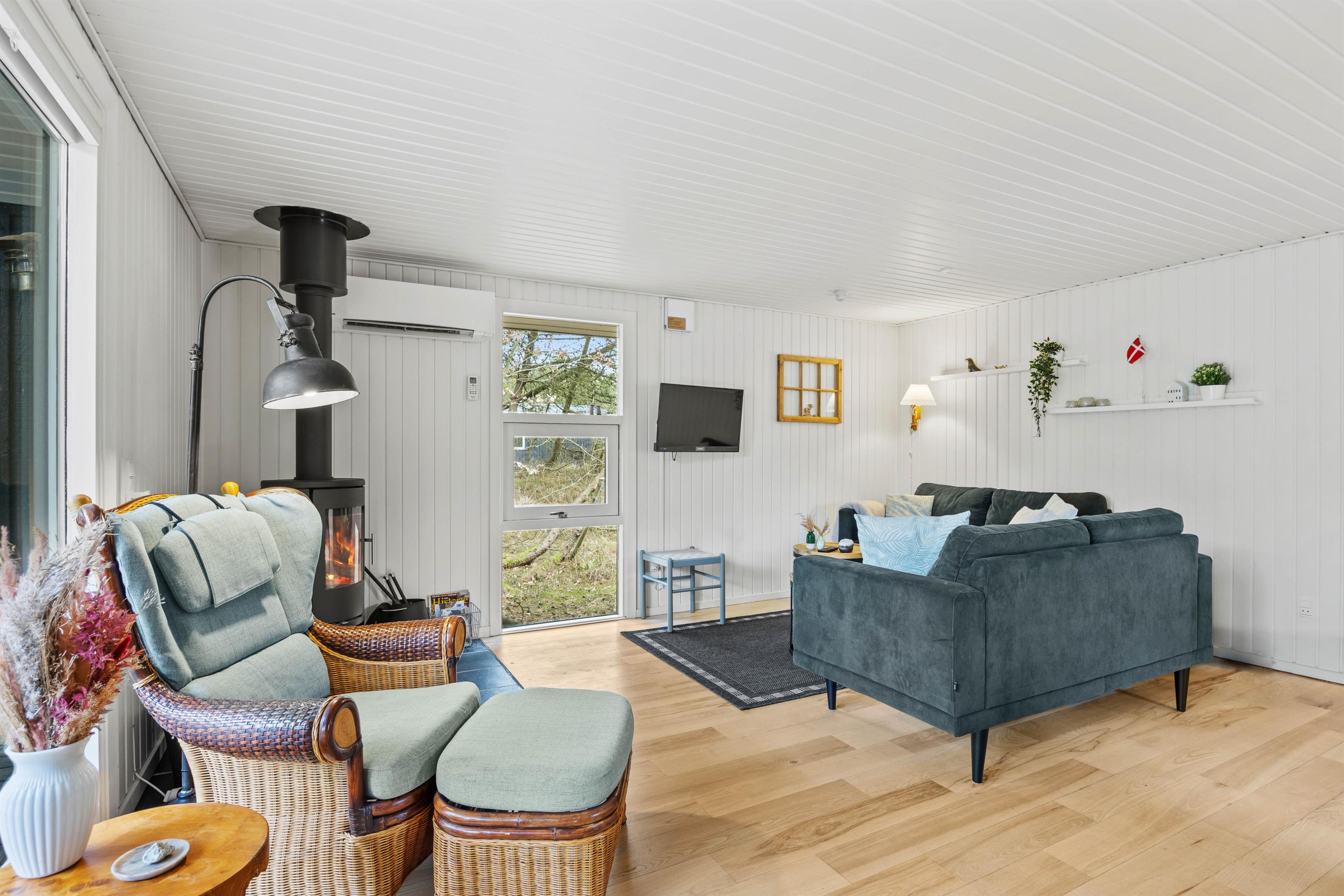 I alrummet står brændeovnen klar til at fuldende den hyggelige feriestemning med sine knitrende flammer. Derudover er der i sommerhuset også en energivenlig varmepumpe, som sørger for et godt indeklima i løbet af jeres ferie.