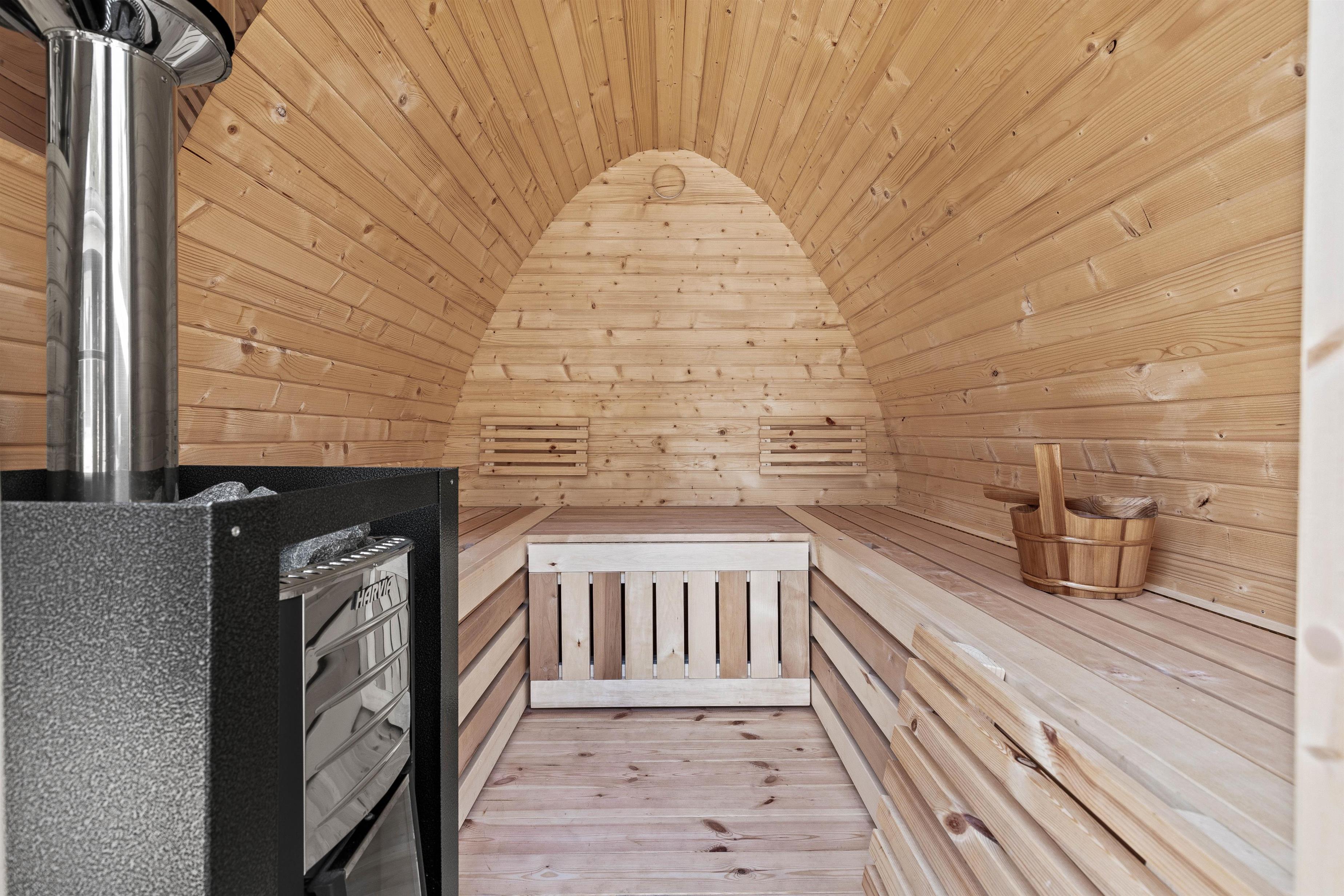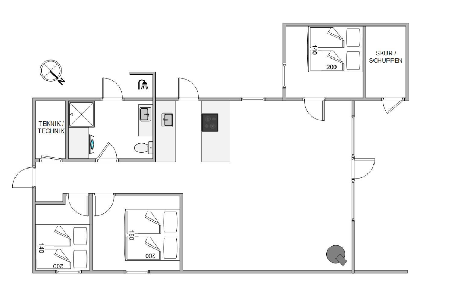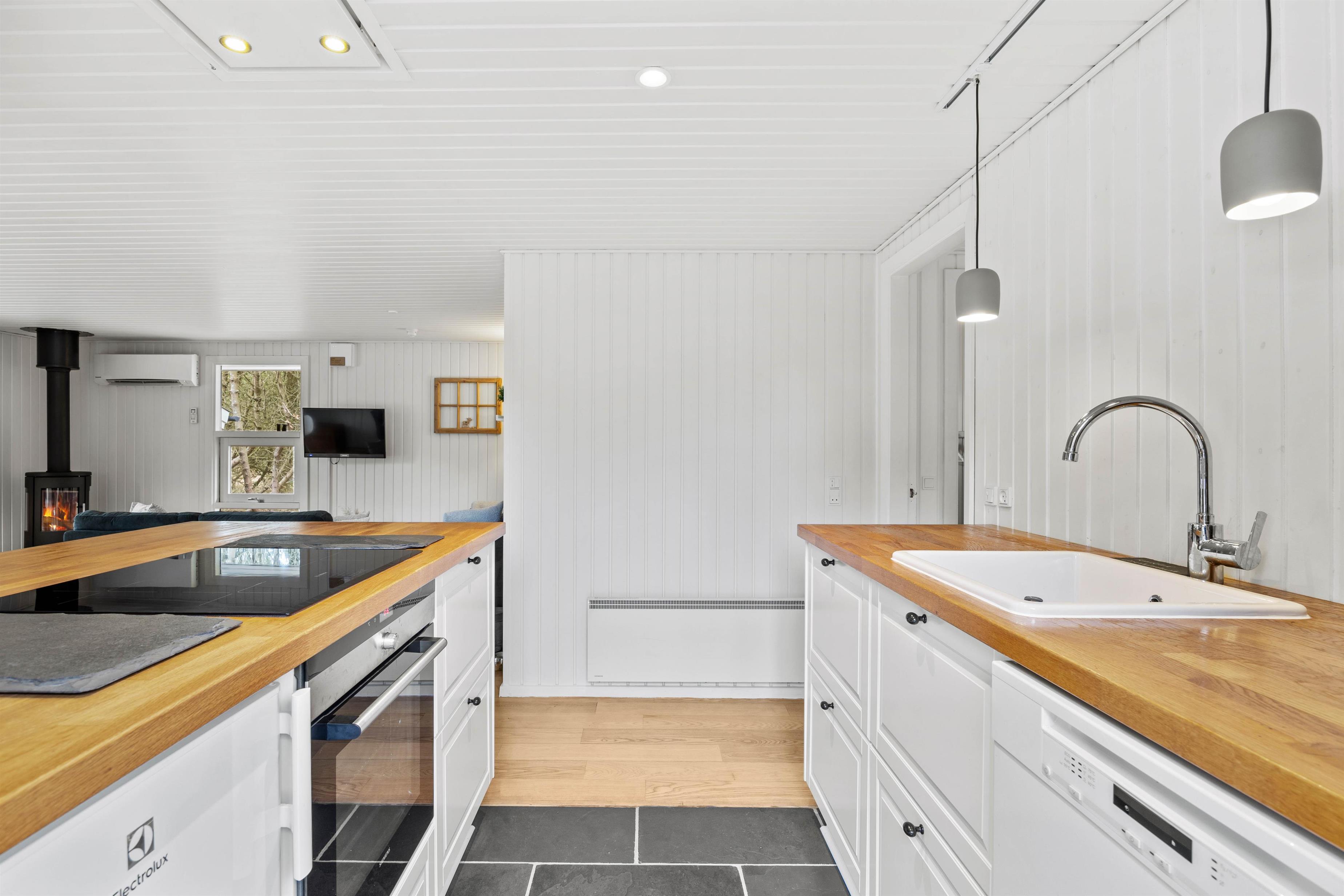 I alrummet står brændeovnen klar til at fuldende den hyggelige feriestemning med sine knitrende flammer. Derudover er der i sommerhuset også en energivenlig varmepumpe, som sørger for et godt indeklima i løbet af jeres ferie.