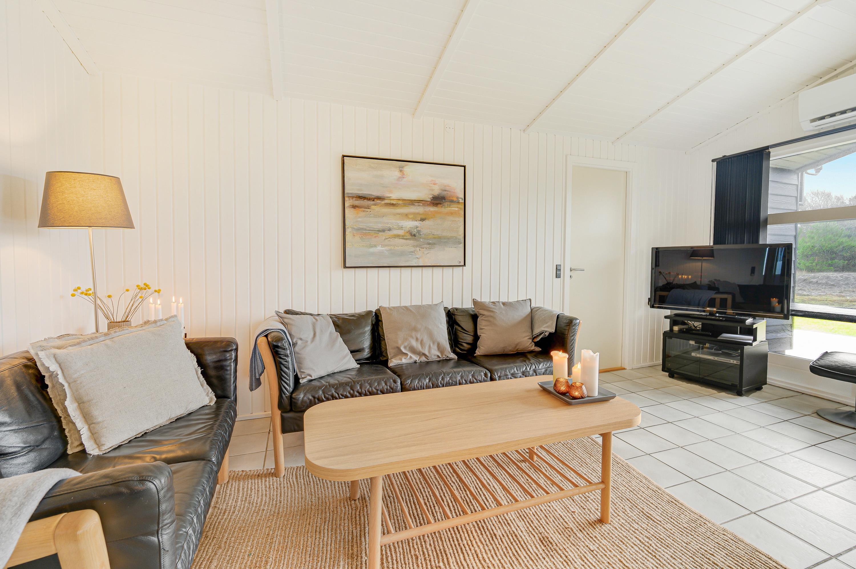 I vil straks føle jer hjemme i sommerhuset på Engesøvej 6 i Vejers Strand, når I først træder indenfor. Her bliver I mødt af hyggelig indretning med gode, komfortable møbler, som I kan finde jer til rette i på jeres ferie.