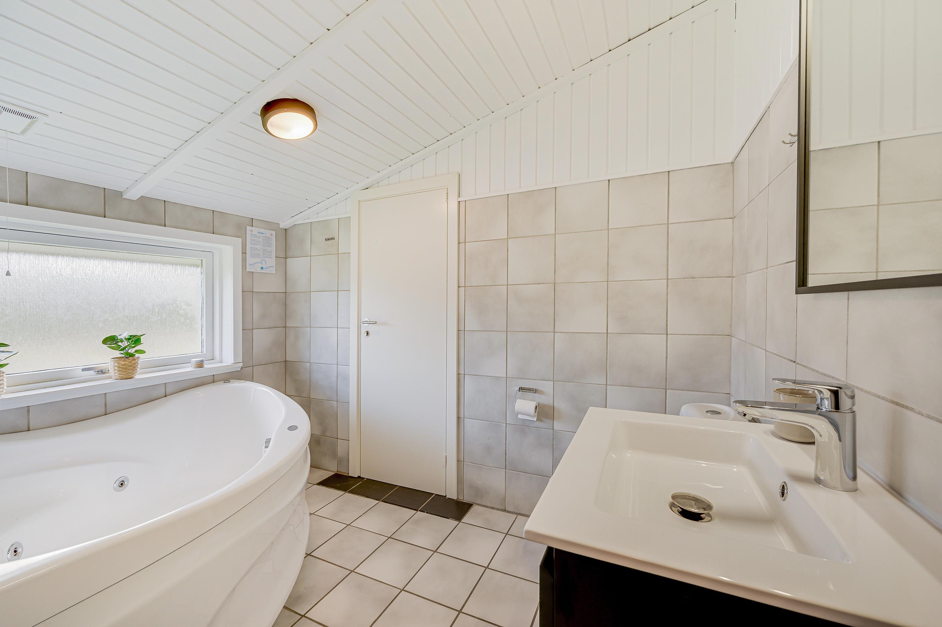 I sommerhuset er der rig mulighed for, at I kan slappe fuldstændig af og komme helt ned i gear. På sommerhusets badeværelse, med gulvvarme, finder I et lækkert spabad, som I kan sætte jer godt til rette i og nyde en afslappende stund i det varme, boblende vand. Efterfølgende kan I fuldende jeres wellness-stund ved at sætte jer ind i saunaen, som I også har adgang til fra badeværelset.