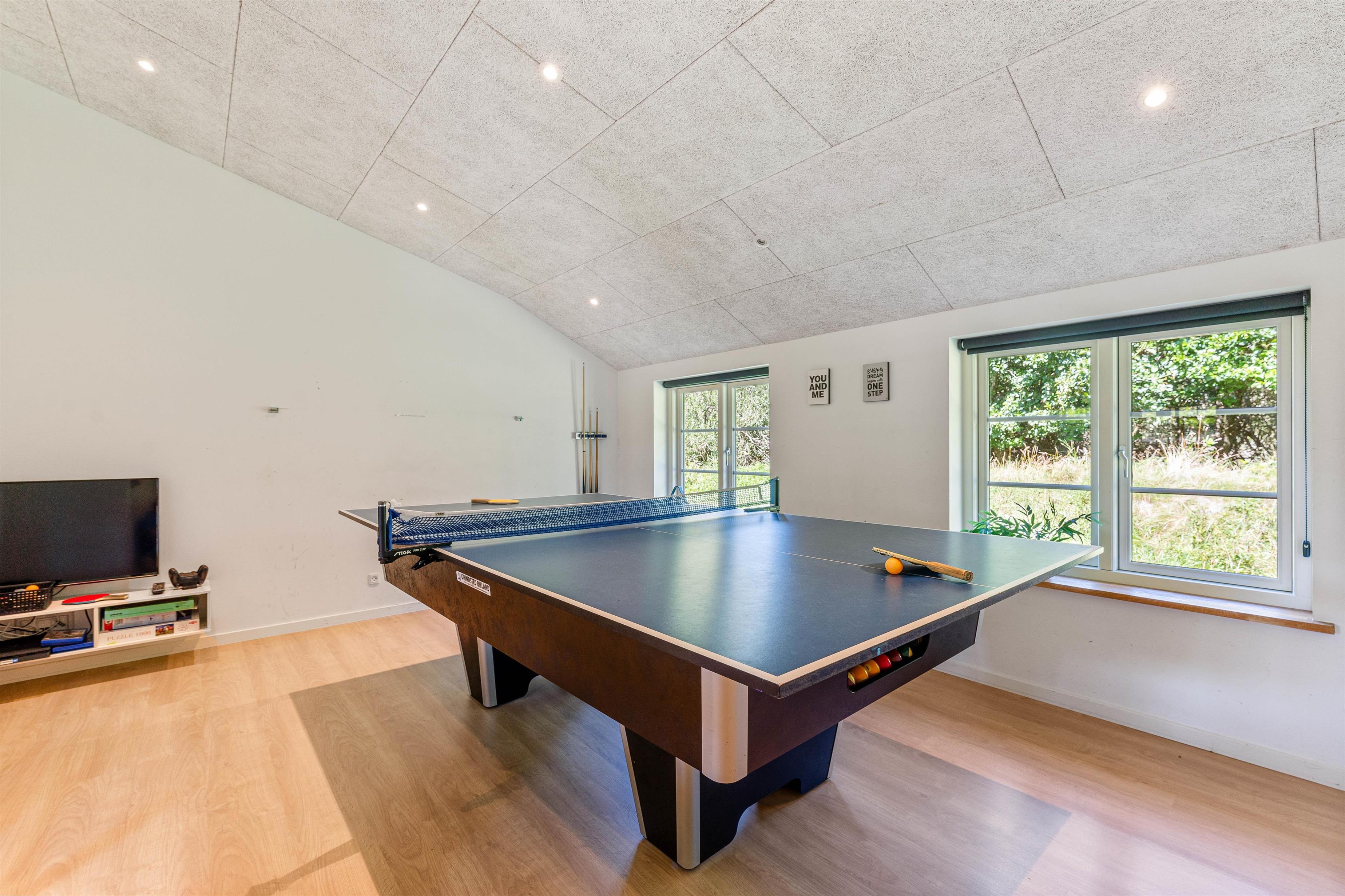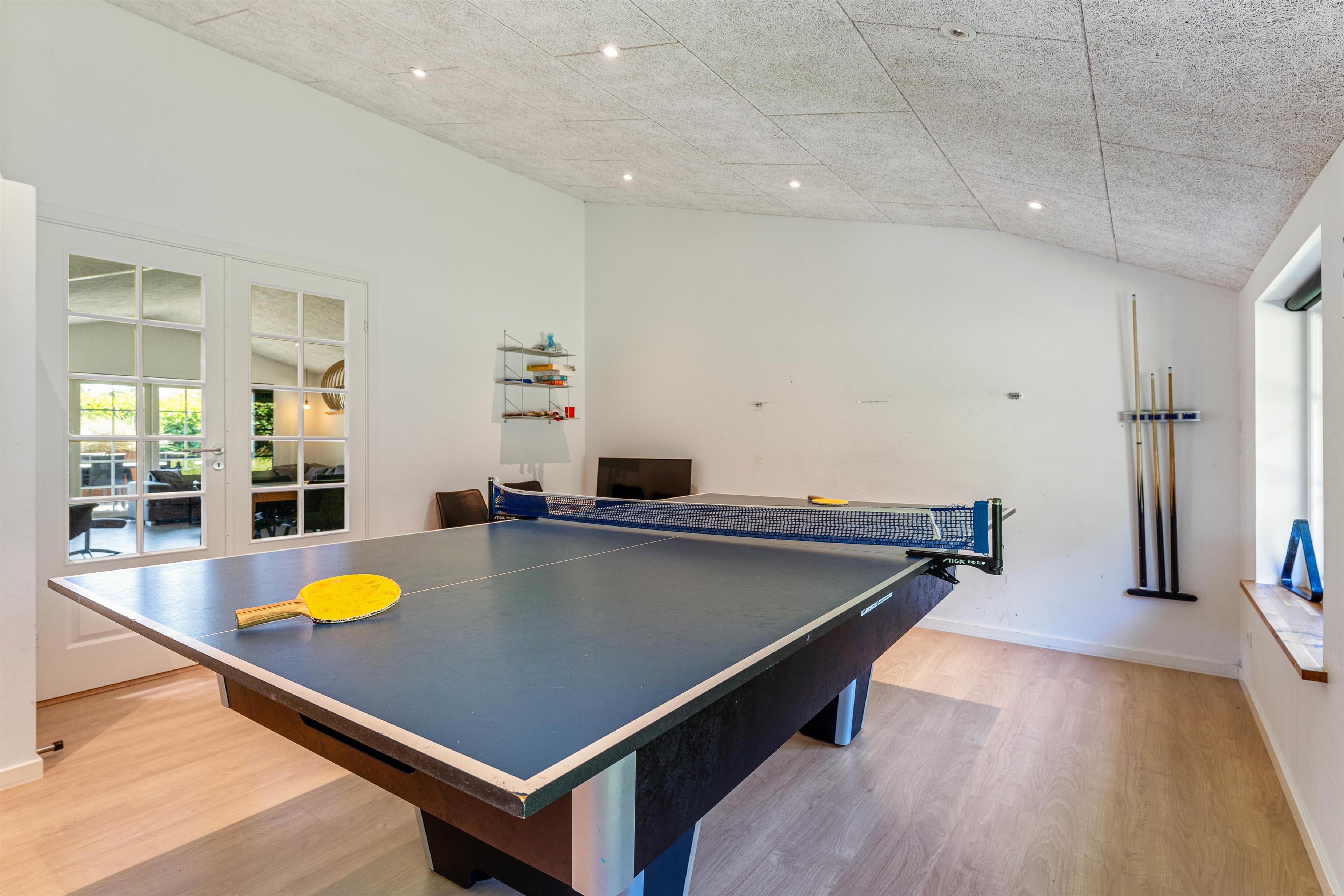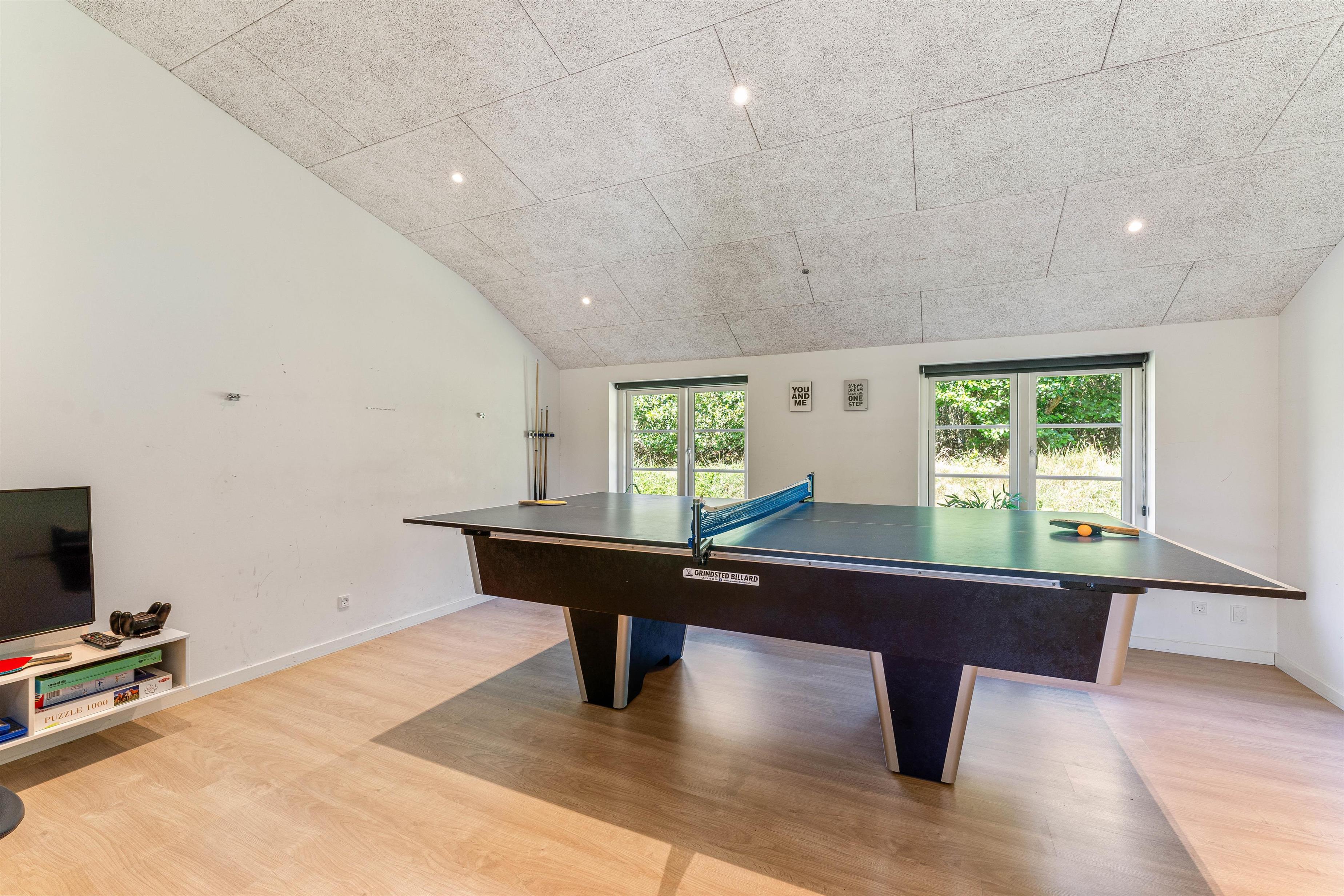 Der er sørget for underholdning til enhver smag. I aktivitetsrummet kan I give jer i kast med poolbord, bordtennis og dart. Det største af husets 2 badeværelser er indrettet med en lækker wellnessafdeling med spabad og sauna, og der er også en massagestol i feriehuset.
