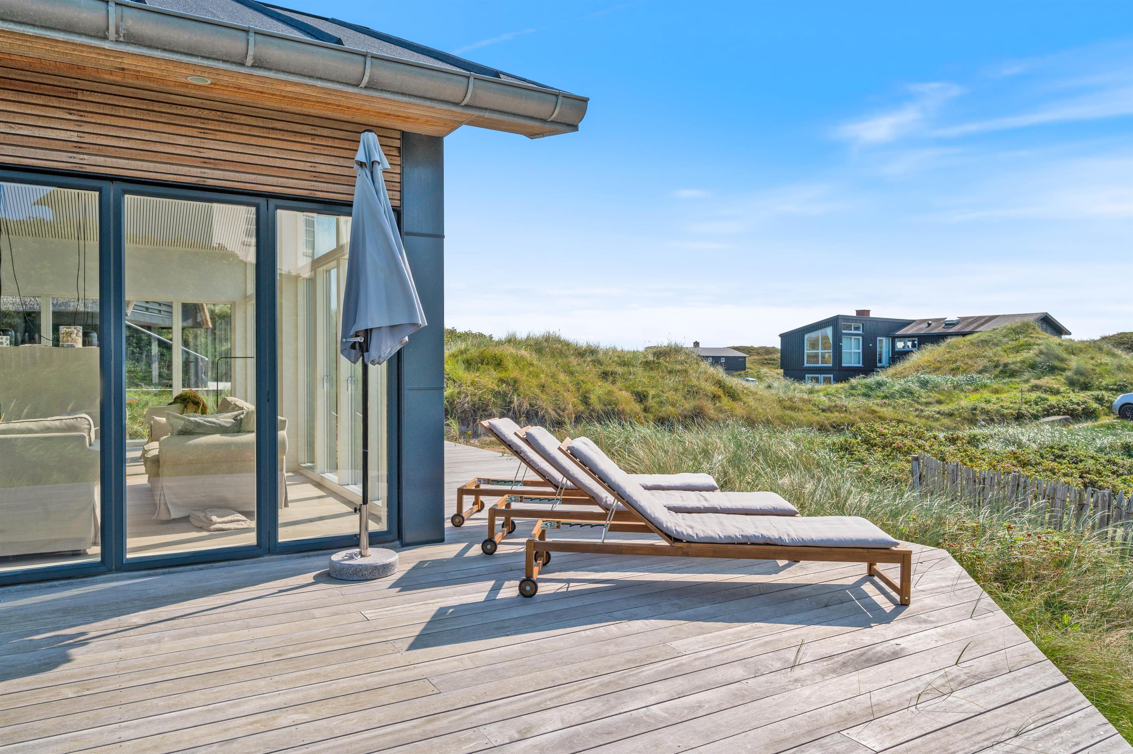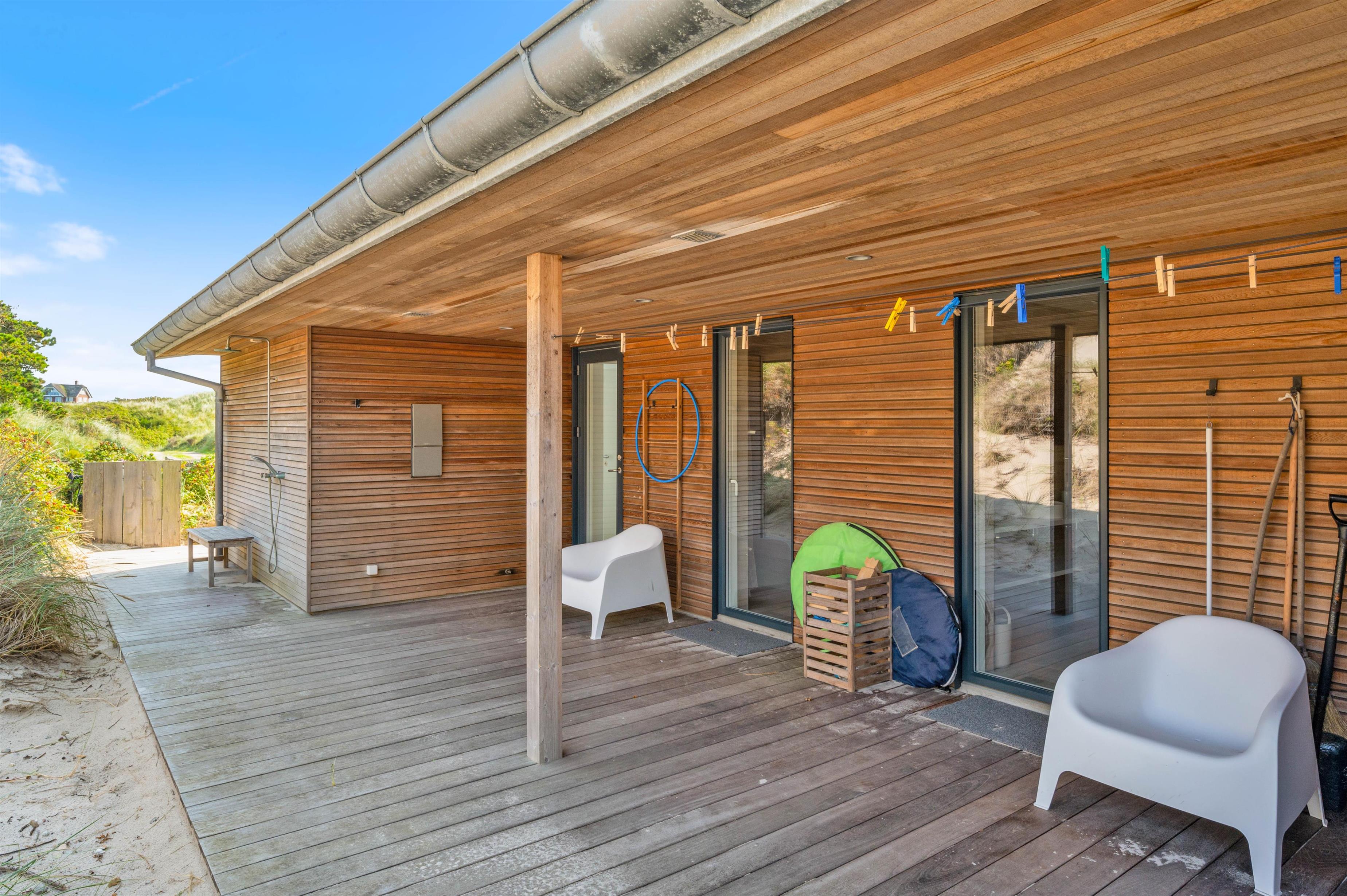 I dette feriehus bor I midt i naturen, det er blot at smide skoene og gå over klitten, så ligger den endeløst lange hvide sandstrand for jeres fødder. Den strandnære beliggenhed mærkes også på den afskærmede til dels overdækkede terrasse. Med havduft og lyden af bølgerne som baggrundsmusik er der her god mulighed for solbadning og lange hyggelige grillaftener. Når himlen begynder at farve sig rød, kan I tage hinanden i hånden og smutte ned til stranden og nyde solnedgangen.