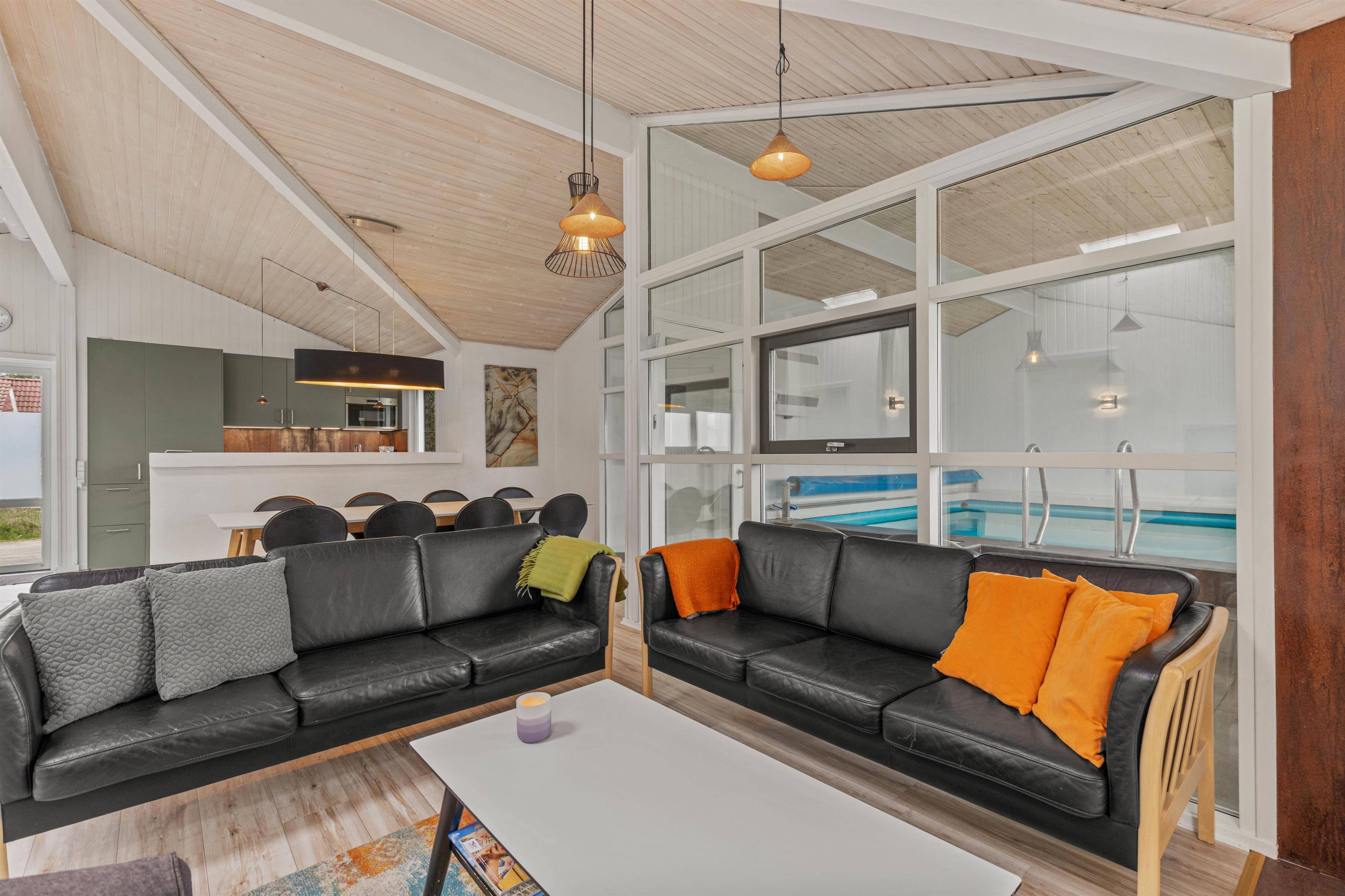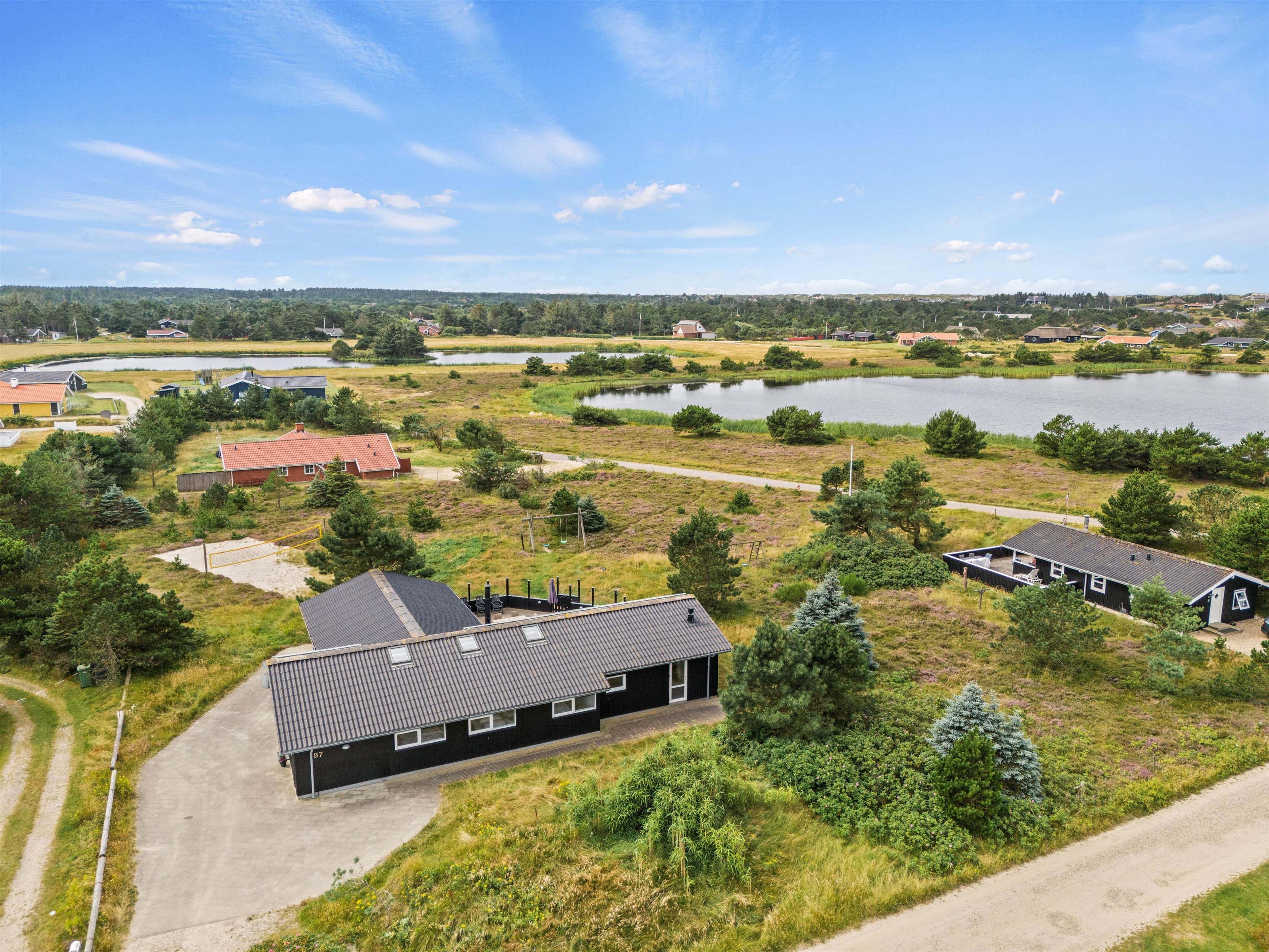 For to familier eller den store vennegruppe, der vil på en dejlig ferie ved Vesterhavet, er sommerhuset på Jafdalvej 87 et oplagt valg. I det dejlige sommerhus er der plads til op til 10 personer og 2 hunde. Sommerhuset, der er renoveret i 2021, byder både på swimmingpool, spabad og sauna, så der er noget for enhver. Fra sommerhusets terrasse har I udsigt til søen.