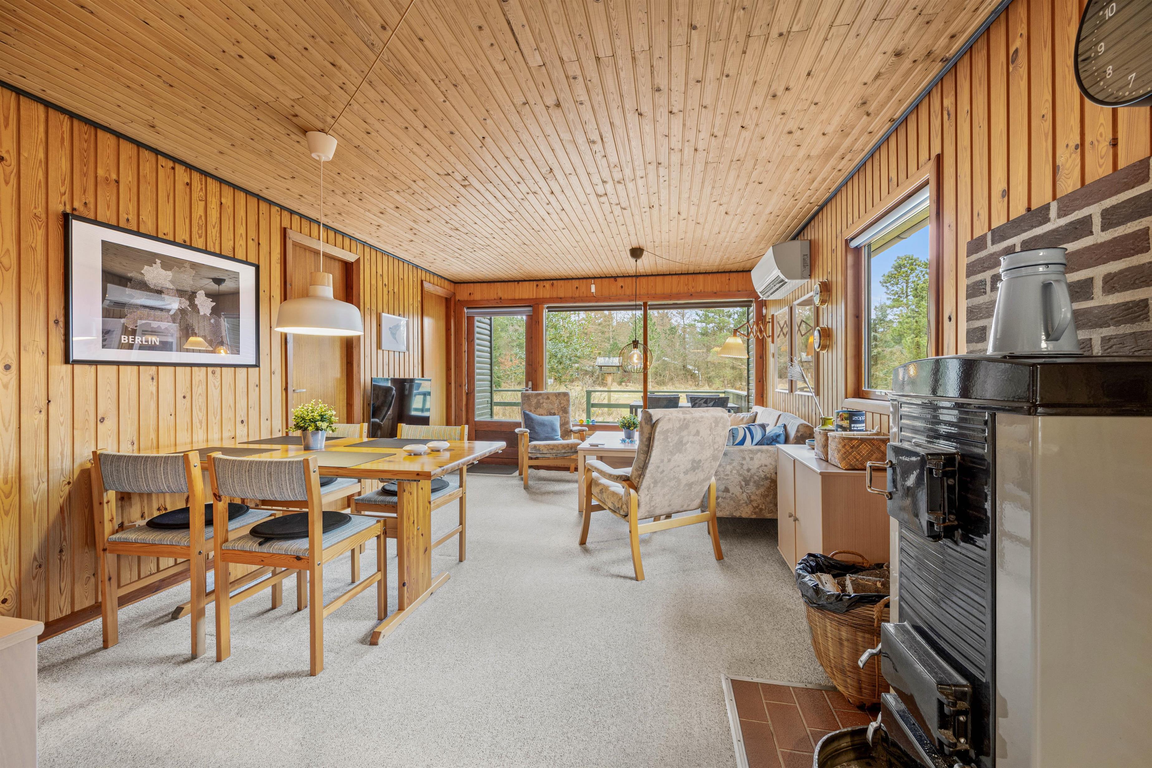 Sommerhuset har en imponerende kapacitet med plads til op til 5 personer, hvilket gør det ideelt til familier eller vennegrupper, der søger en afslappende ferie. Her bydes I velkommen med 3 hyggelige soveværelser, der sikrer en god nats søvn efter dagens eventyr. Den rummelige stue med en brændeovn bliver hurtigt samlingspunktet for afslappede aftener, hvor I kan nyde varmen fra brændeovnen. Uanset om I ønsker at tilberede et lækkert måltid i det fuldt udstyrede køkken med opvaskemaskine eller bare slappe af med en bog, tilbyder sommerhuset alle nødvendige faciliteter til jeres ophold.