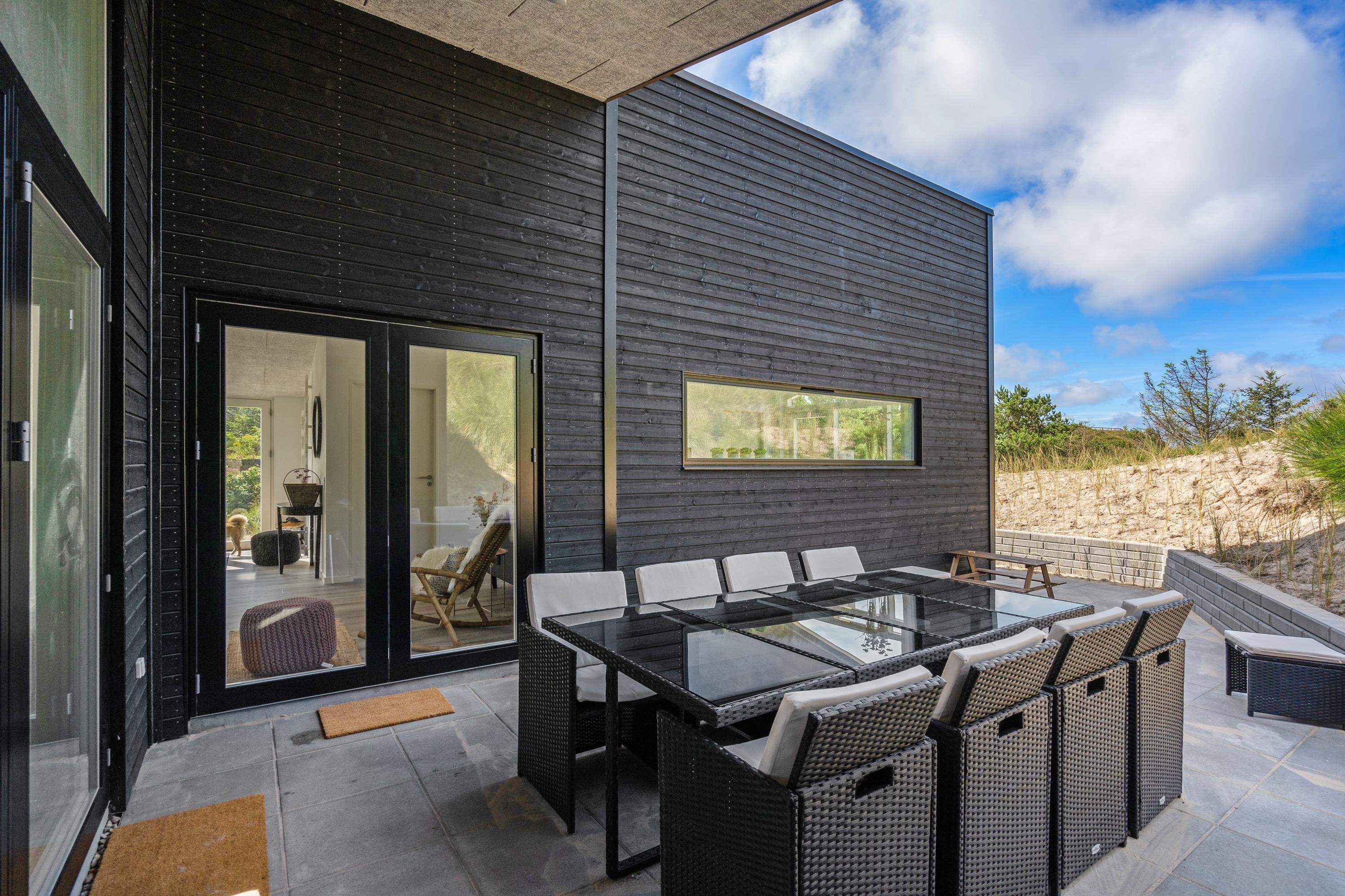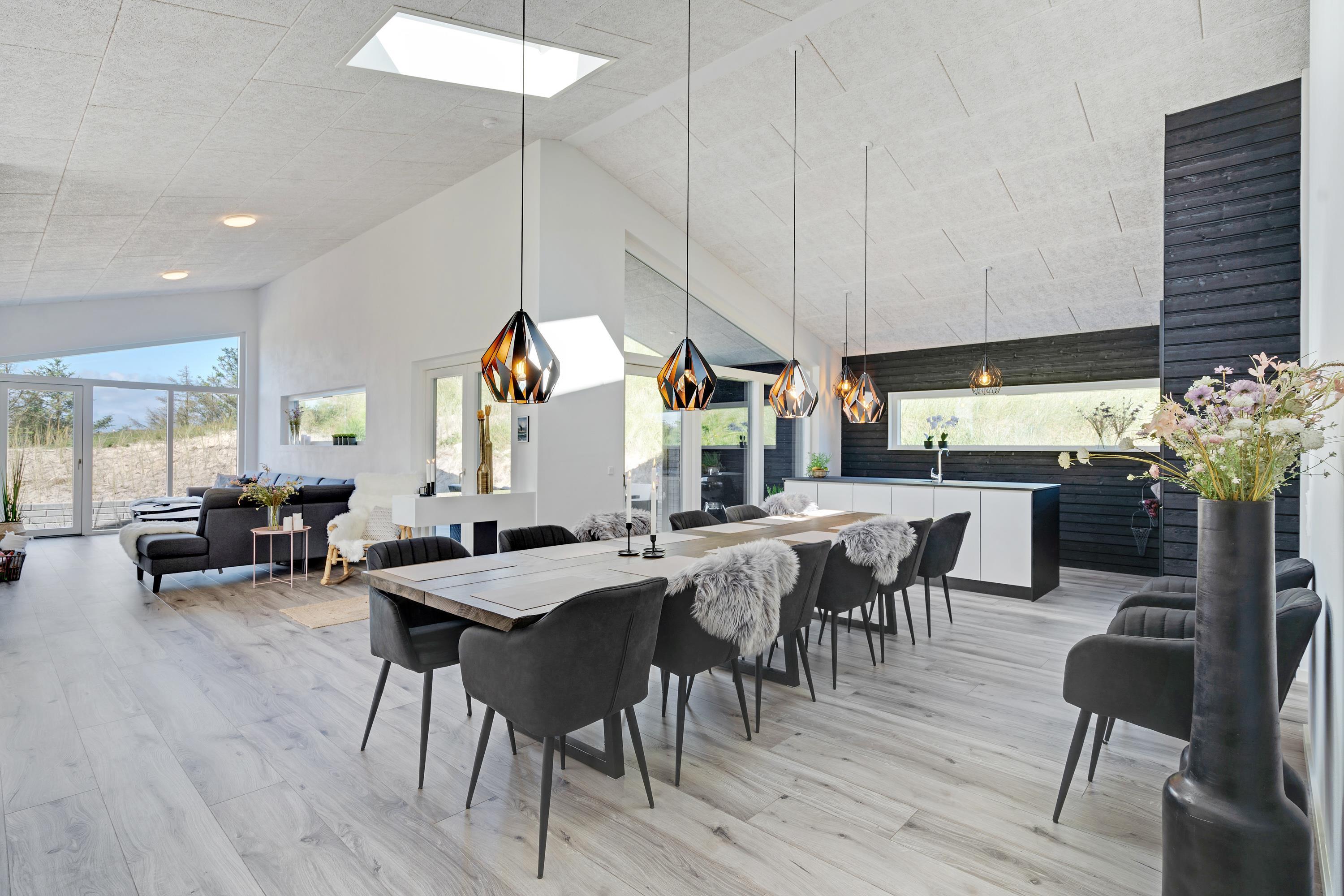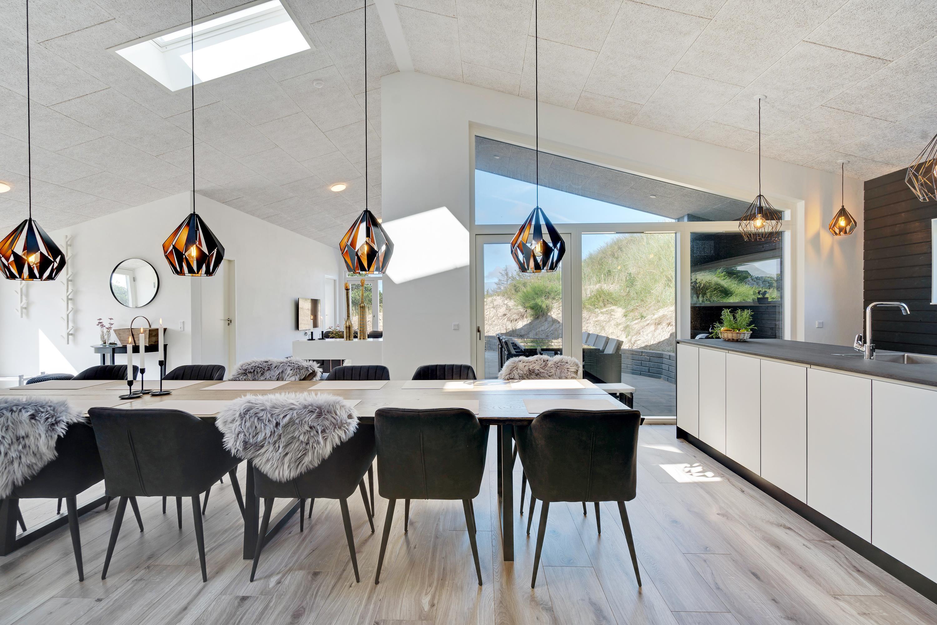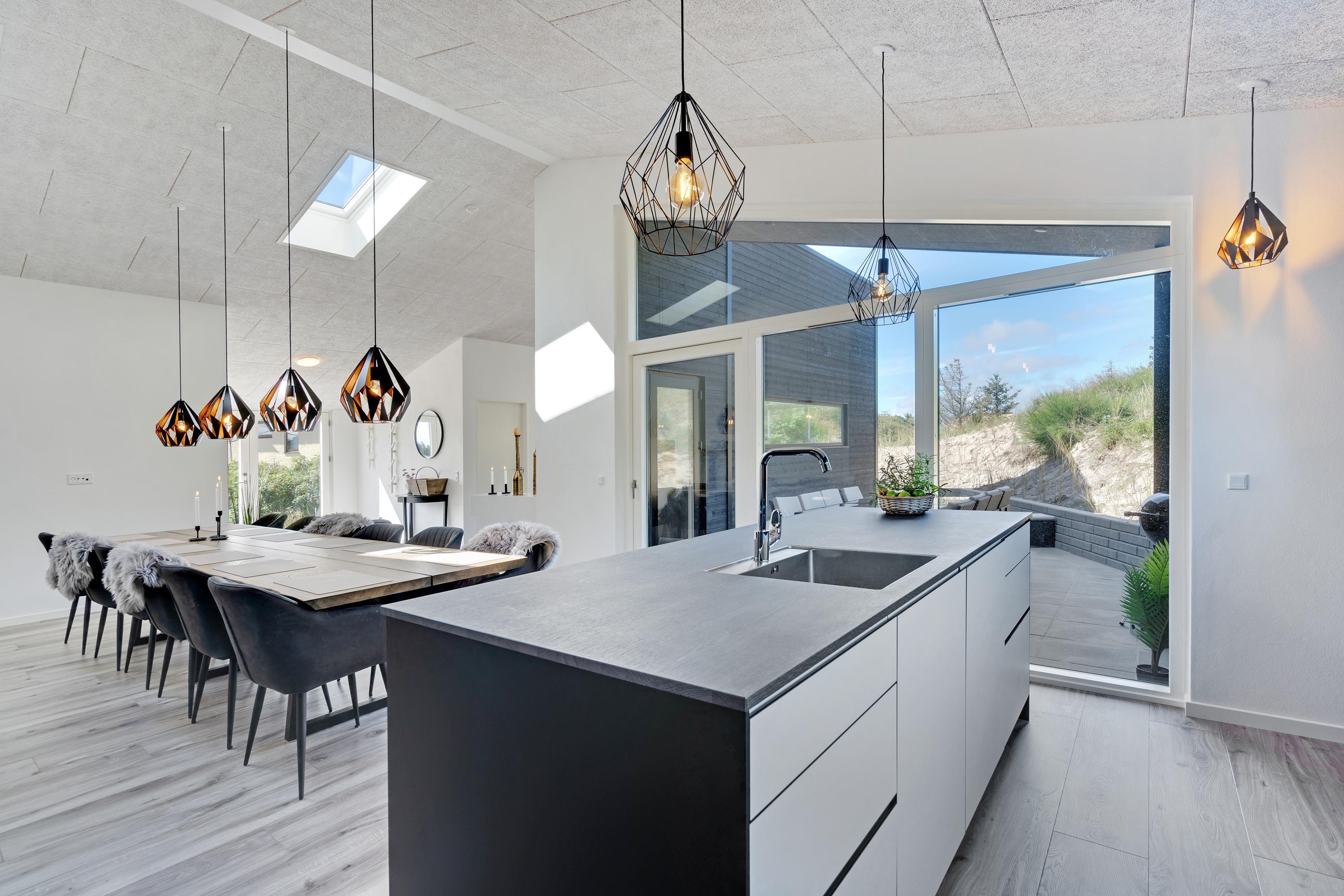 Huset er moderne og samtidig rigtig hyggeligt indrettet, så selv hvis vejret ikke indbyder til afslapning på de læfyldte terrasser, er det en stor fornøjelse at hygge sig med fælles madlavning i det lækre køkken - eller at slænge sig i hjørnesofaen og se en film eller bare nyde udsigten til de vejende marehalm uden for de store panoramavinduer.