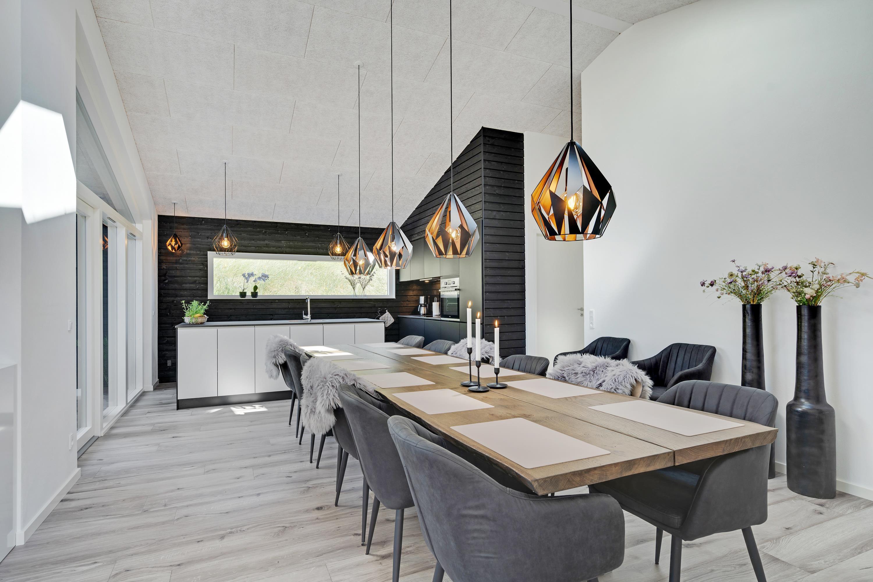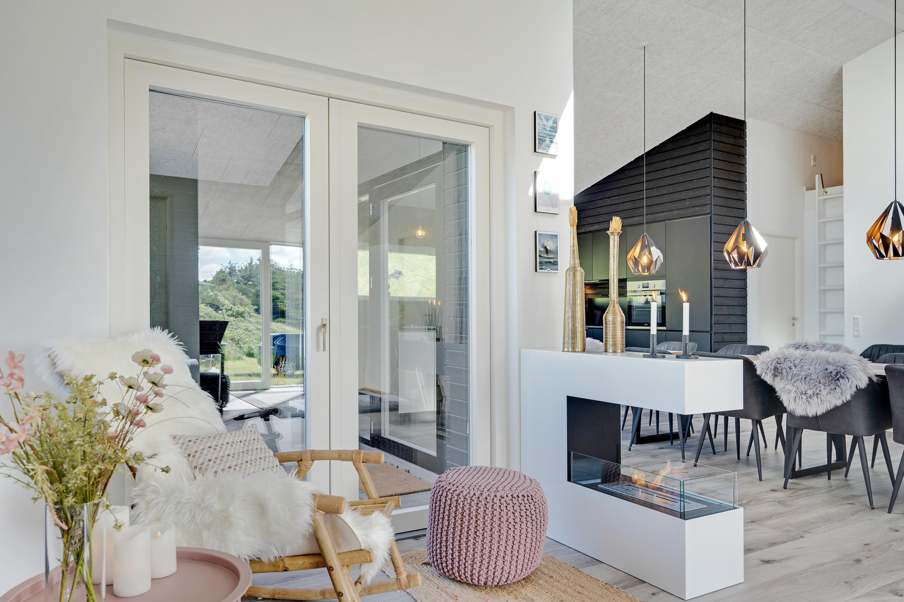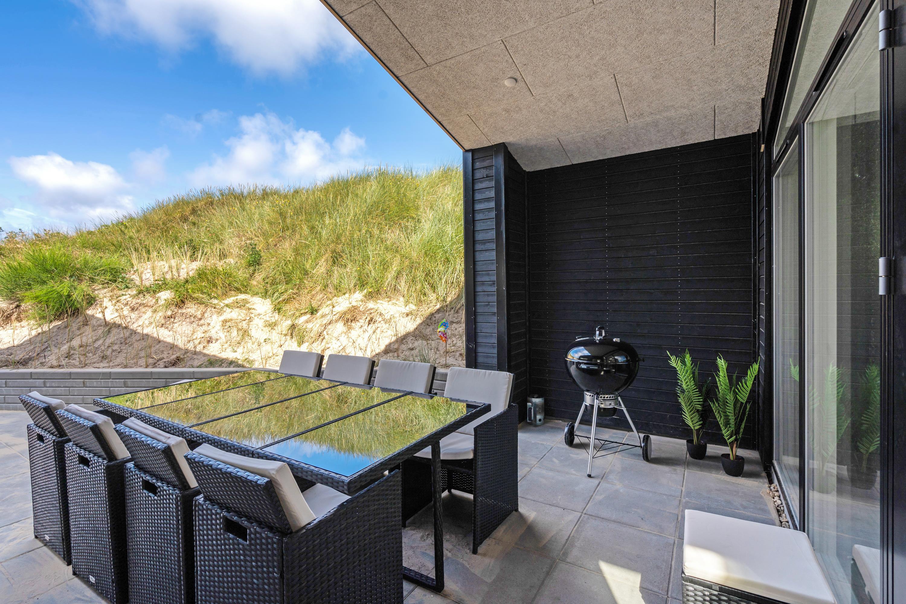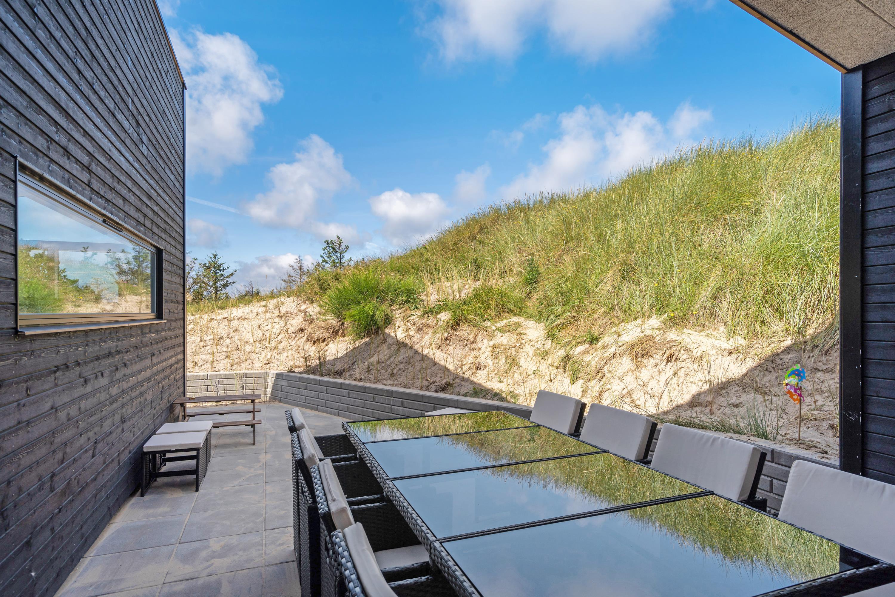 Huset er moderne og samtidig rigtig hyggeligt indrettet, så selv hvis vejret ikke indbyder til afslapning på de læfyldte terrasser, er det en stor fornøjelse at hygge sig med fælles madlavning i det lækre køkken - eller at slænge sig i hjørnesofaen og se en film eller bare nyde udsigten til de vejende marehalm uden for de store panoramavinduer.