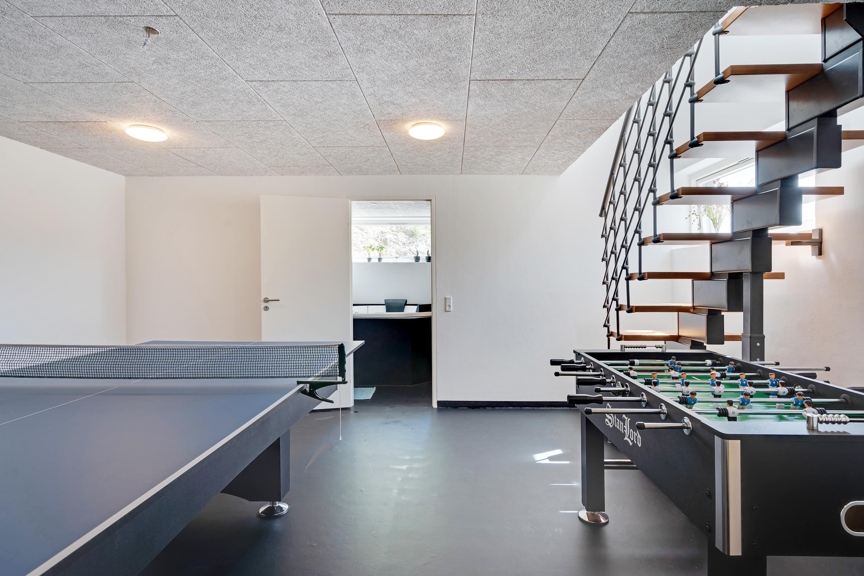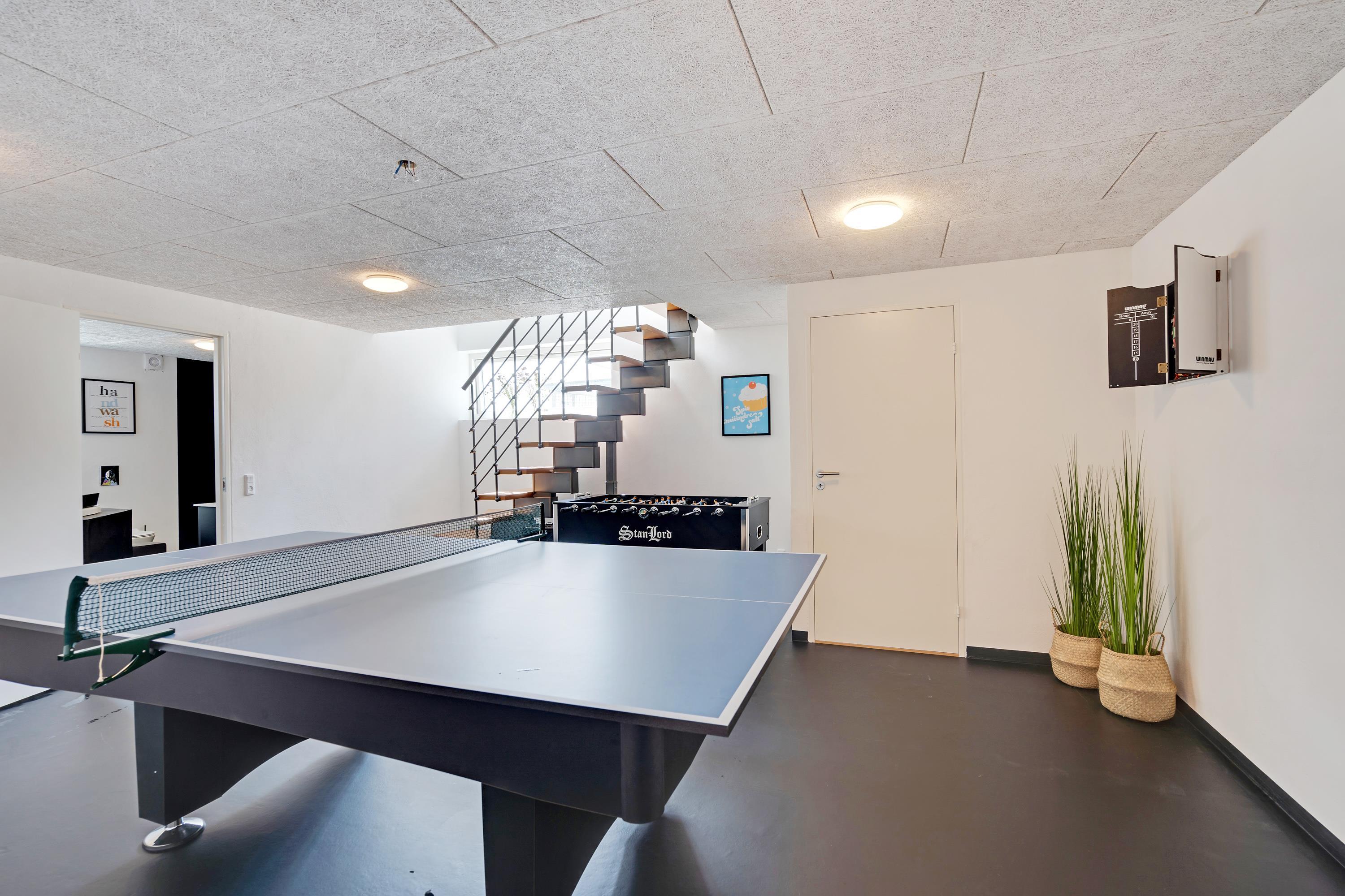 Et absolut highlight for børn og barnlige sjæle er feriehusets aktivitetsrum, der inviterer til konkurrencer inden for disciplinerne poolbillard, bordtennis, bordfodbold og dart. Måske bliver det bare til et lejlighedsvist slag billard sammen med pre-dinner drinks eller når I har brug for at fortrække ind i ly for sommerens sol eller efterårets stormvejr.
