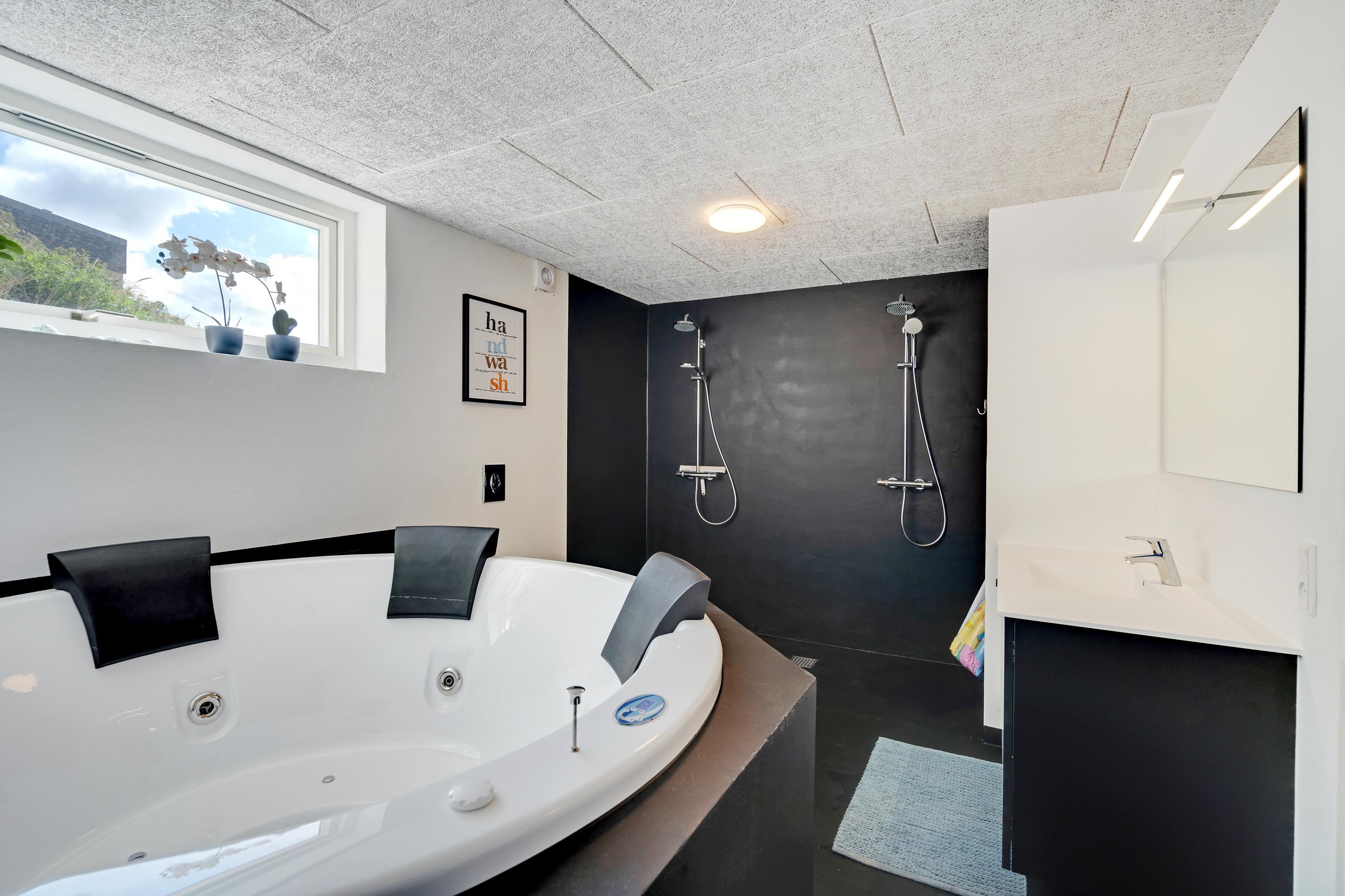 Hvis I holder ferie med mange mennesker, er der altid mange individuelle ønsker. I dette lækre sommerhus med byggeår 2020 finder I heldigvis alt, hvad feriehjertet kan begære, om det er spil og konkurrencer i aktivitetsrummet, wellness i det store standspabad og flotte sauna eller en strandferie i vandkanten, der blot ligger en ganske kort gåtur fra sommerhuset.