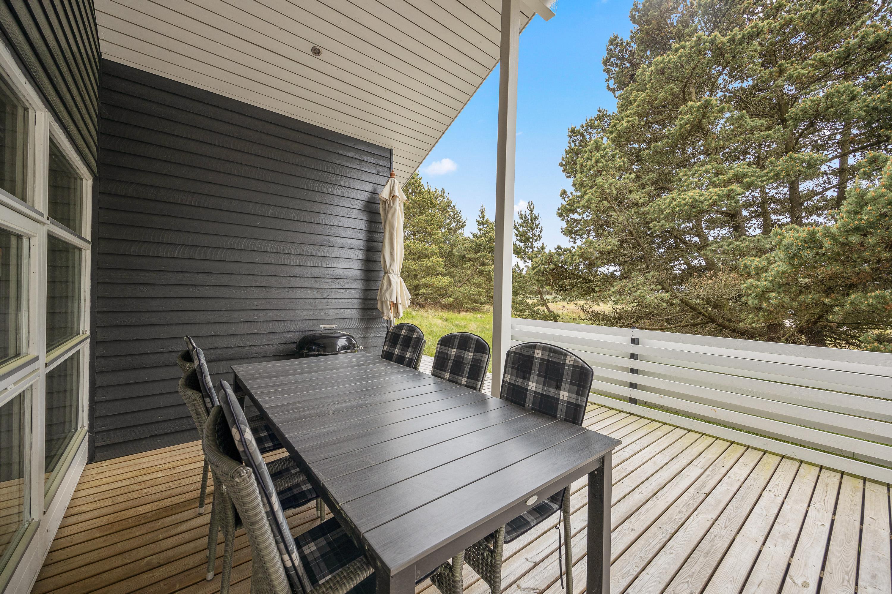 Omkring det meste af sommerhuset løber en stor terrasse, hvor I kan nyde de solrige dage af jeres ferie. Her kan I sætte jer godt til rette i havemøbler og liggestole og nyde solen det meste af dagen.