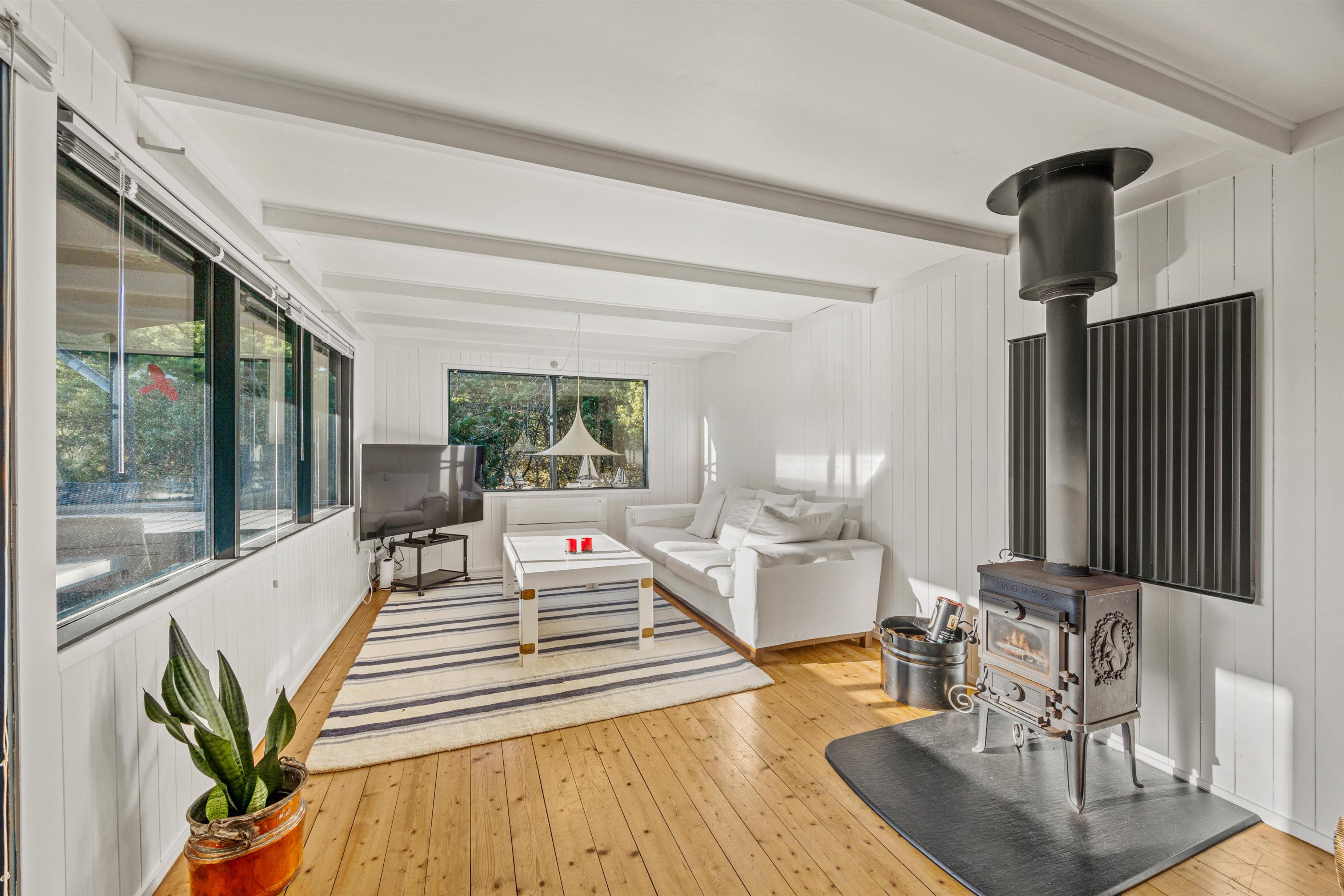 Sommerhuset er udstyret med en brændeovn, der skaber en hyggelig atmosfære på kølige aftener, samt en moderne luft til luft varmepumpe for at sikre optimal temperatur året rundt. Den åbne opholdsstue er et perfekt samlingspunkt for spil og samtaler, mens den integrerede opvaskemaskine gør oprydningen til en leg. Derudover er der plads til at medbringe jeres firbenede ven, idet en hund er tilladt, så I kan nyde en komfortabel og bekymringsfri ferie med hele familien i Vejers.