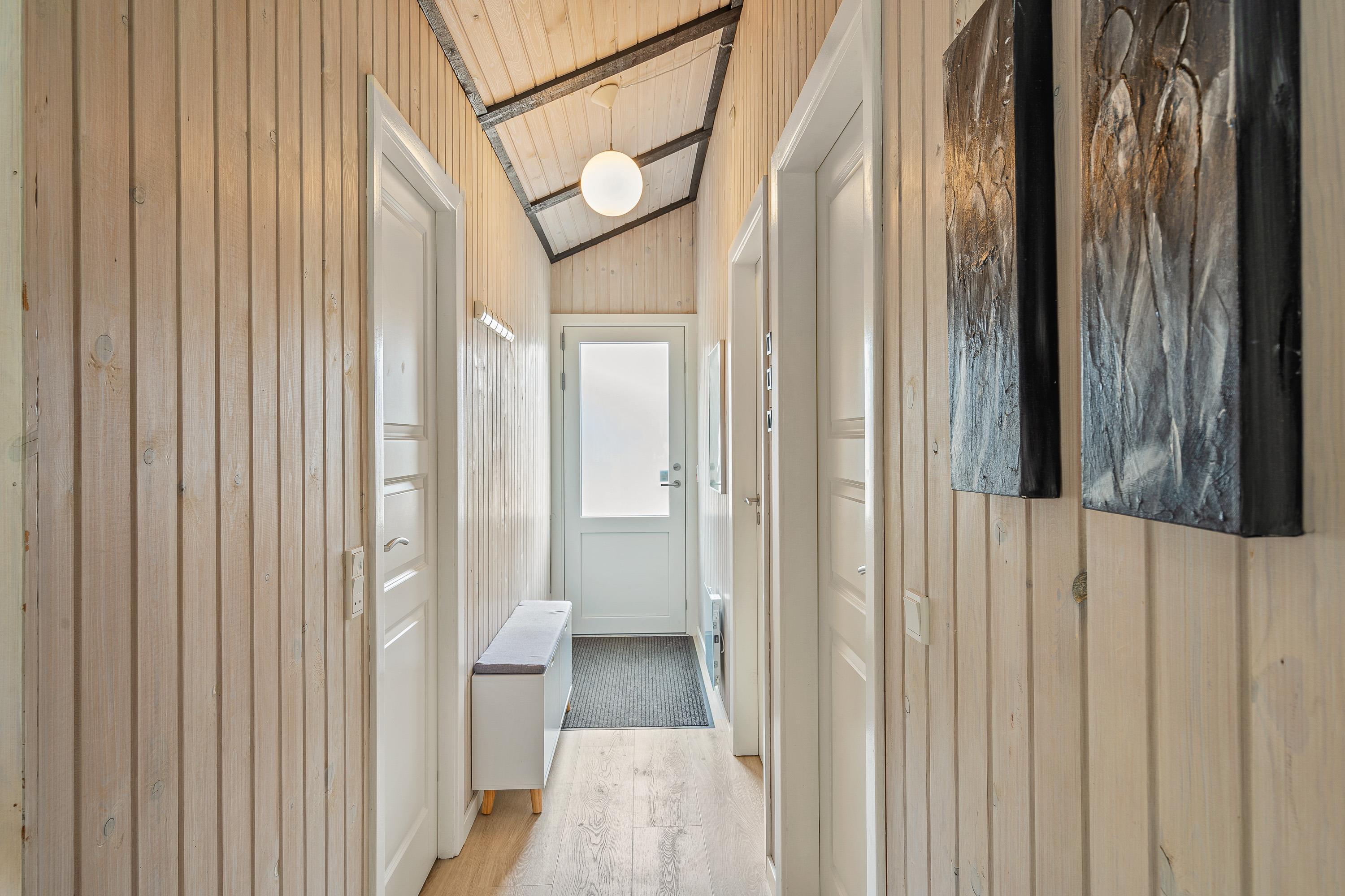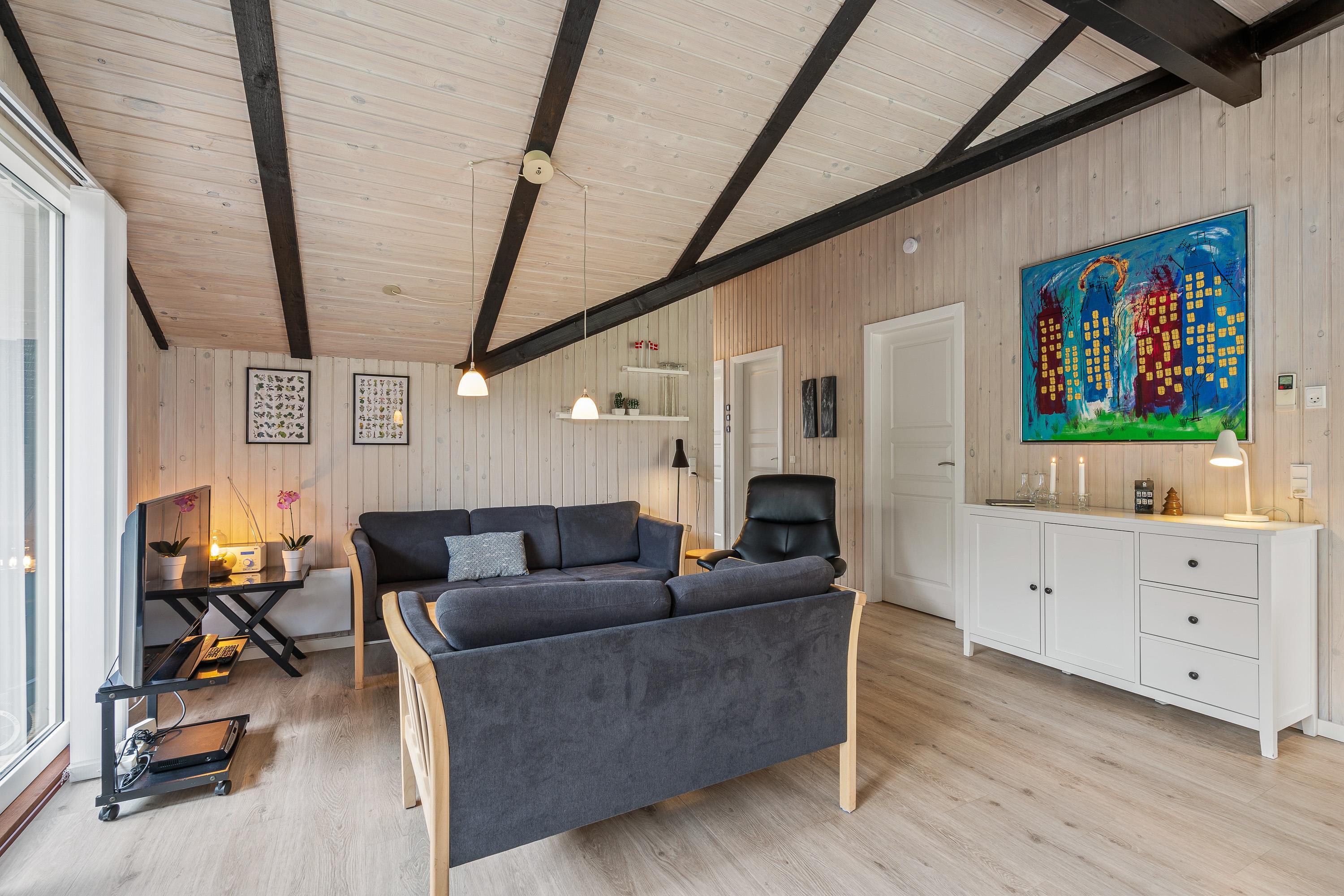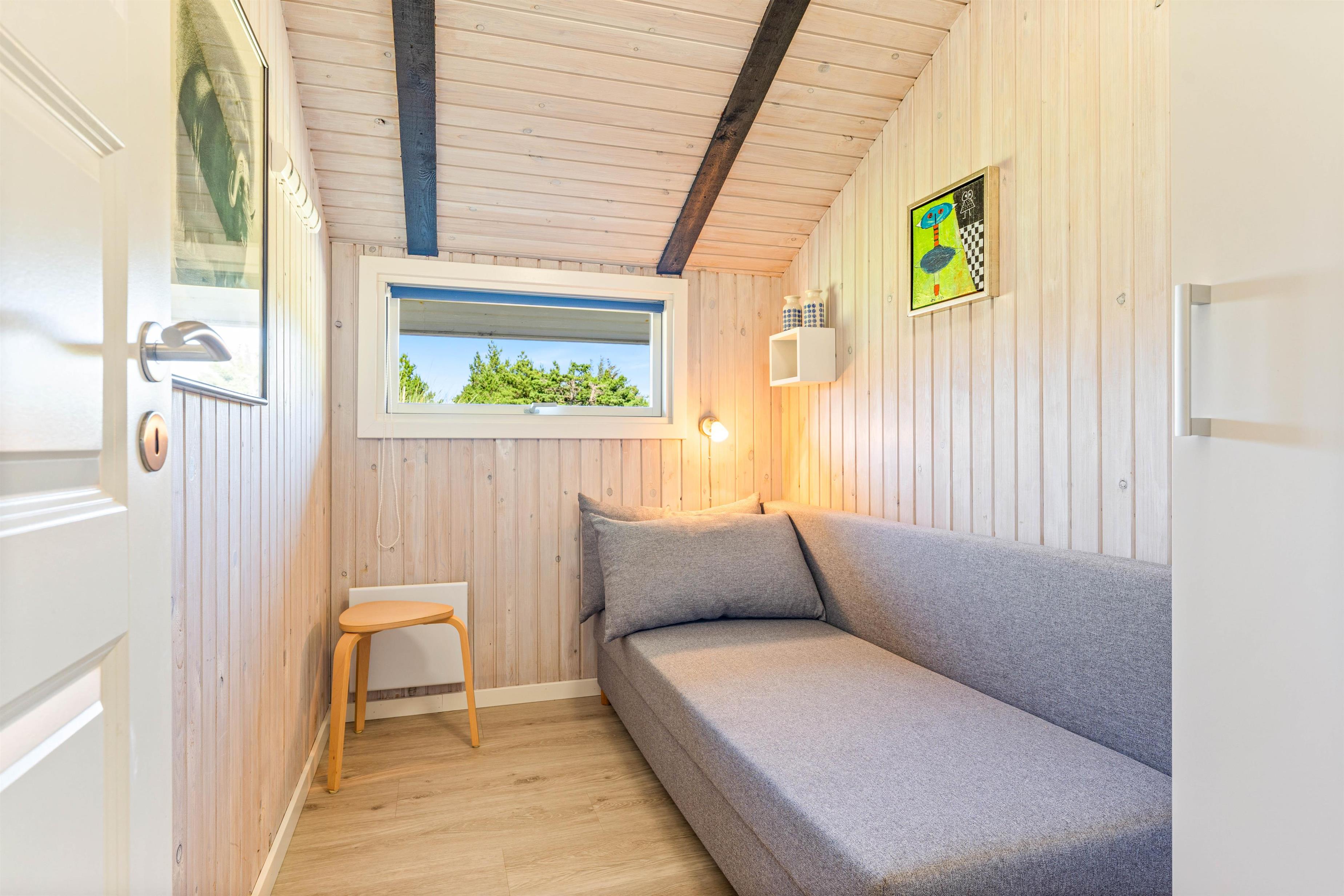 I de lyse soveværelser er der også sørget for skabsplads, hvor I kan opbevare tøj og andre sager, og sovesofaen er ideel til familiens teenager.