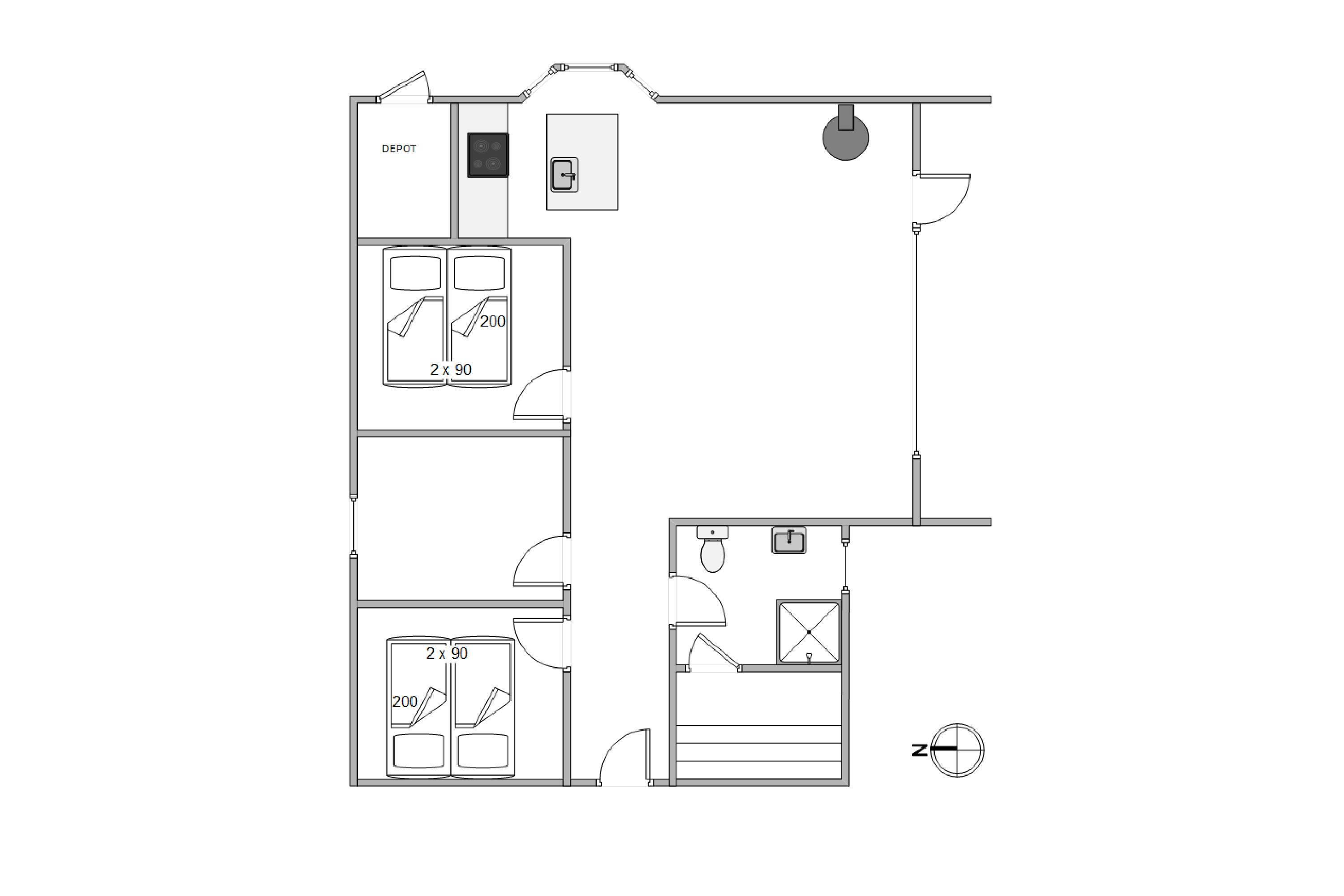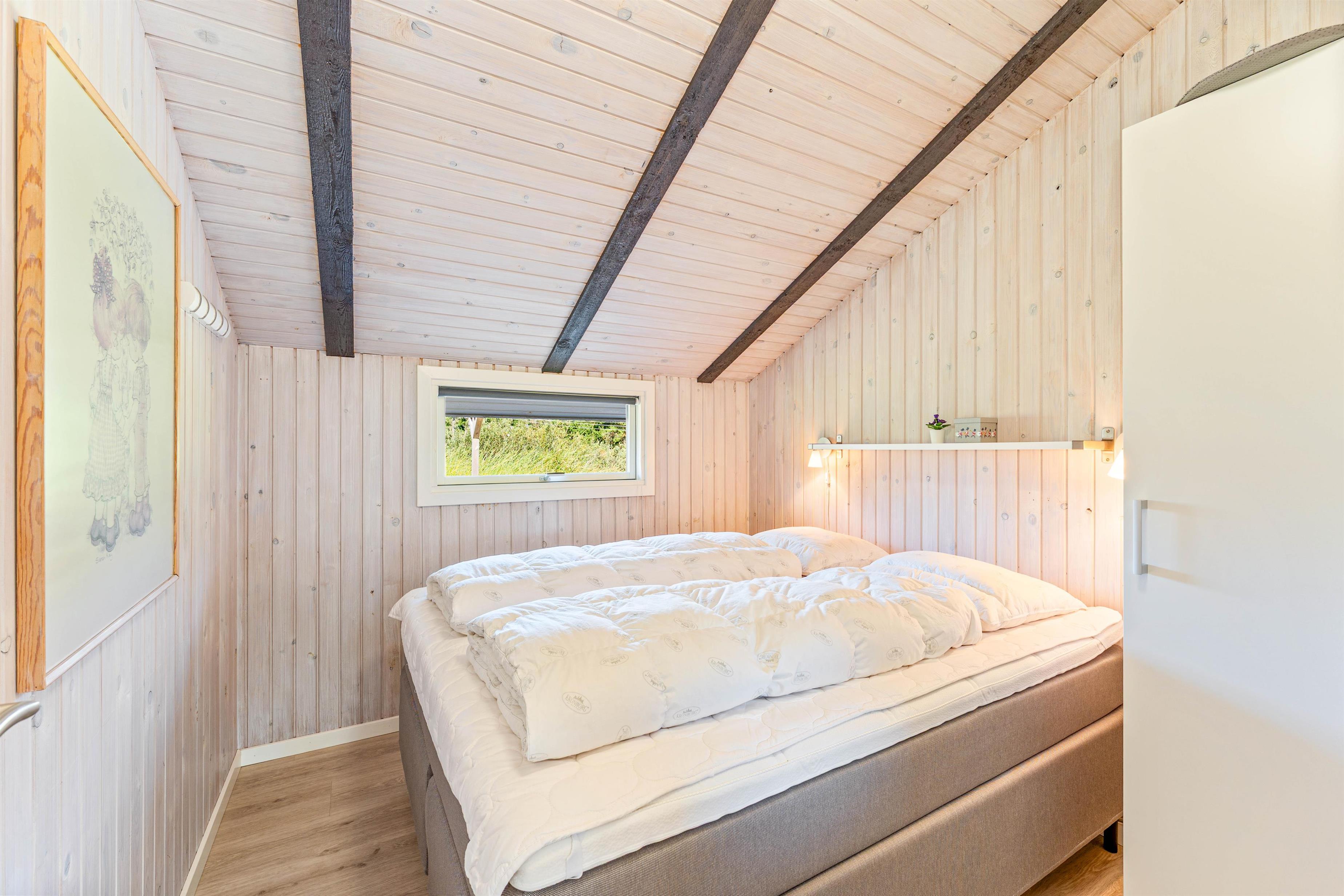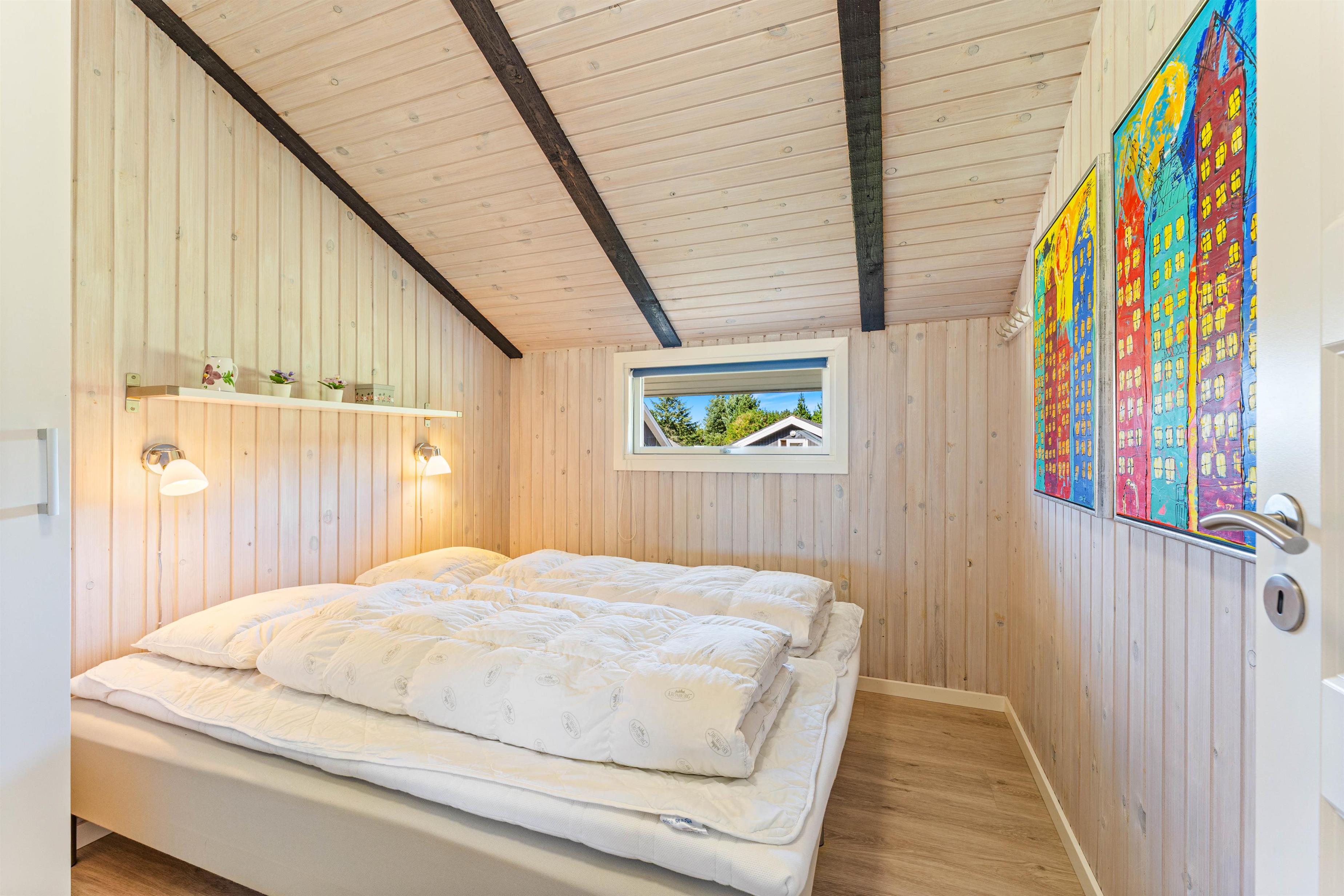 I de lyse soveværelser er der også sørget for skabsplads, hvor I kan opbevare tøj og andre sager, og sovesofaen er ideel til familiens teenager.