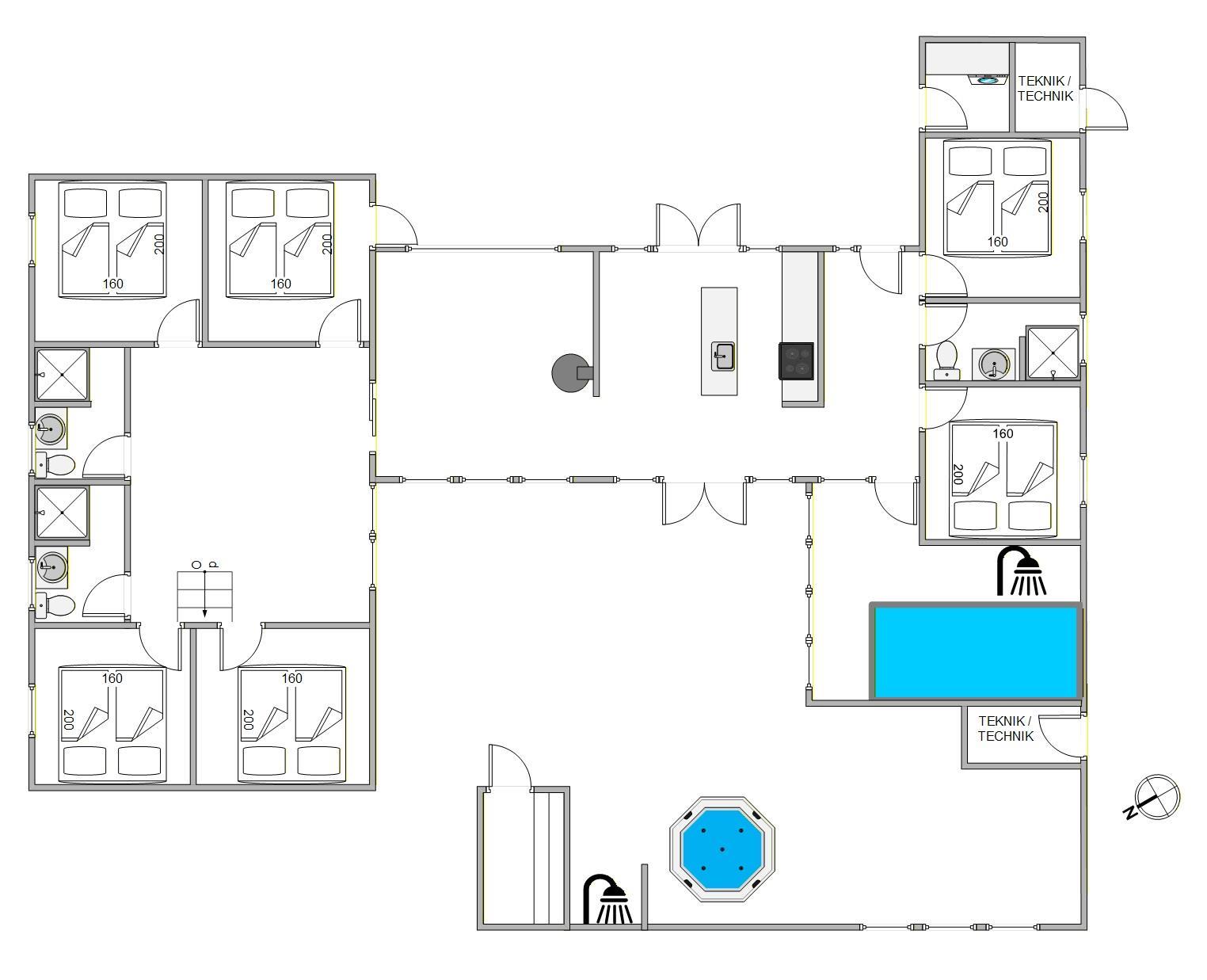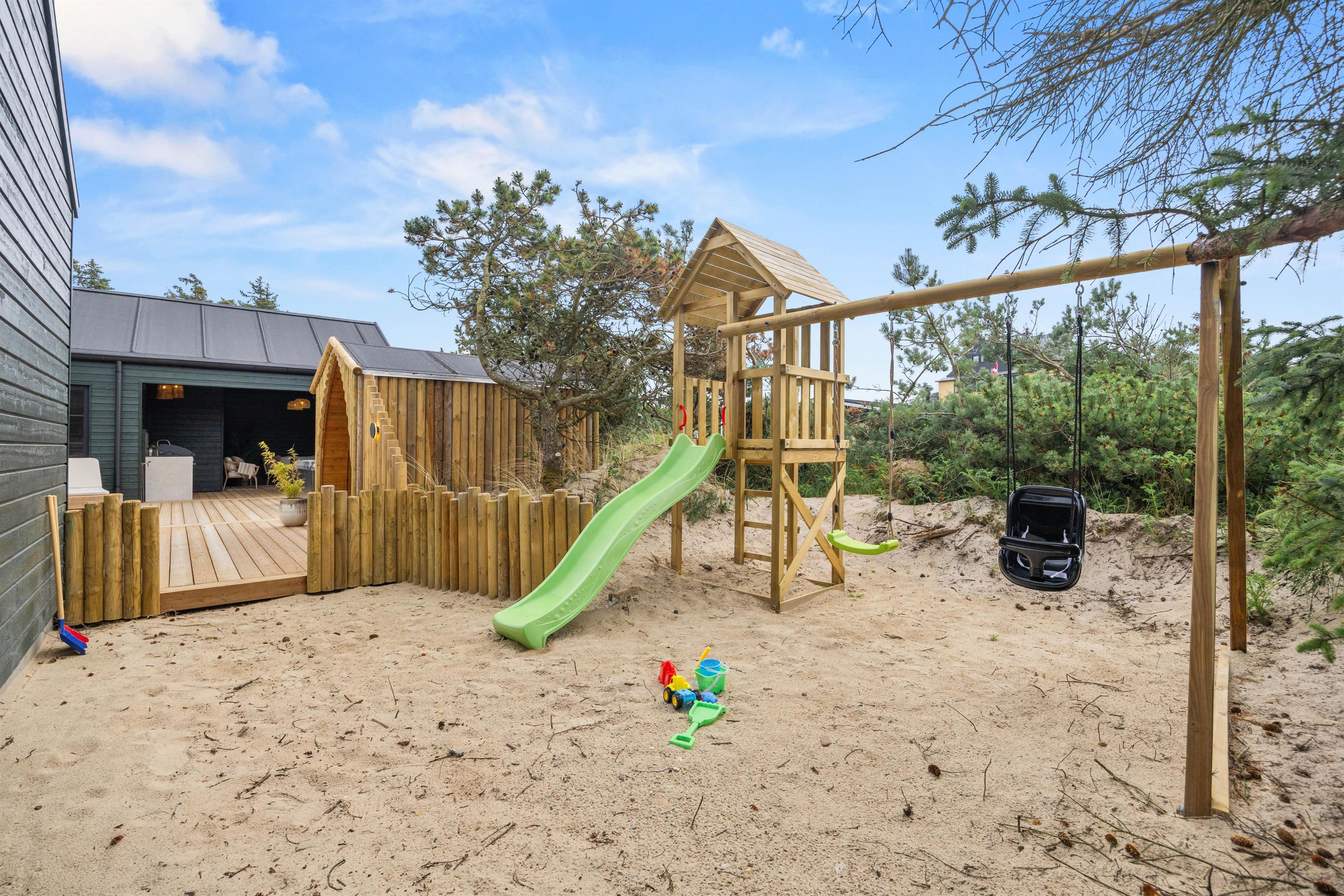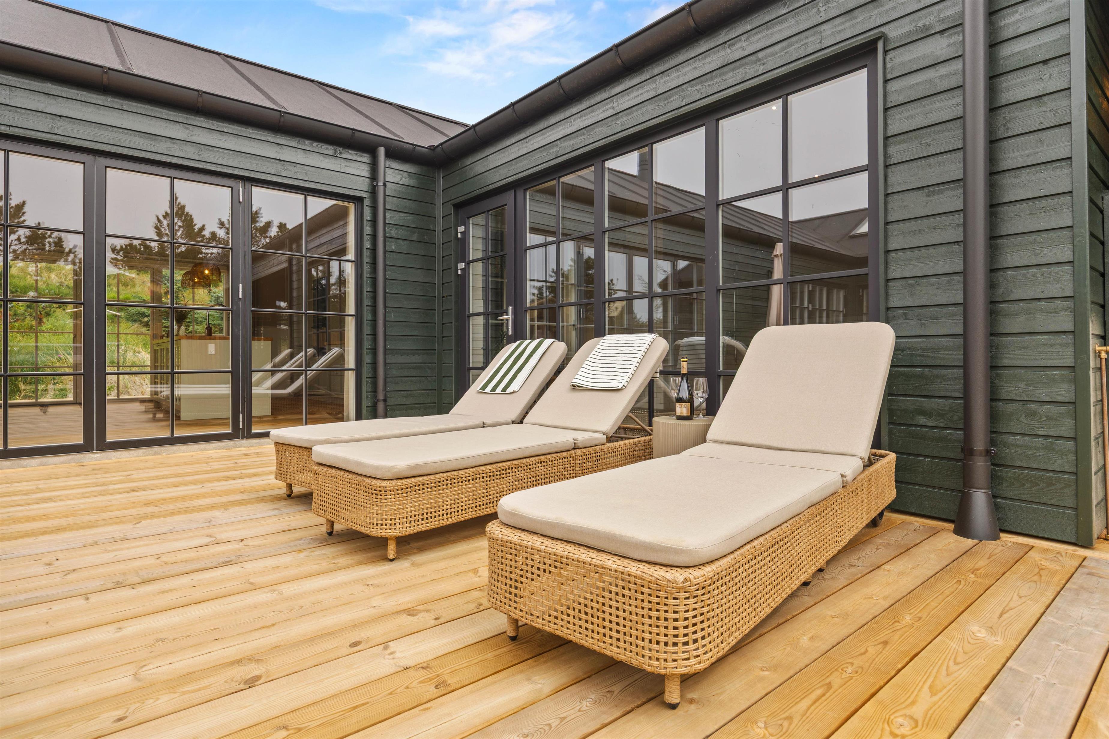 Dette imponerende aktivitetshus i Vejers er bygget i 2025, og her finder I alt, hsommerhushjertet begærer. Her er kræset for detaljerne, hyggen og rig mulighed for at nyde en dejlig ferie med familie og venner i skønne omgivelser. Her er 6 gode soveværelser samt 3 badeværelser, alle med gulvvarme. Udover den flotte indretning, de lækre faciliteter og de luksuriøse detaljer, så er sommerhuset også topisoleret og udstyret med energibesparende løsninger.