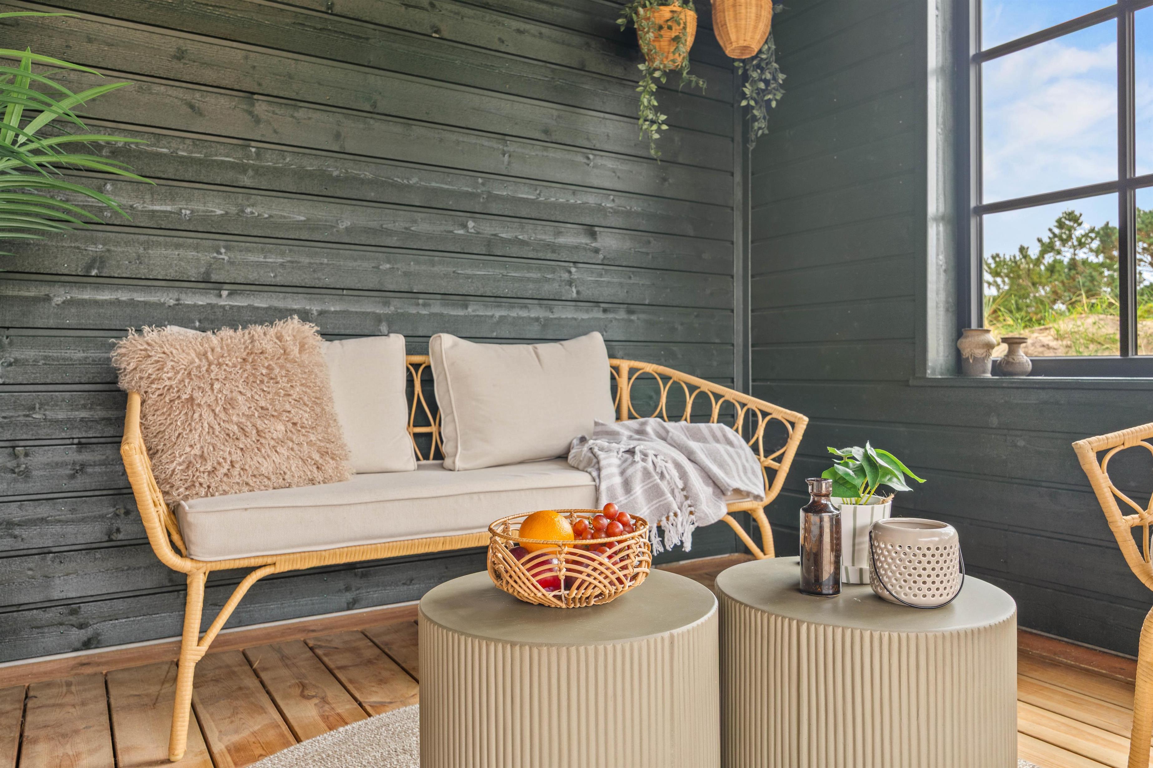 Sommerhuset har en dejlig afskærmet og overdækket terrasse med behagelige havemøbler, og her er der rig mulighed for at koble af og nyde den danske sommer. Slå benene op, læs en god bog og lad børnene lege på gyngerne og i sandkassen.