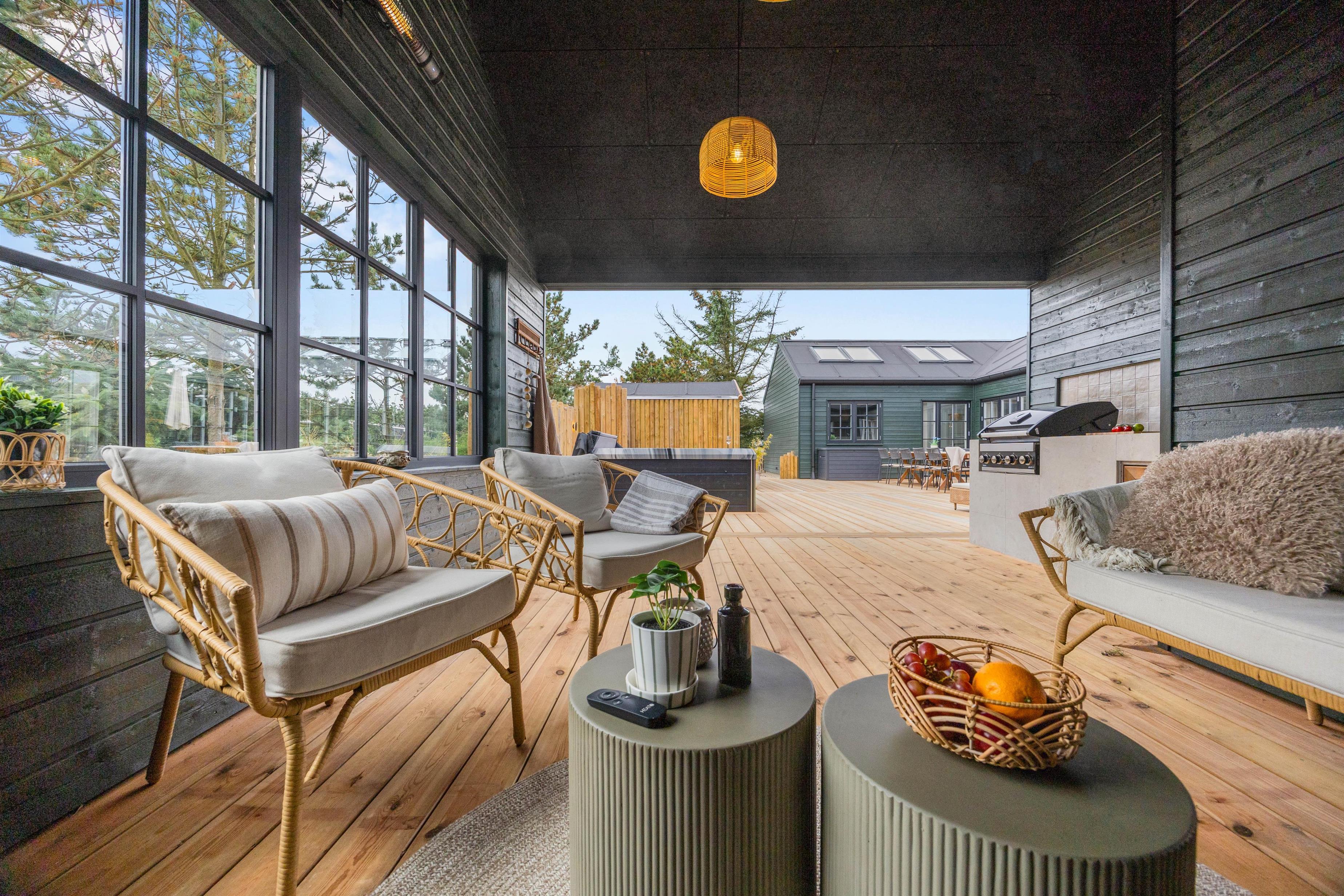 Drømmer I om femstjernet luksus ved Vesterhavet? Så er dette lækre sommerhus på Mågevej 5 i Vejers et godt bud! Med sine moderne 235 m2 er der plads til 12 personer og 2 hunde. Aktivitetshuset, der ligger 300 meter fra vandet, byder på swimmingpool, billard, bordtennis og ikke mindst udendørs sauna og spabad. Hjertelig velkommen på Mågevej 5!