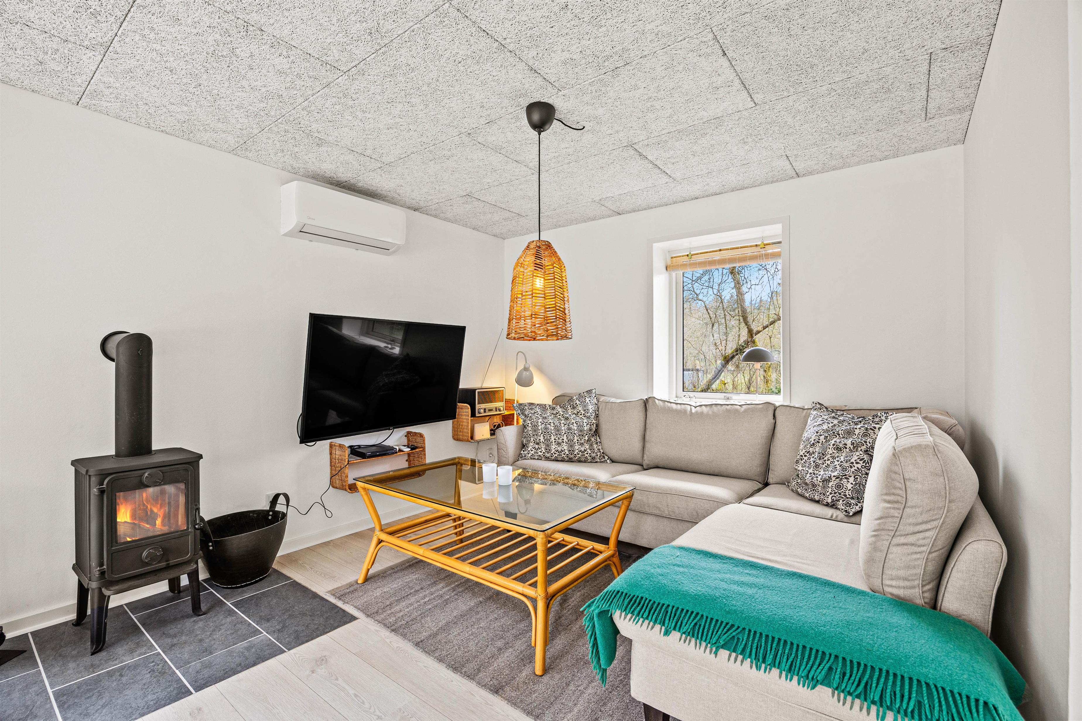 Hyggelig indretning med brændeovn