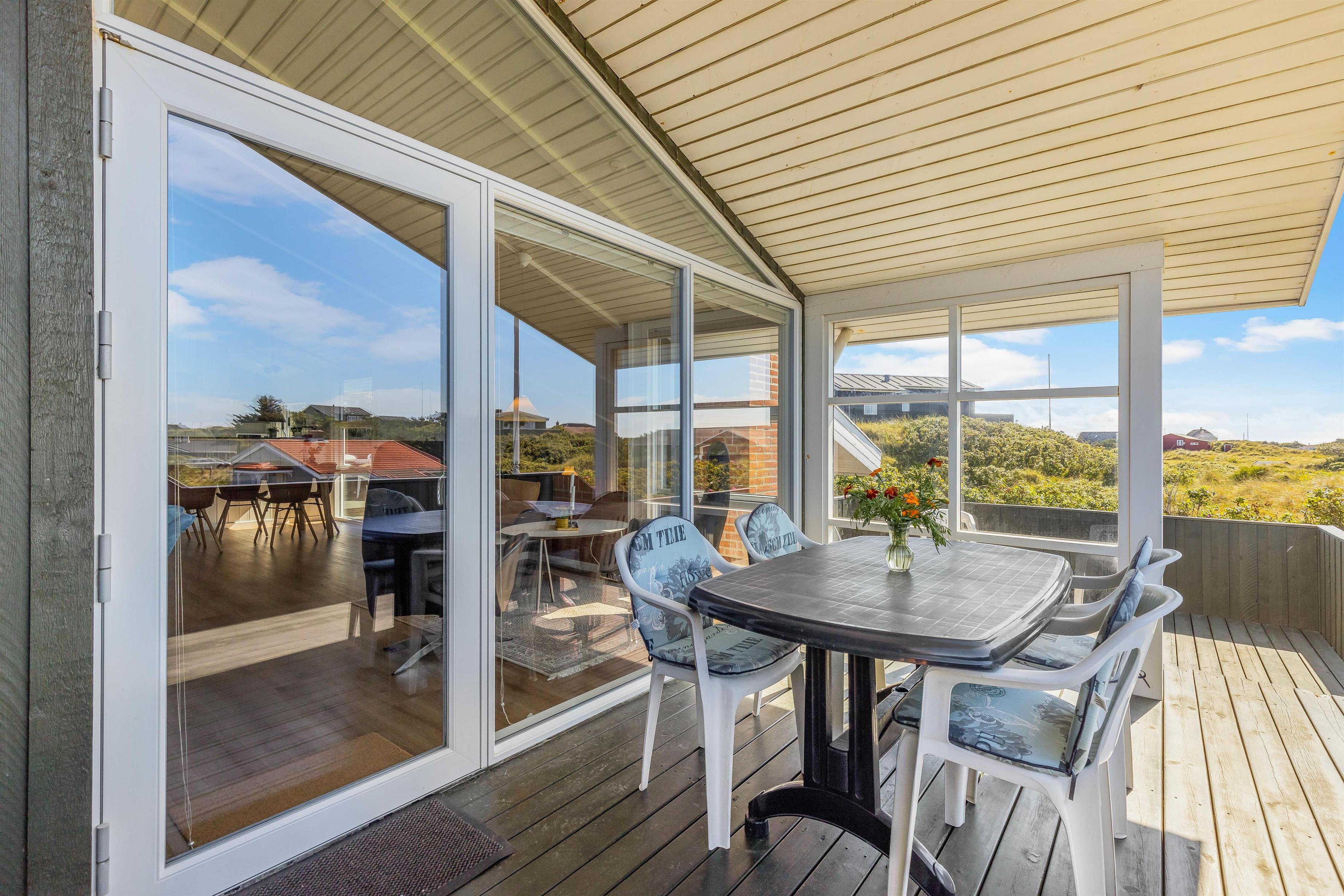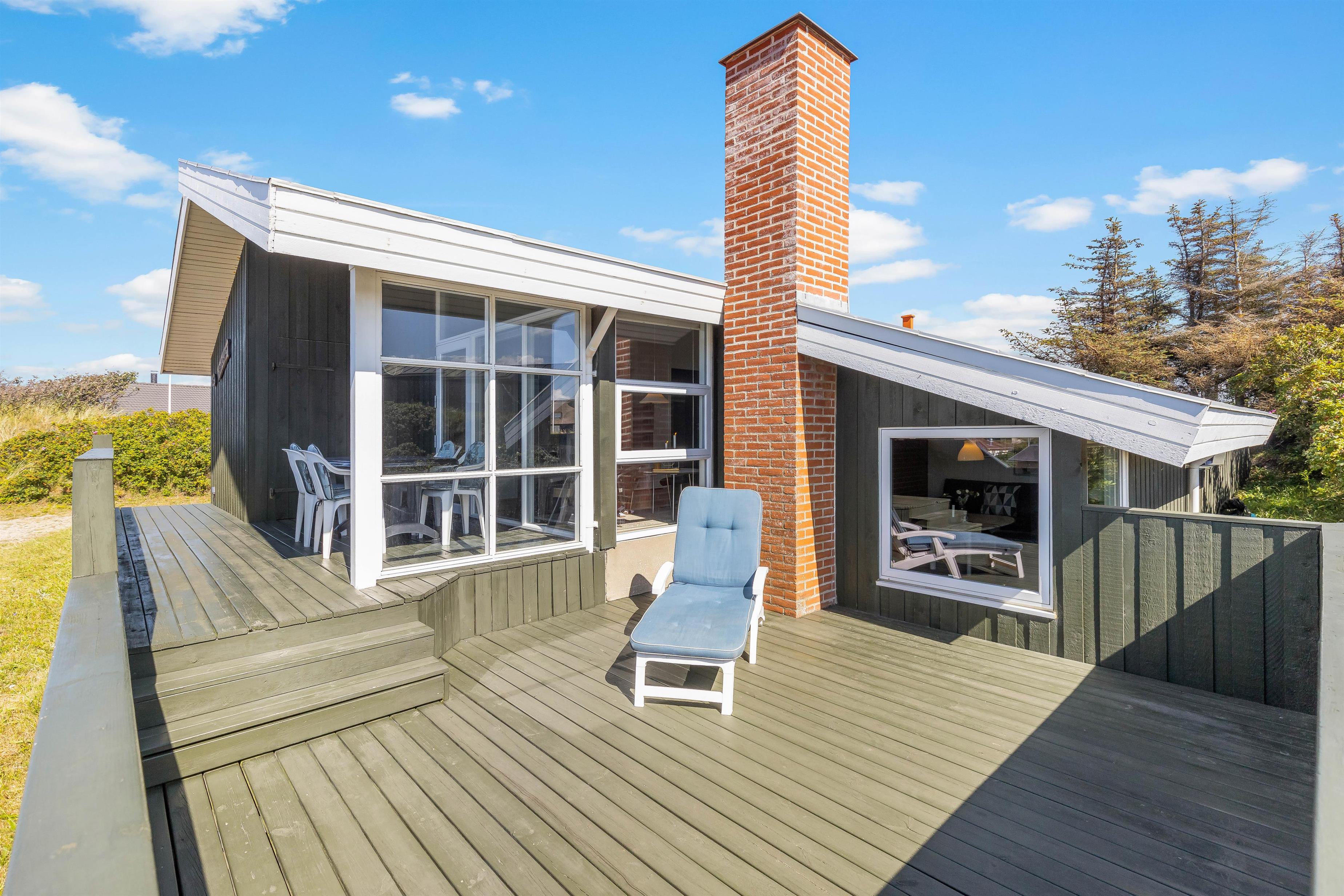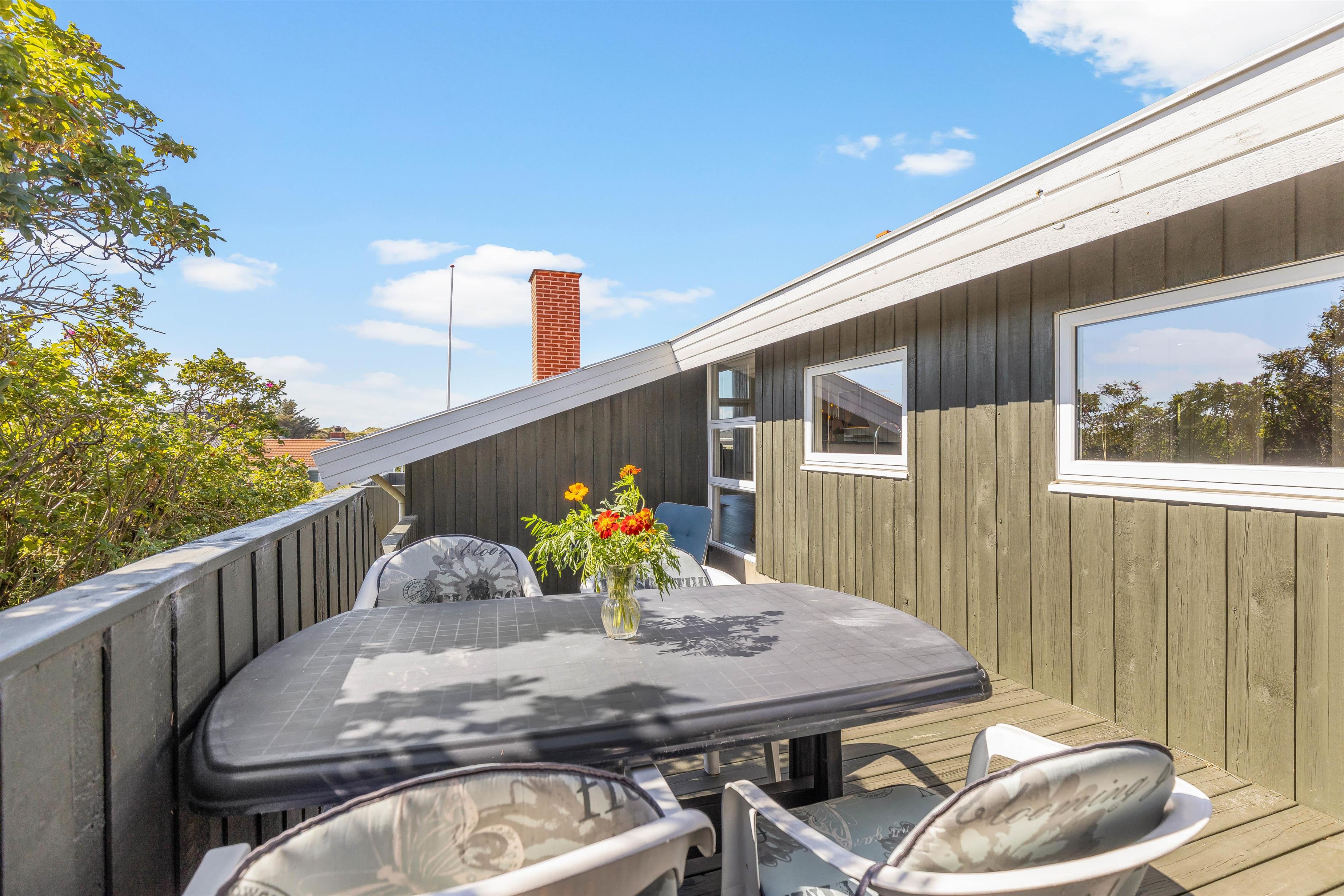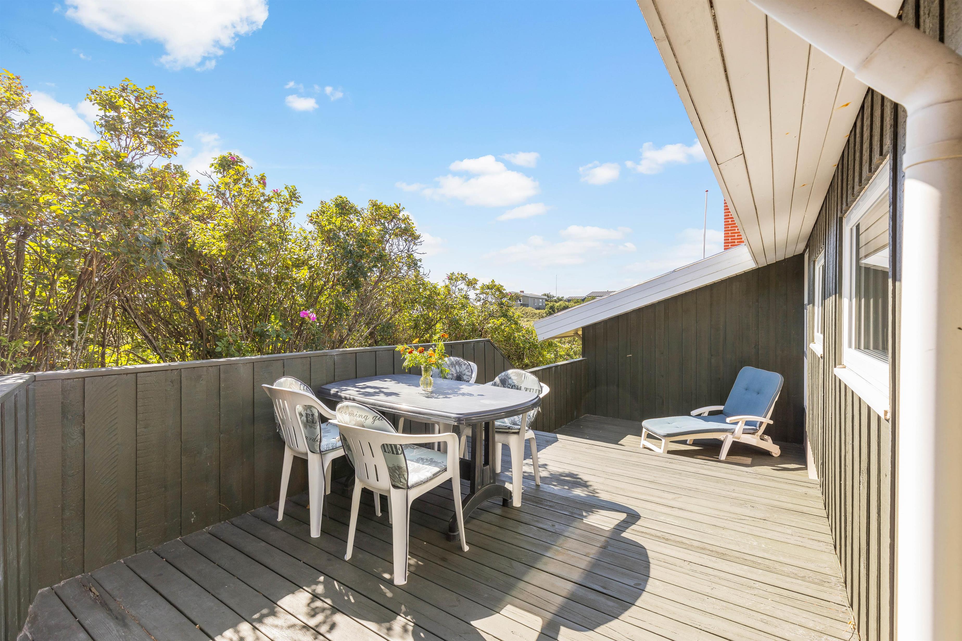 Fra alrummet har I udgang til sommerhusets skønne terrasse, der er delvist overdækket. På terrassen står både havemøbler og liggestole klar til, at I kan finde jer en god plads i solen, hvor I kan slappe af i den friske luft.