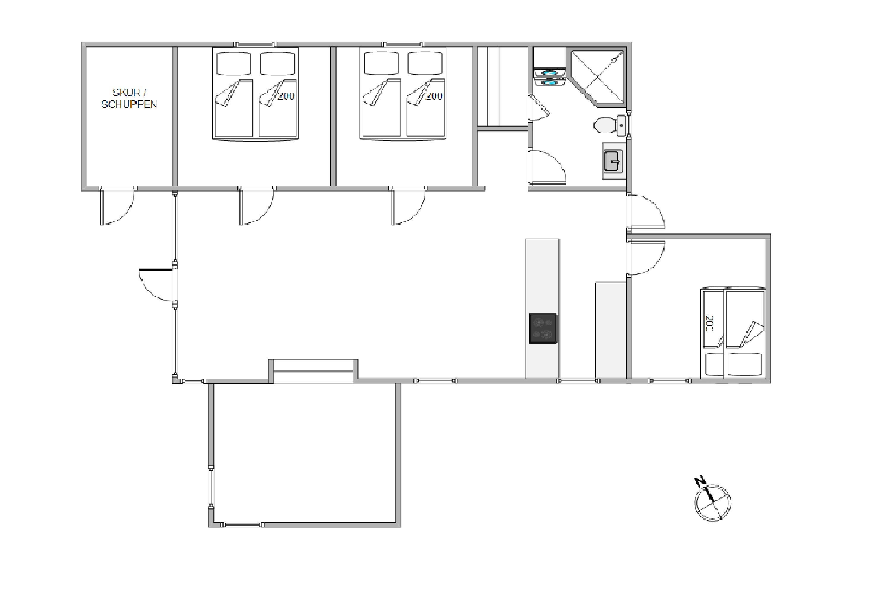 Alrummet forener køkken, stue og spiseplads og danner rammen om mange hyggelige stunder for alle feriegæster. Her kan I kan lave mad sammen, spille spil og se film.