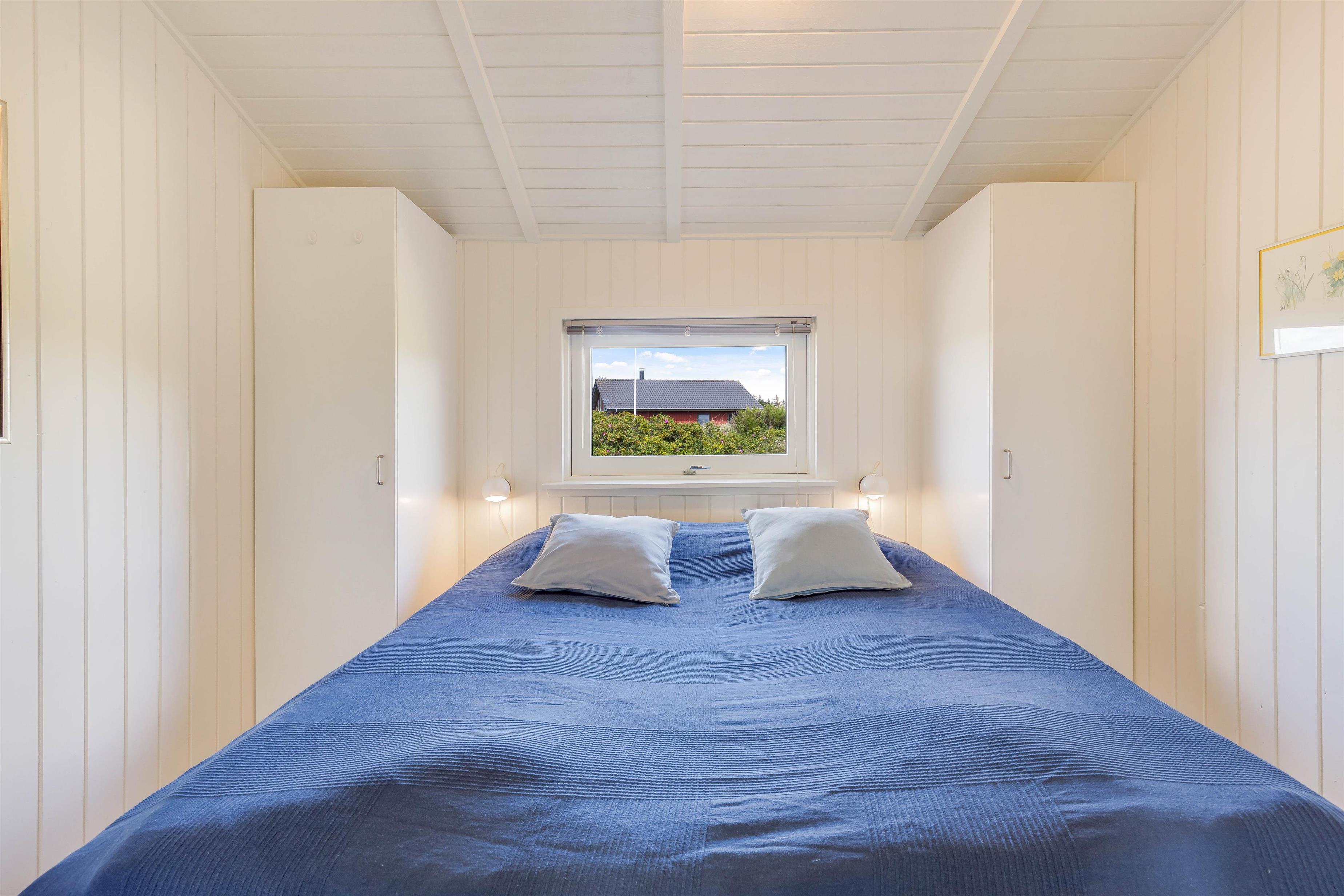 Efter en dejlig feriedag i Vejers kan I søge mod sommerhusets 3 soveværelser, hvor I kan samle ny energi til de kommende feriedage. Det ene soveværelse er indrettet med en dobbeltseng, det andet med 2 enkeltsenge og det tredje med en etageseng.