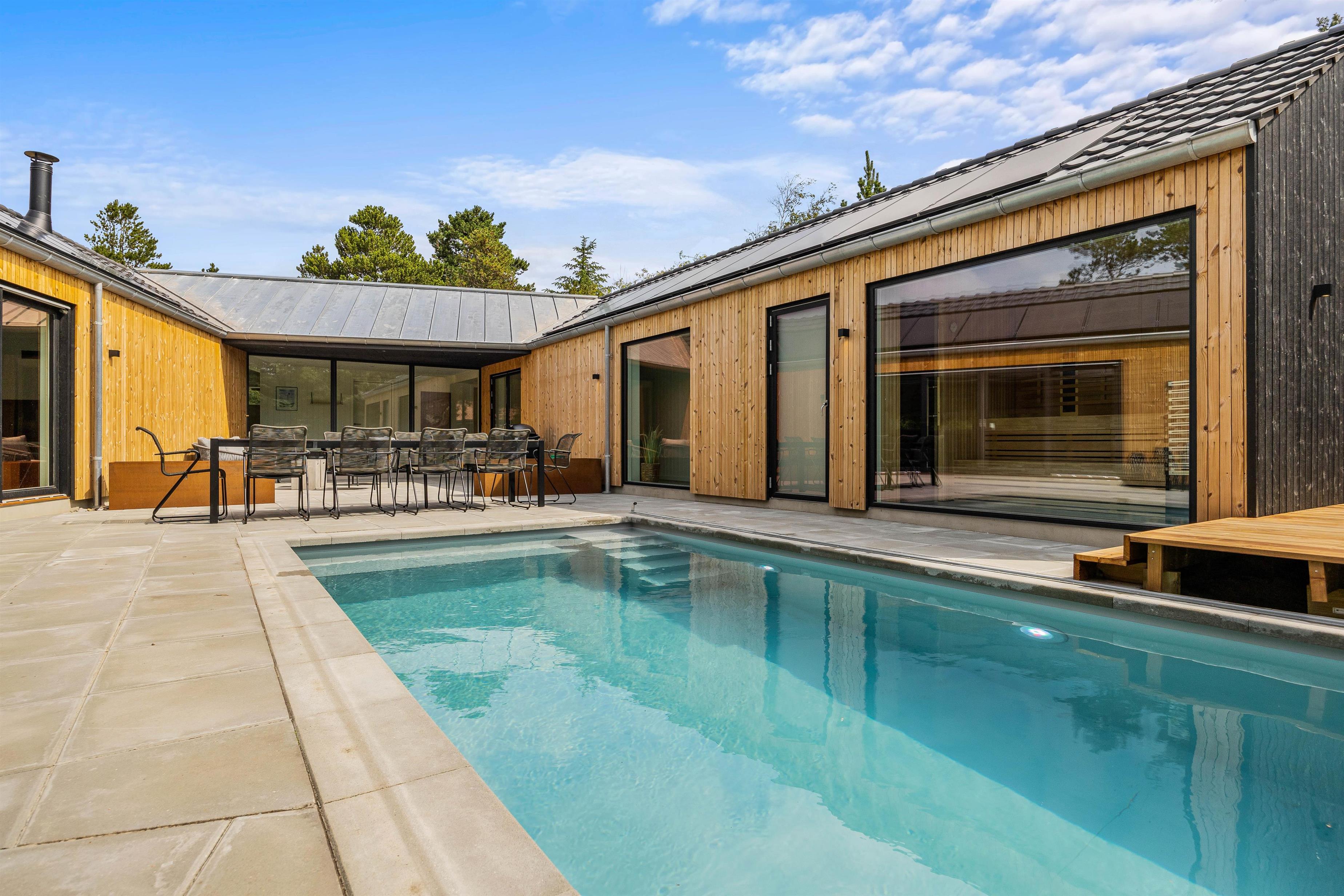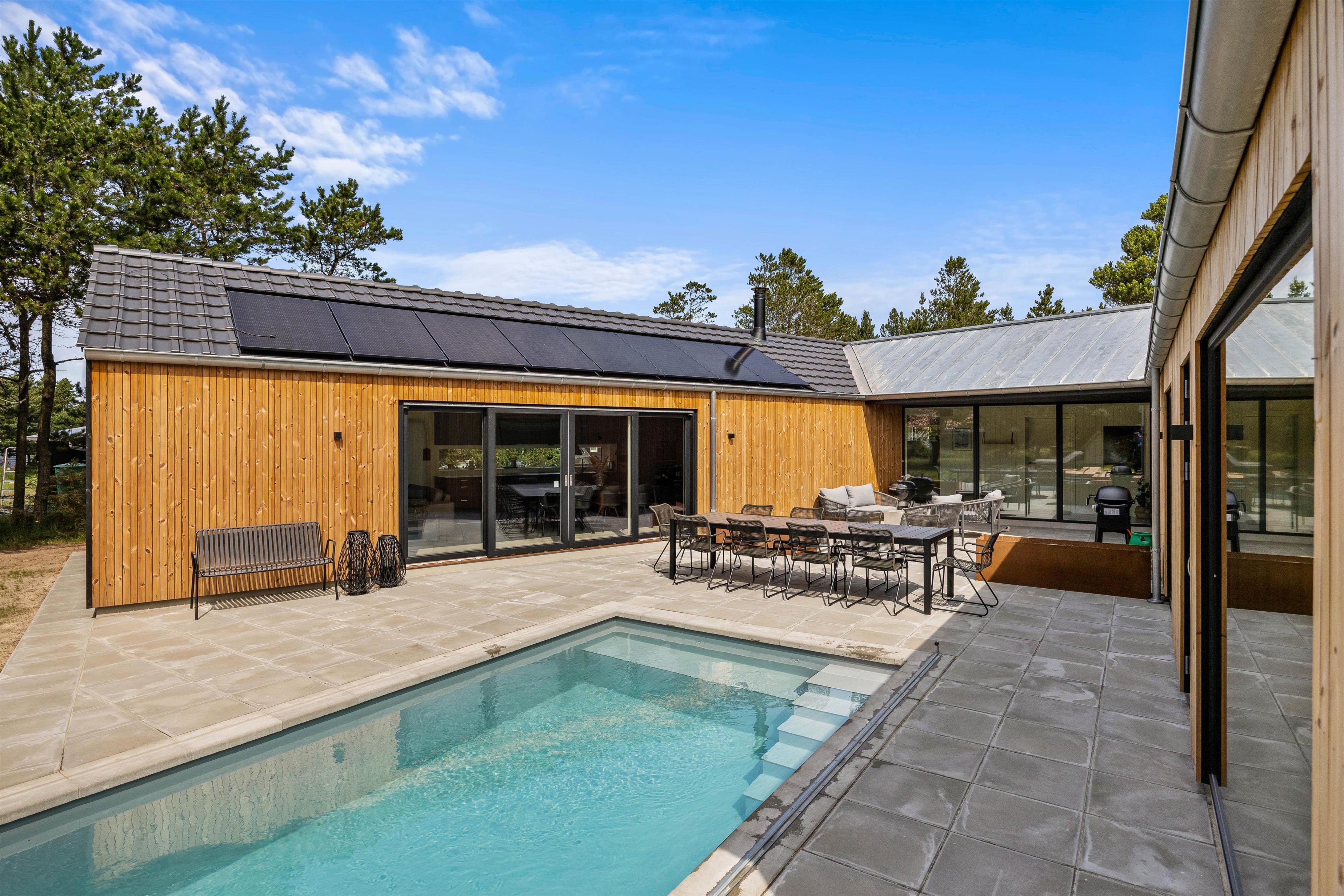 Hvis I er flere familier eller én stor vennegruppe, der er på udkig efter den perfekte base til jeres næste ferie, så bør I helt sikkert tage et kig på dette skønne luksussommerhus på Ørnevej 23 i Vejers. Dette fantastiske sommerhus rummer nemlig plads til en ferie for op til 10 personer, og her venter jer lidt af hvert! I kan se frem til mange sjove stunder med at bade i den opvarmede udendørs pool eller med at spille bordtennis eller billard. I kan også glæde jer til at nyde masser af afslapning i udespaen og i saunaen. Sommerhuset har derudover en dejlig placering med 500 meter til nærmeste indkøbsmulighed og 1,5 kilometer til stranden. På jeres ferie i sommerhuset er op til 2 hunde også hjerteligt velkomne, og kører I el-bil, kan den oplades i sommerhusets ladestik til el-biler.