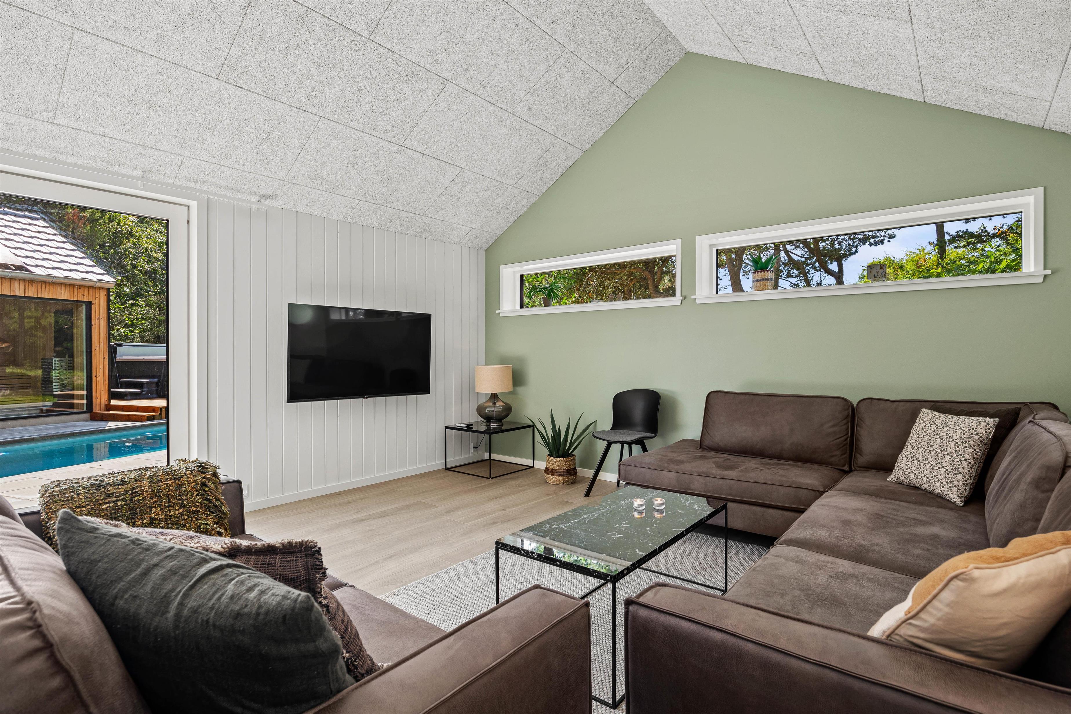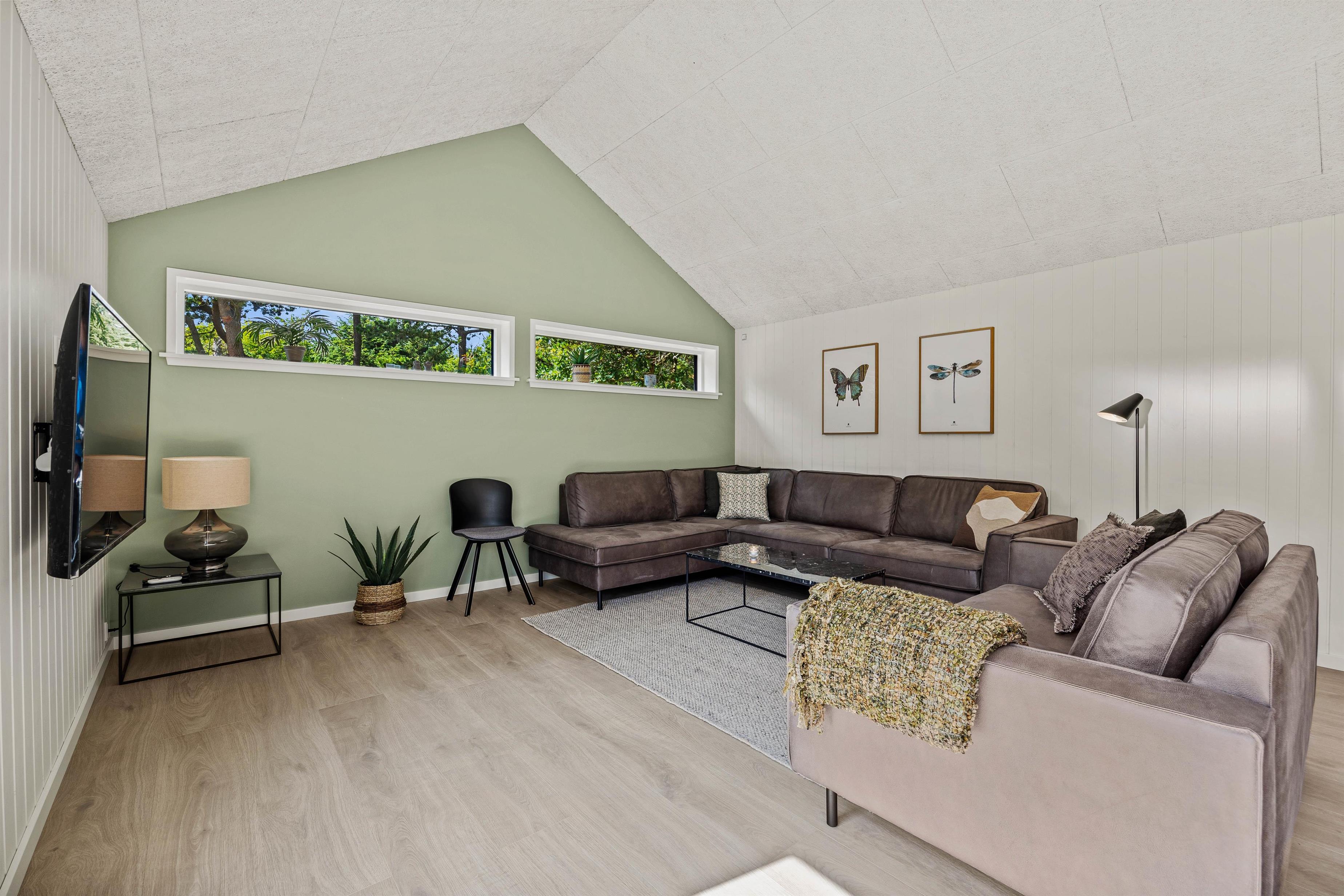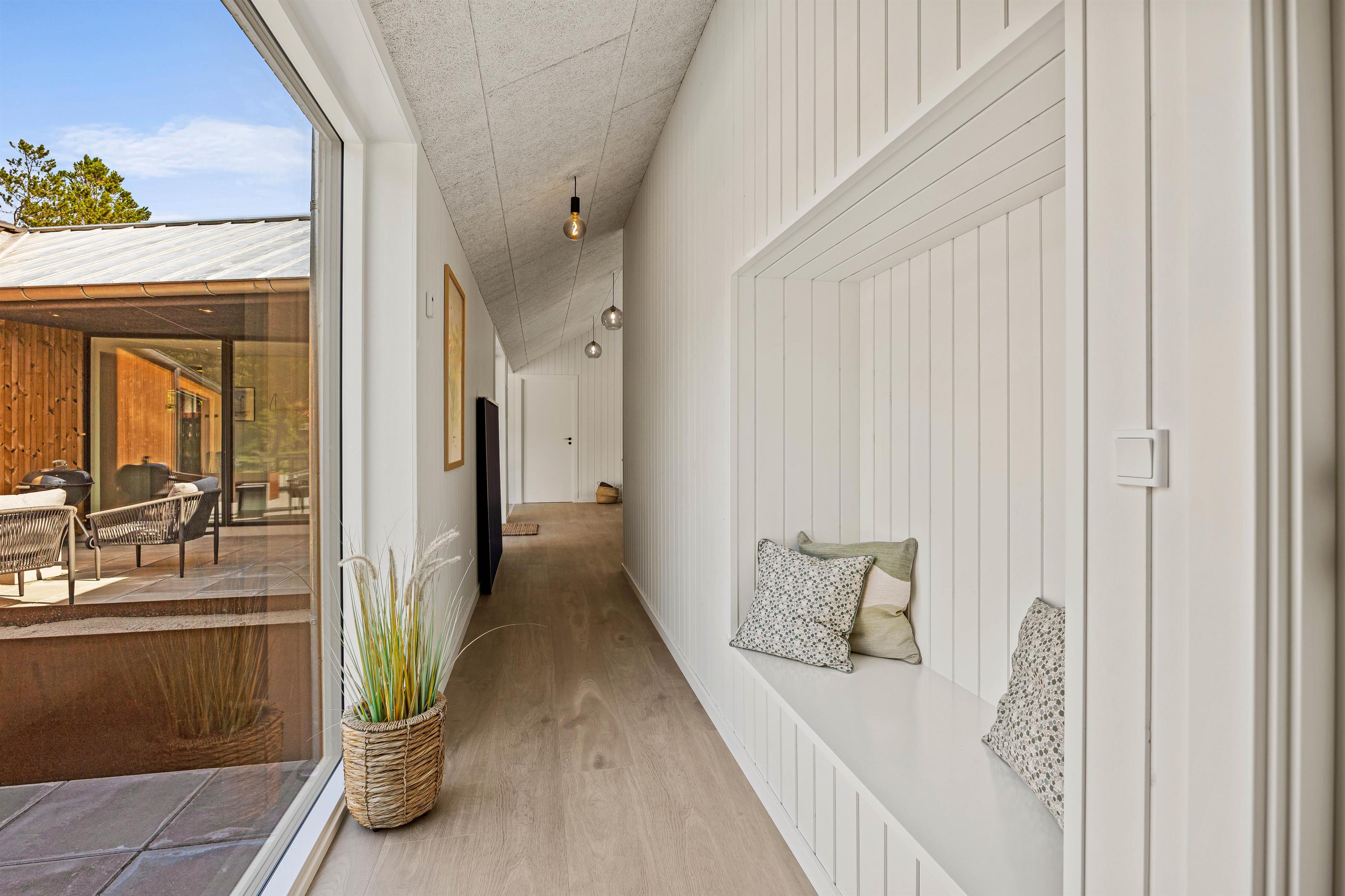 Derudover er der i feriehuset også et dejligt, stort alrum, hvor I kan tilbringe hyggelige feriestunder med madlavning, spil og film. Her er der desuden en pejseindsats, der sammen med den stilfulde indretning sørger for, at feriestemningen bliver fuldendt.