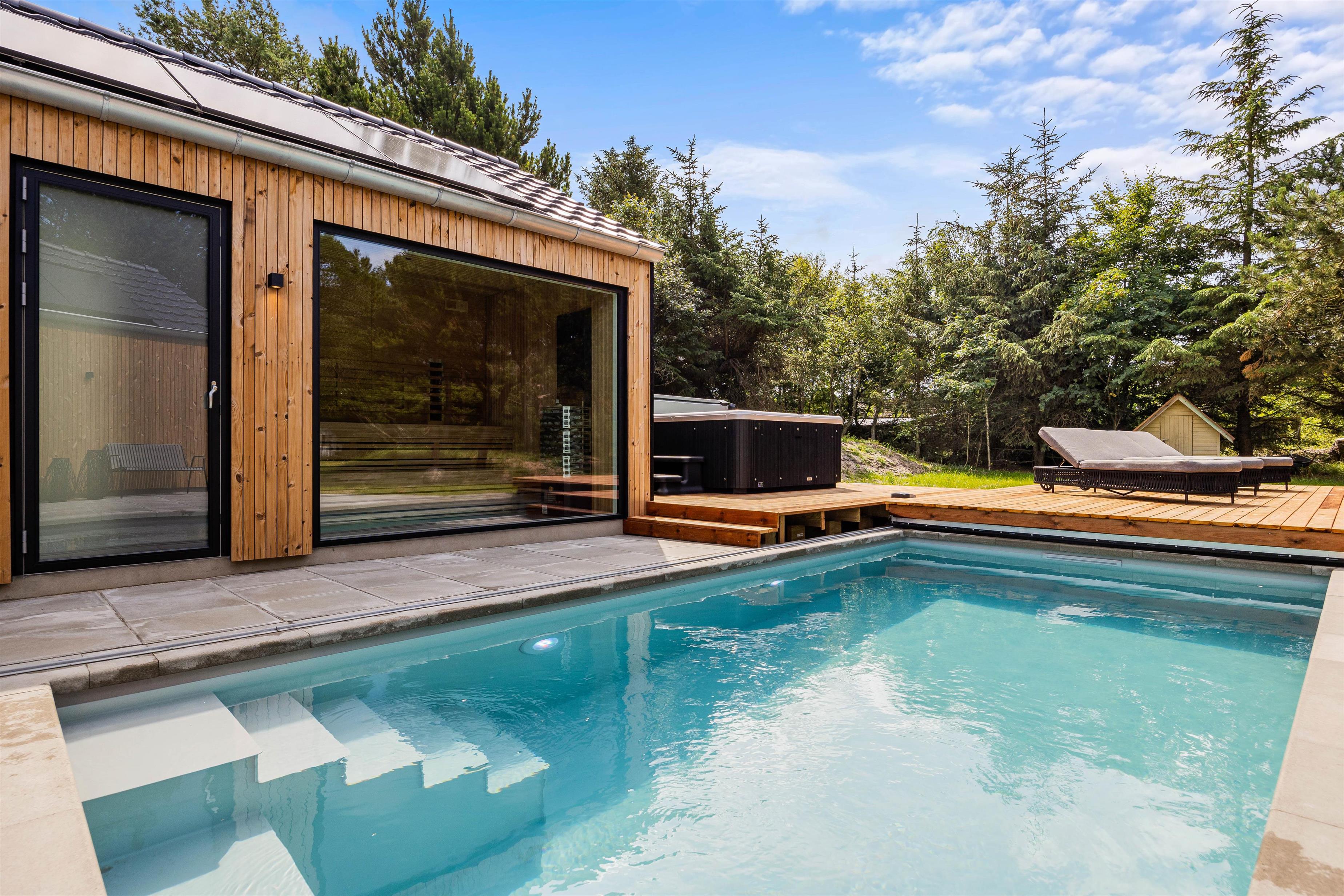 Opvarmet udendørs pool, udespa og sauna
