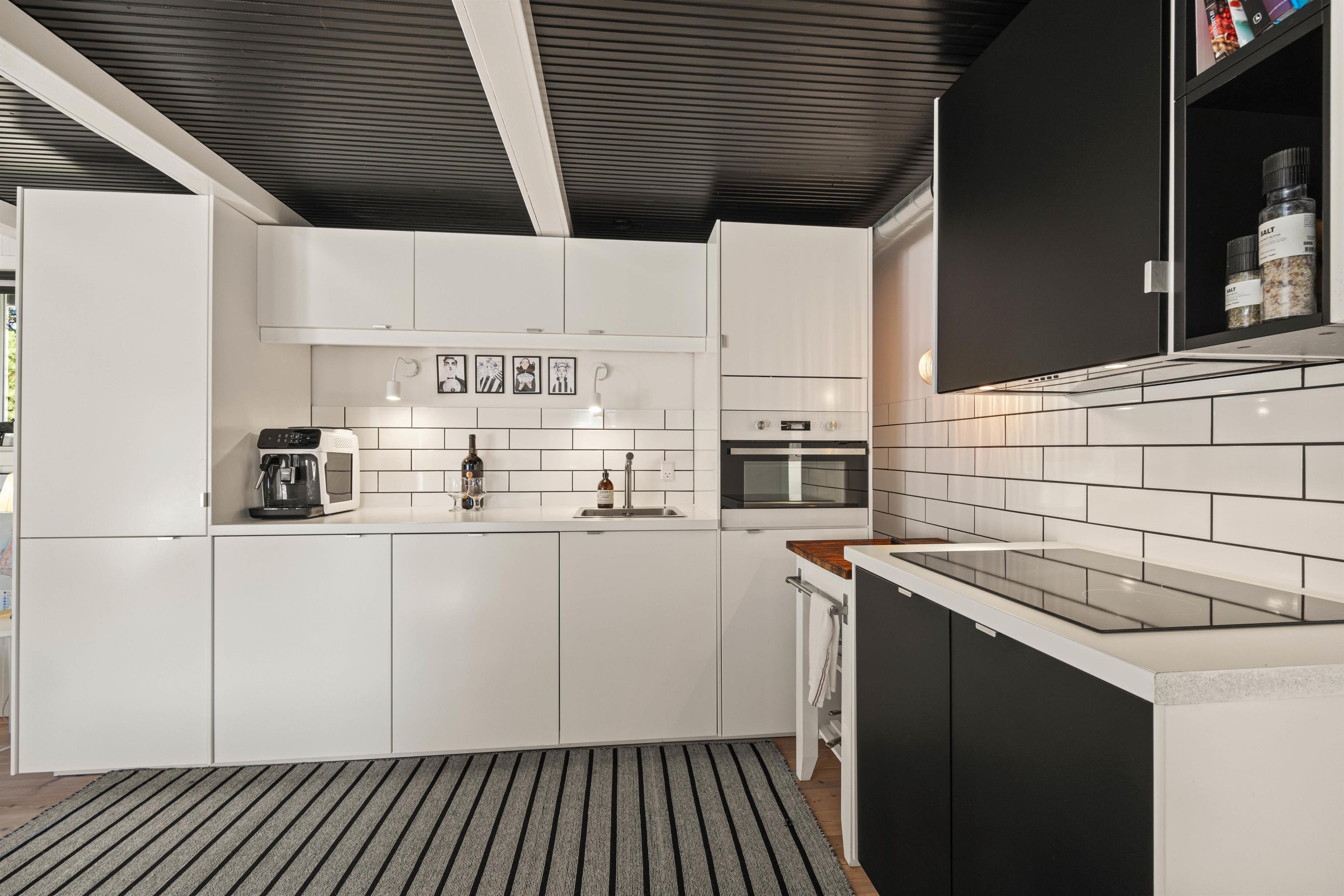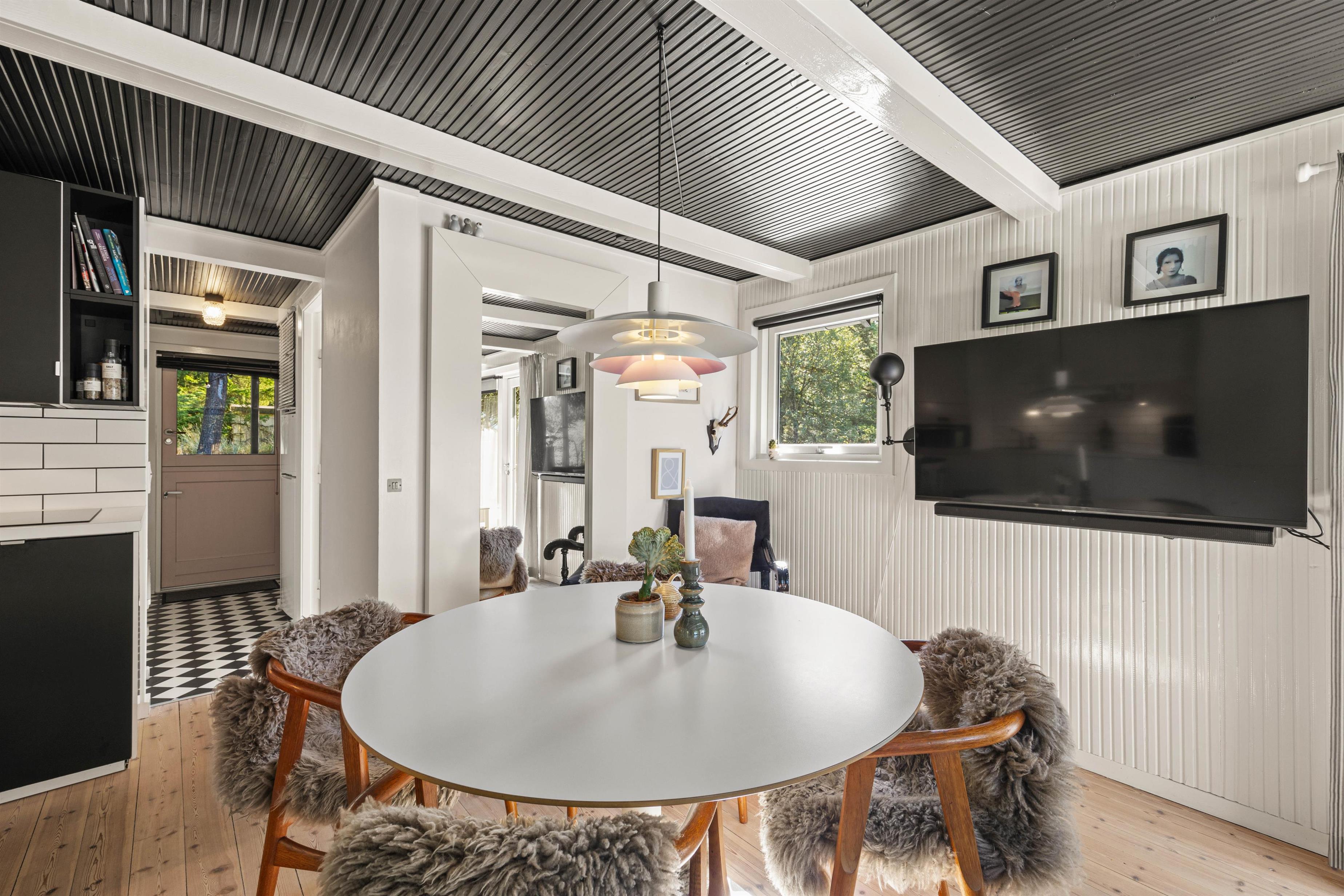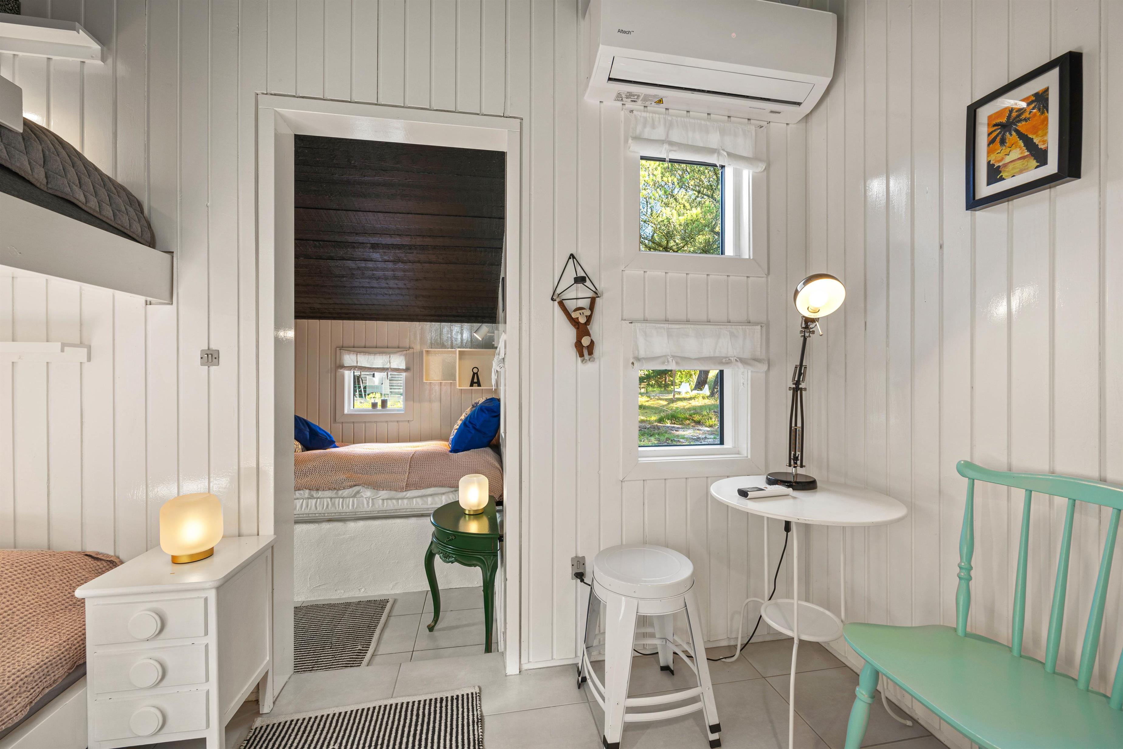 Foran ligger en tid væk fra hverdagens hektiske rytme, men det skal stadig være med den moderne komfort, vi alle sætter pris på. Sommerhuset byder på en praktisk opvaskemaskine, så I ikke skal bruge unødig tid på opvasken. Derudover sørger en effektiv luft til luft varmepumpe for, at temperaturen kan tilpasses jeres behov, så I får en behagelig atmosfære året rundt. I vil finde alt det nødvendige i det veludstyrede køkken og det smagfulde badeværelse, som er indrettet for at sikre jeres bekvemmelighed.