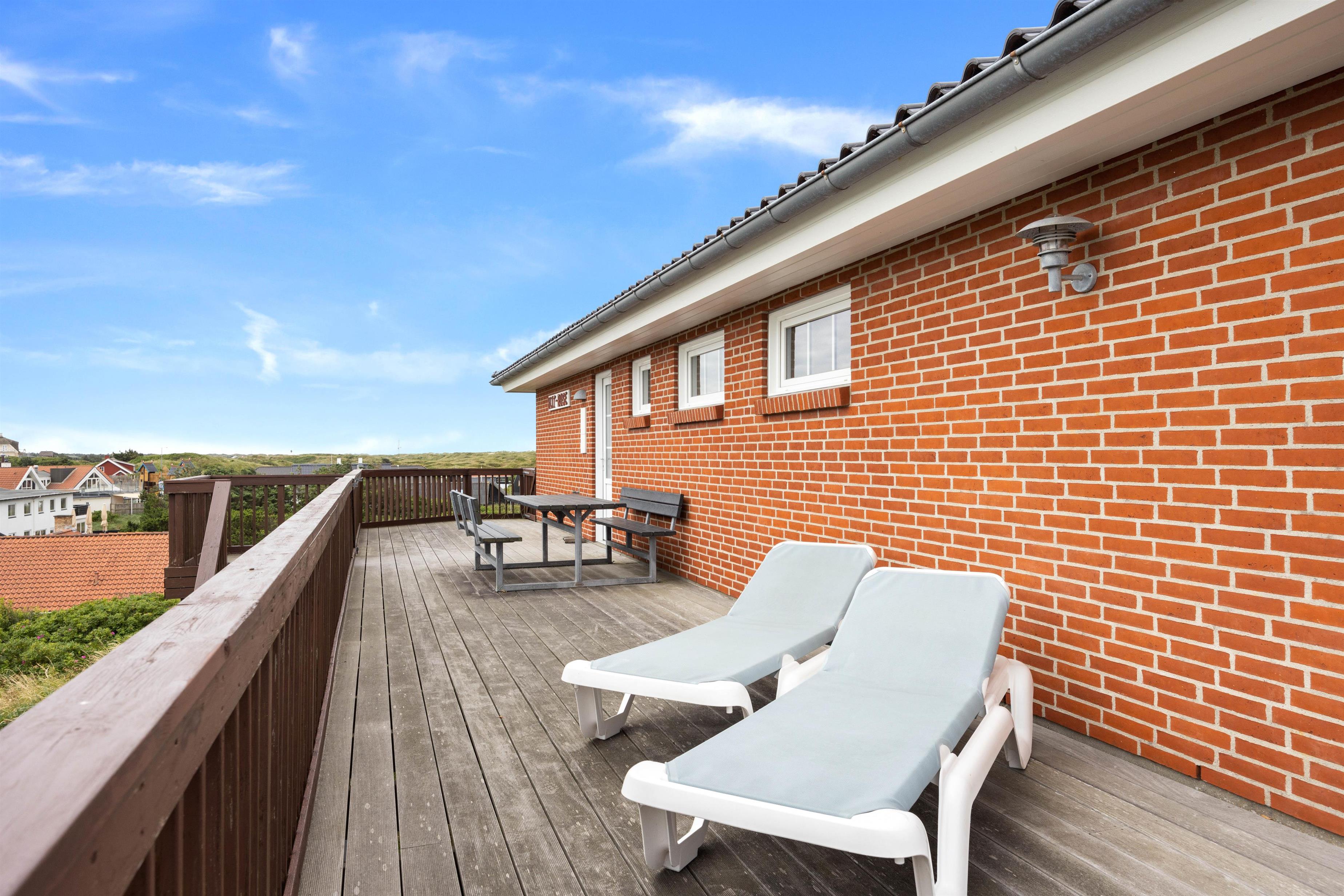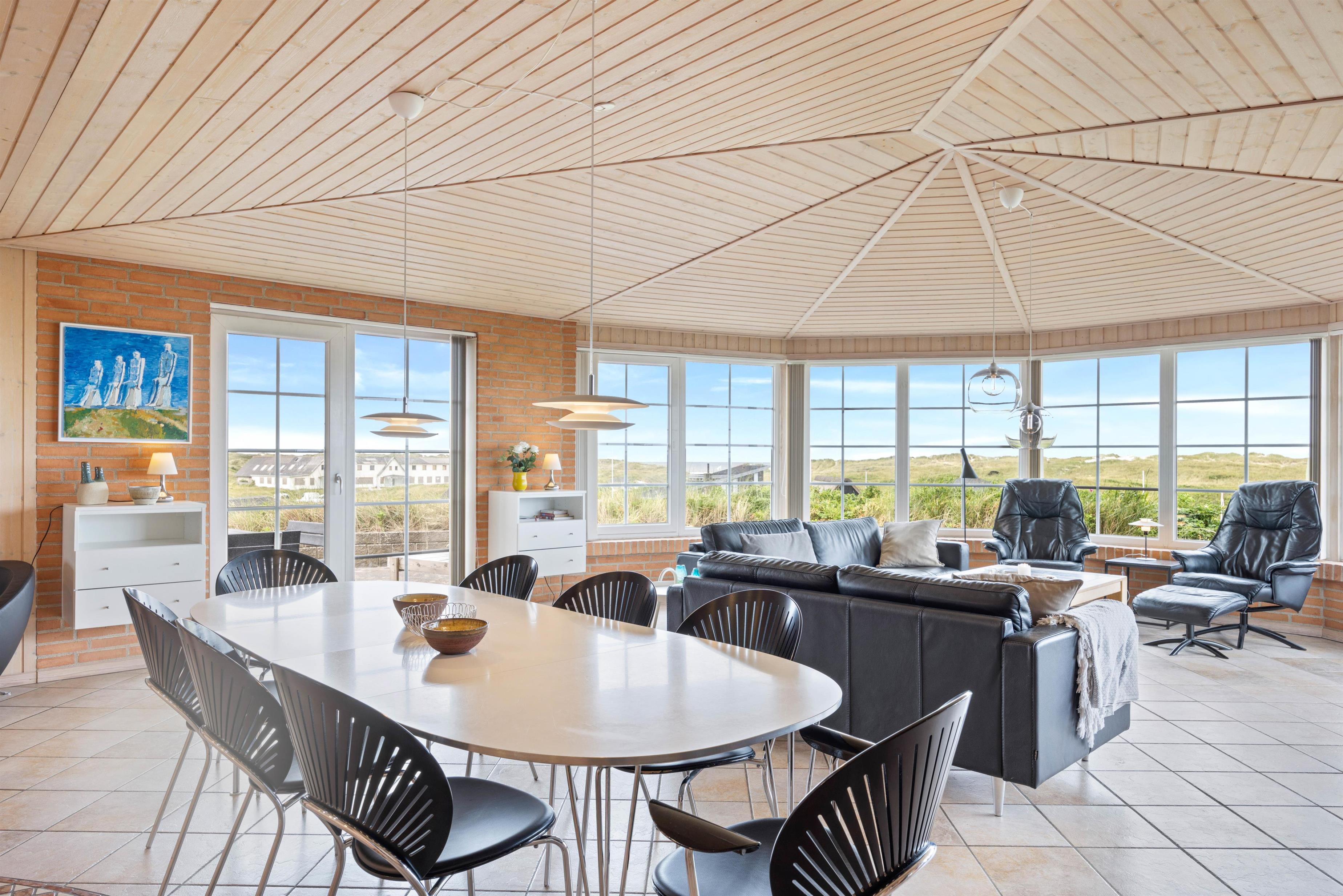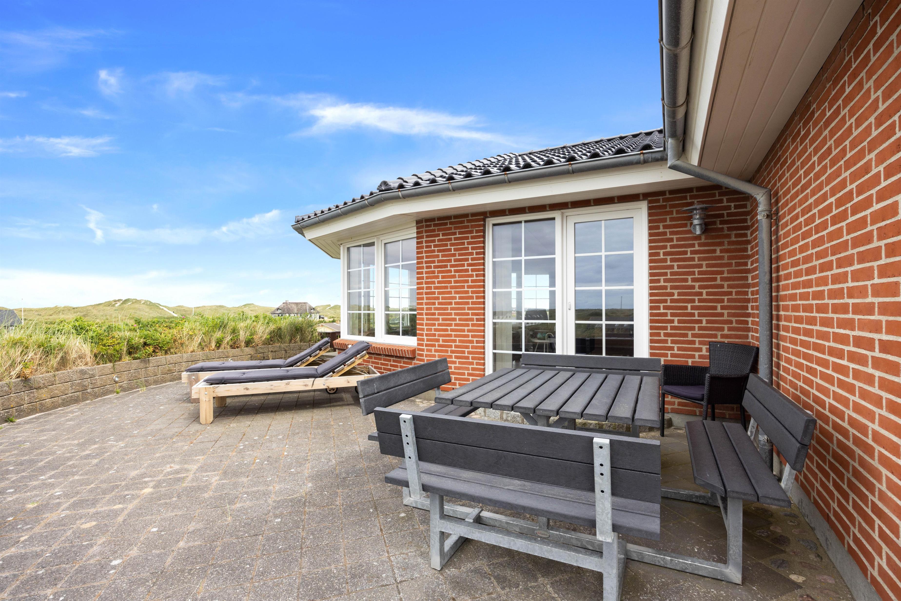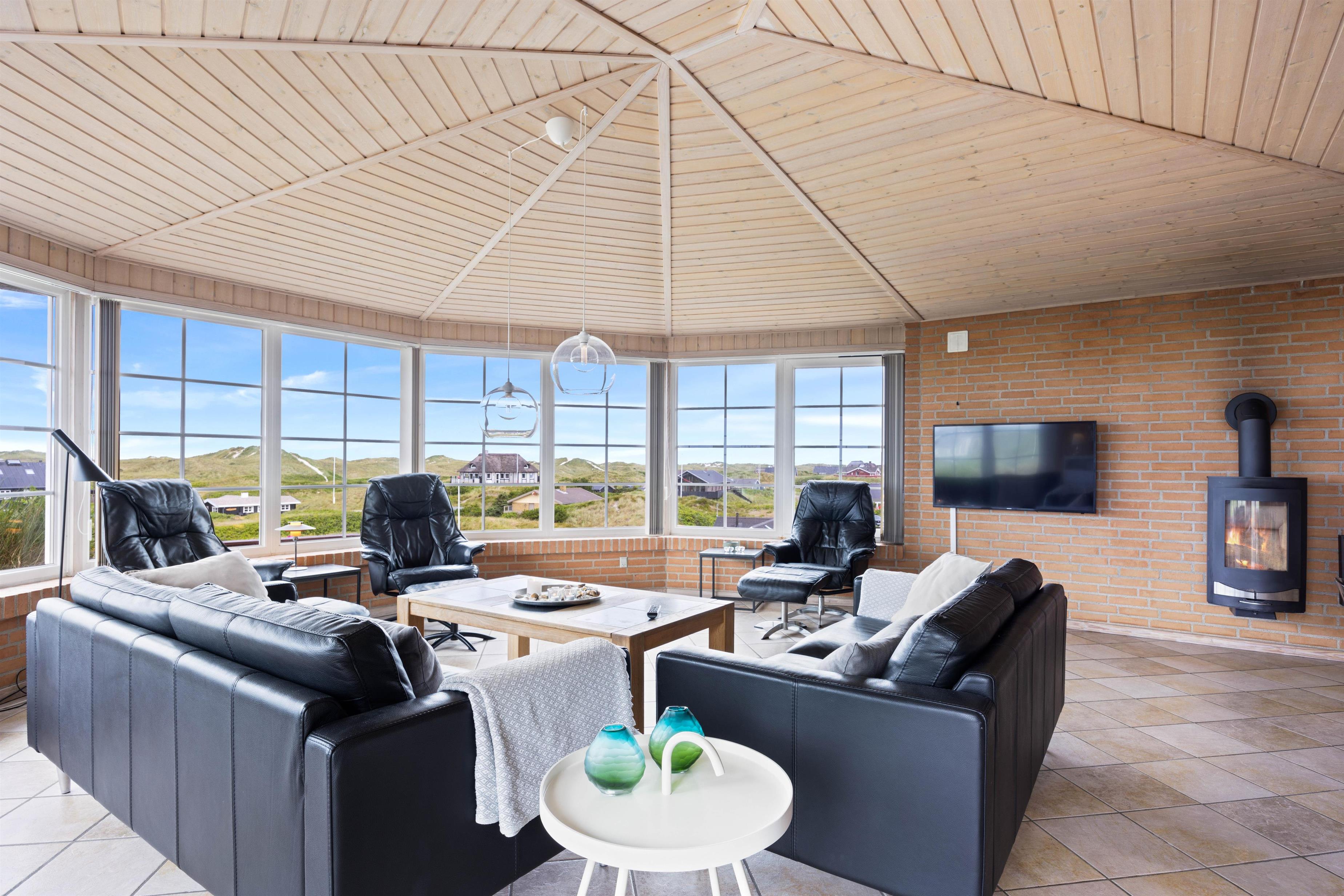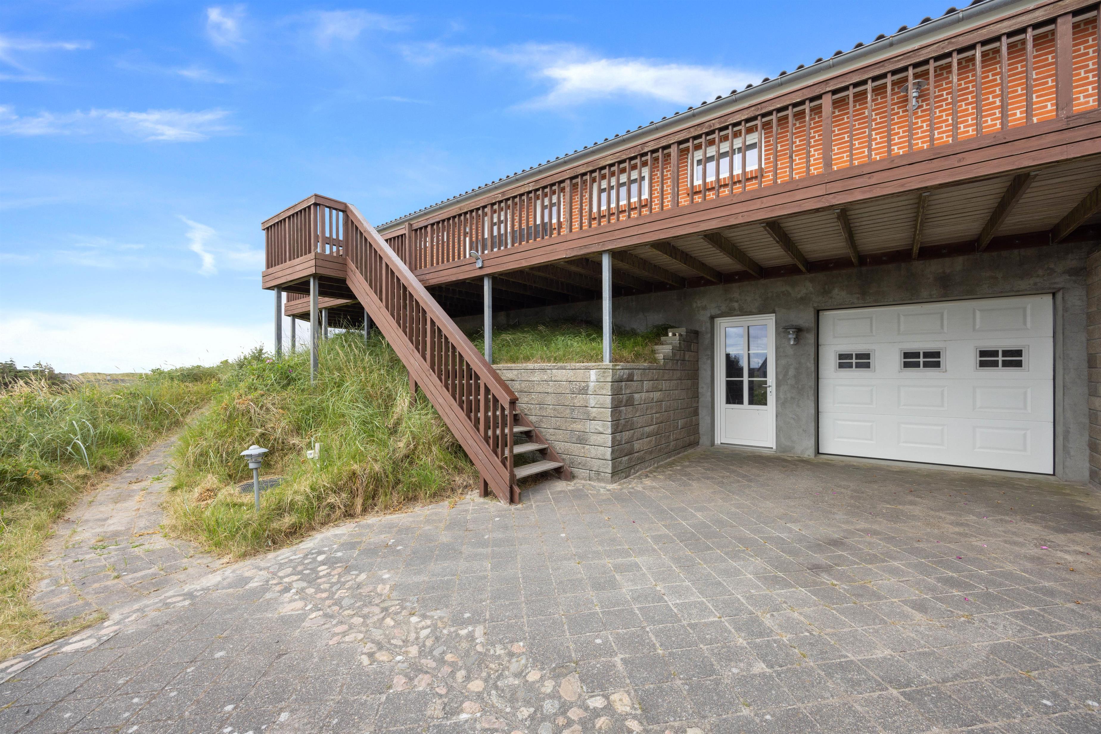 På toppen af en klit finder I dette fine sommerhus med plads til 8 personer. Et solidt og rummeligt feriehus med spa og sauna. Sommerhuset er beliggende på Nordvej 5 i feriebyen, Vejers, på en stor klitgrund (7.688 m2) med flot panoramaudsigt over klitlandskabet. Det er muligt via en sti, der hører til feriehuset, at gå direkte ned på Nordstranden og kun 150 meter fra det brusende Vesterhav. Hjertelig velkommen!