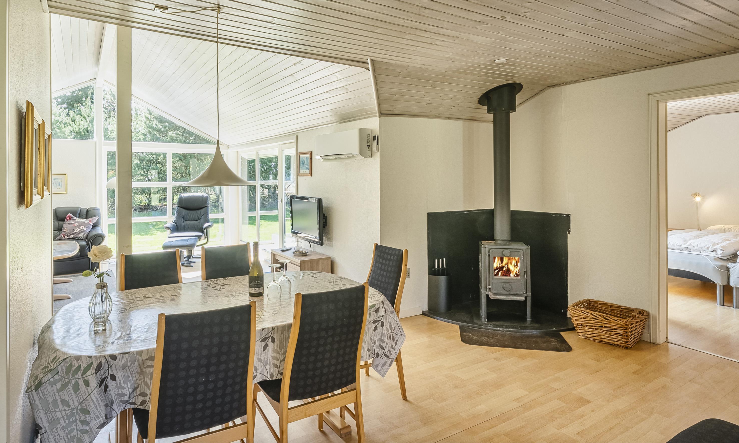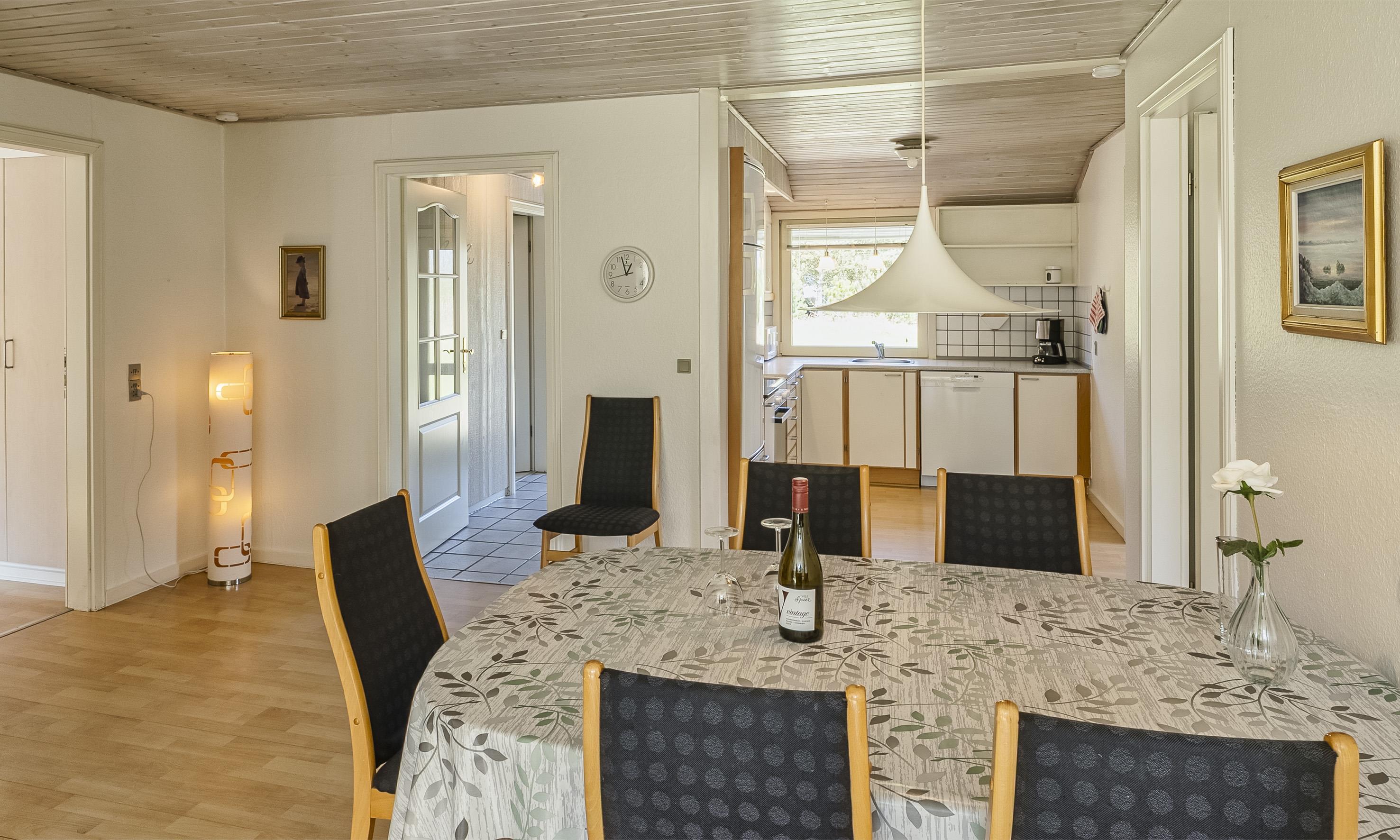 Hyggeligt sommerhus til 6 personer, beliggende på naturskøn lukket grund, ca. 1.200 meter fra stranden. Stue med brændeovn, fjernsyn og parabol (DR programmer). Køkken med mikroovn, køle- og fryseskab samt opvaskemaskine. 3 soveværelser: DS + DS + 2S. Badeværelse med gulvvarme, bruser/wc, spa, sauna og vaskemaskine. Varmepumpe. Terrasse og sandkasse. Trådløs Internet fra Stofa. Rygning er ikke tilladt. Byggeår 1964, renoveret 1992.