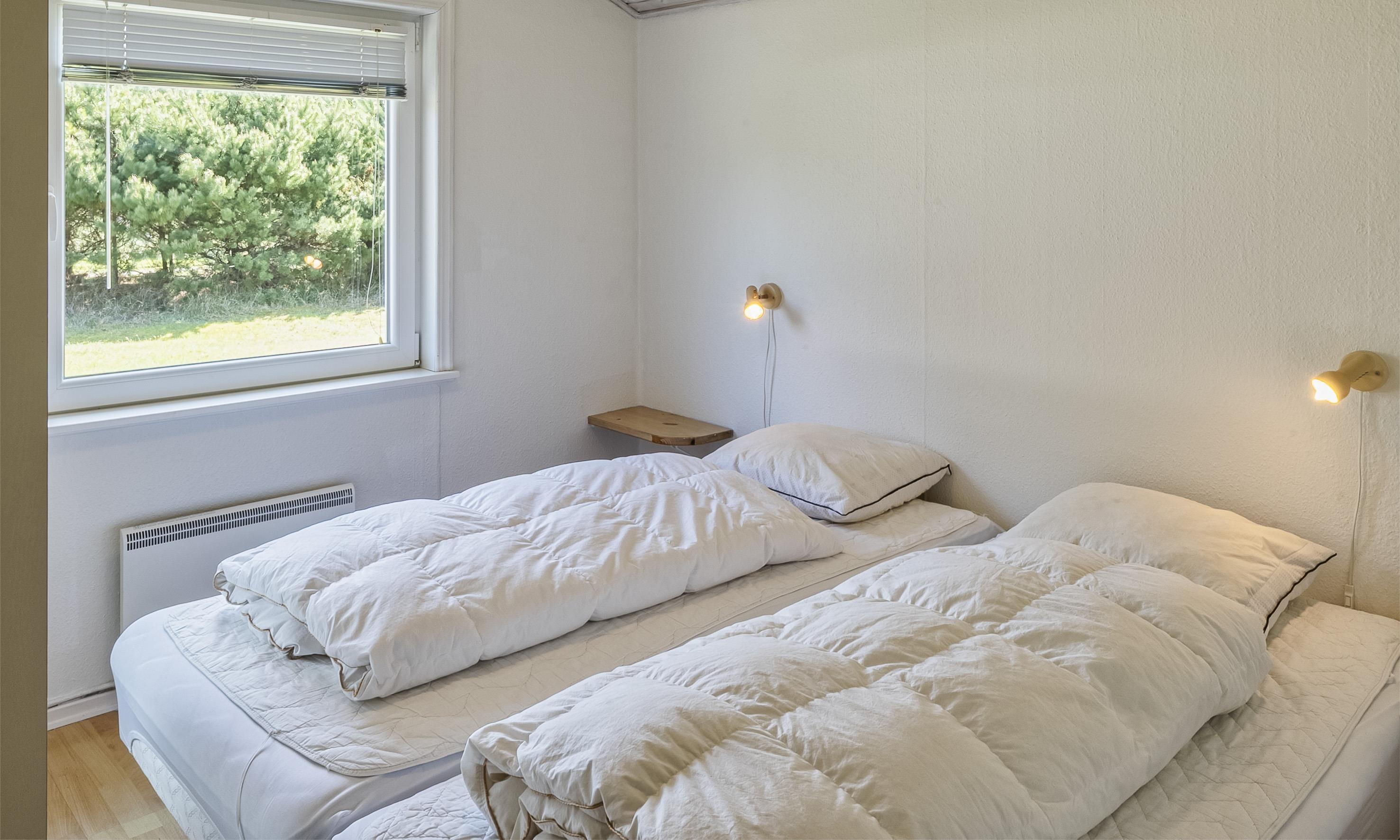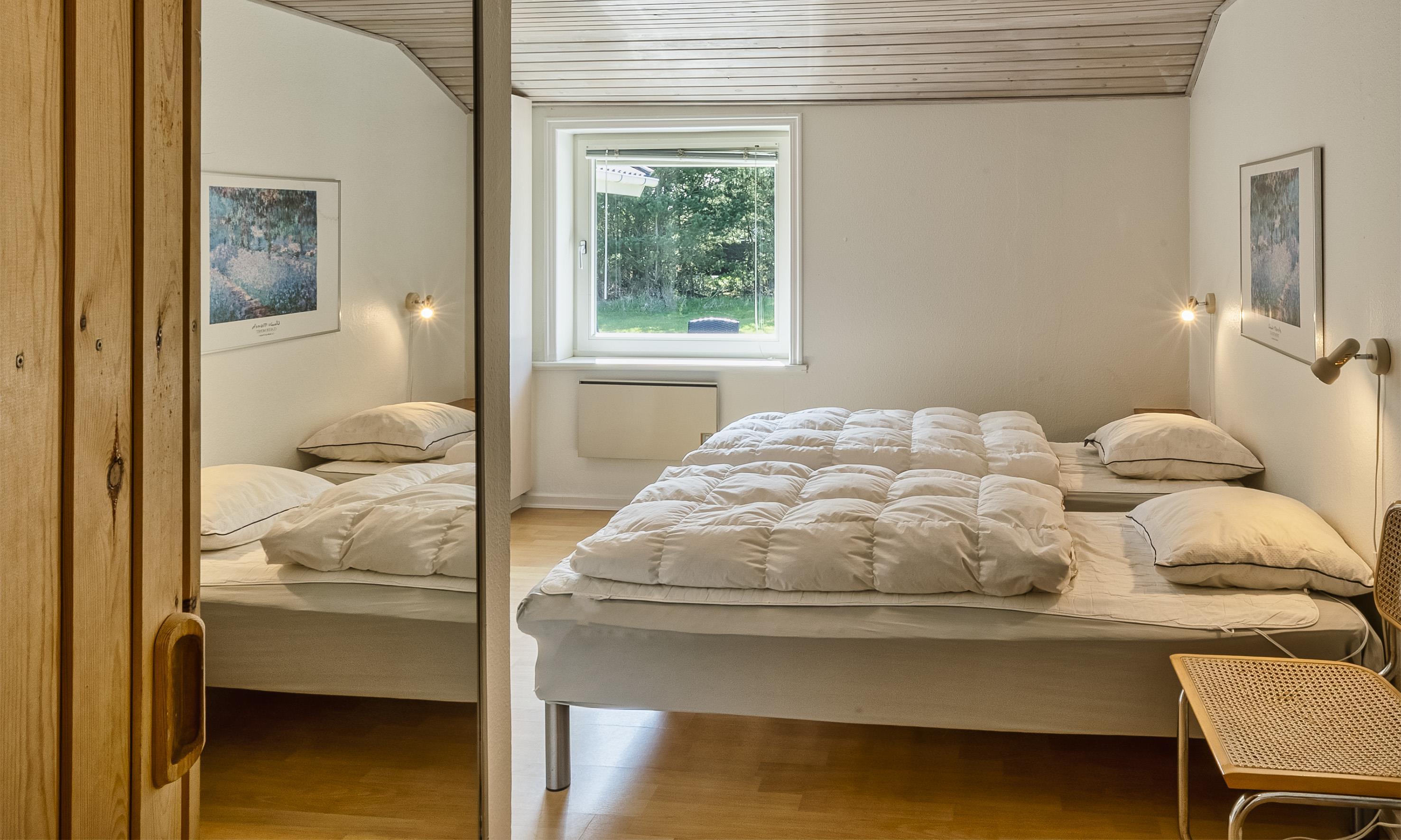 3 soveværelser. 1 med 2 enkeltsenge (á 90x200 cm). 2 med dobbelt senge (180x200 cm)