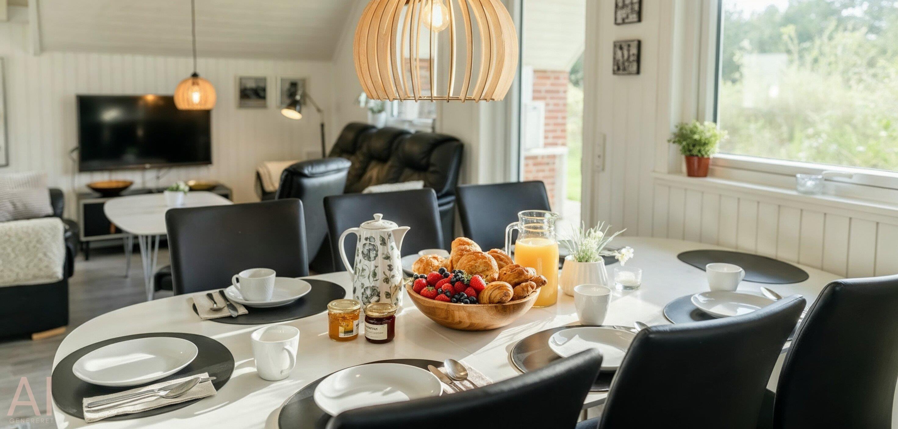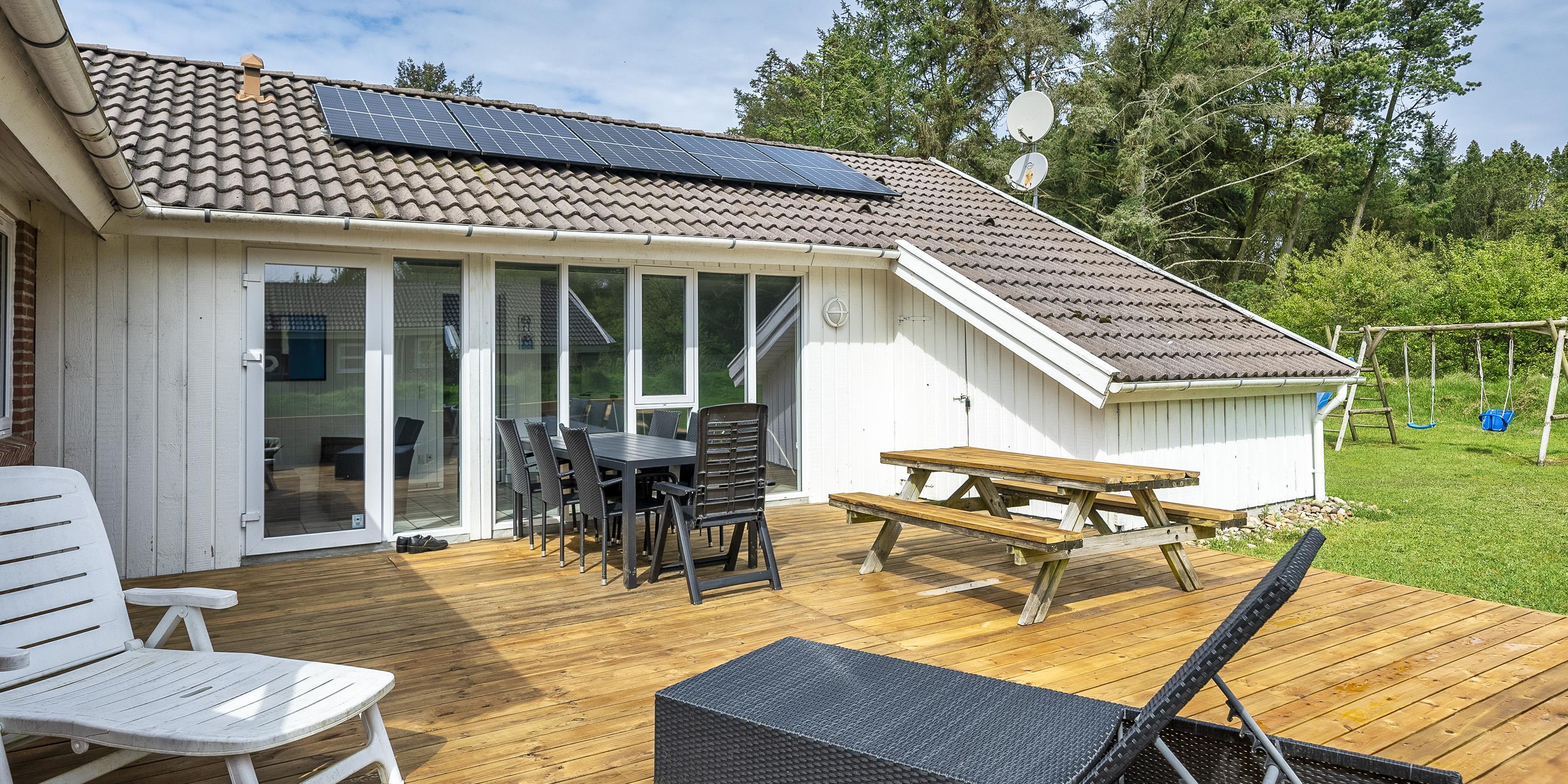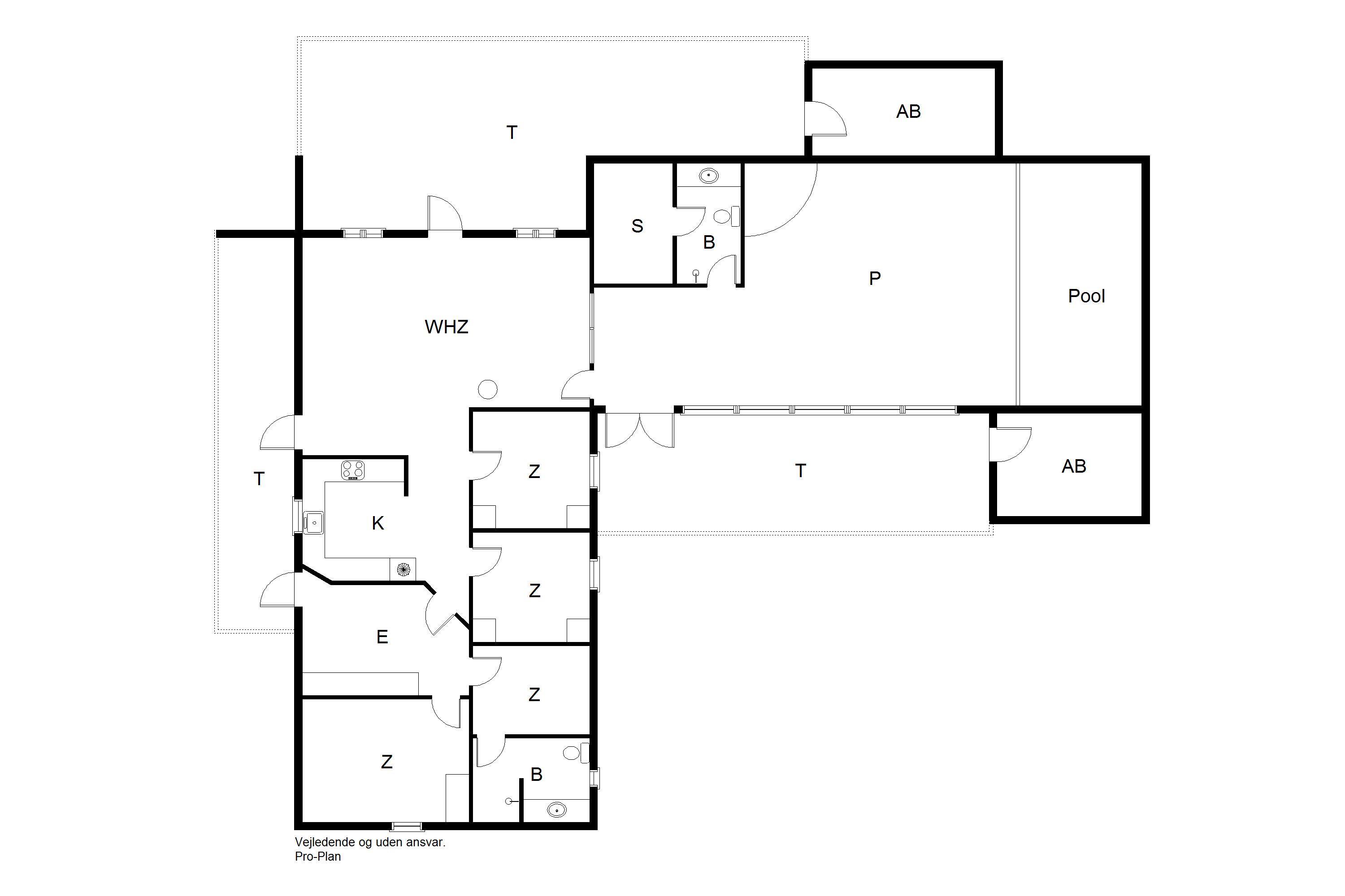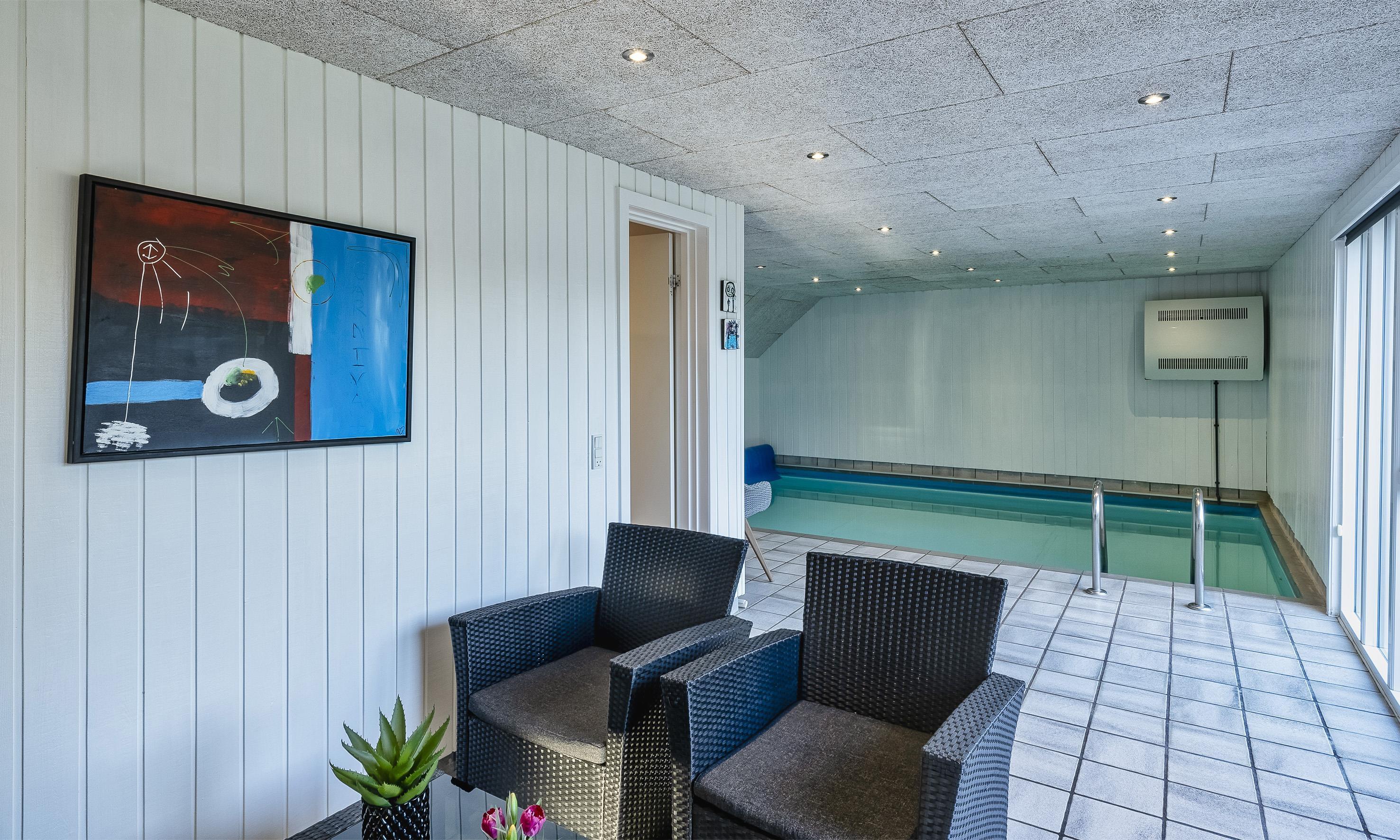 Huset indeholder: Indgang igennem stor entre med vaskemaskine, tørretumbler og god plads til garderoben. Herfra er der adgang til 2 værelser, ét med en dobbeltseng og ét værelse med en smal dobbeltseng. Nyt badeværelser med bruser/wc og vaskearrangement, der er kun adgang til badeværelset igennem værelset med den smalle dobbeltseng. Fra entreen kommer man over i huset opholdsrum med nyere køkken med køle-/fryseskab, opvaskemaskine, indbygningsovn, keramiskkogeplade og mikroovn. Dejlig lys stue i åben forbindelse med køkkenet. Stuen er indrettent med brændeovn, fjernsyn, parabol og Chromecast (ingen danske programmer). Trådløs Internetadgang. Spisestue afdeling med udgang til vestvendt terrasse samt kig til poolrummet. Poolrummet er med ca. 5,4 x 3,5 x 1,15 meter (længde x brede x dybde) stor bassin og spa til selvbetjening. Huset har luft til vand varmepumpe til opvarmning af poolen for reduktion af strømforbruget. Badeværelse med toilet, bruser, vaskearrangement og sauna. Huset byder ydermere på 2 soveværelser med hver 1 smal dobbeltseng. 4 soveværelser: DS + DS + DS + DS. De udvendige forhold byder på flere små terrasser, så både mogen middag og aftensolen kan nydes på et af terrasserne. Der forefindes en sandkasse og en gynge til de mindre børn. Adgang til Oksbøl Badeland 2026. Huset er tilladt med max. 2 hunde. Rygning er ikke tilladt i huset! Byggeår 1986, renoveret 2019 og 2020.