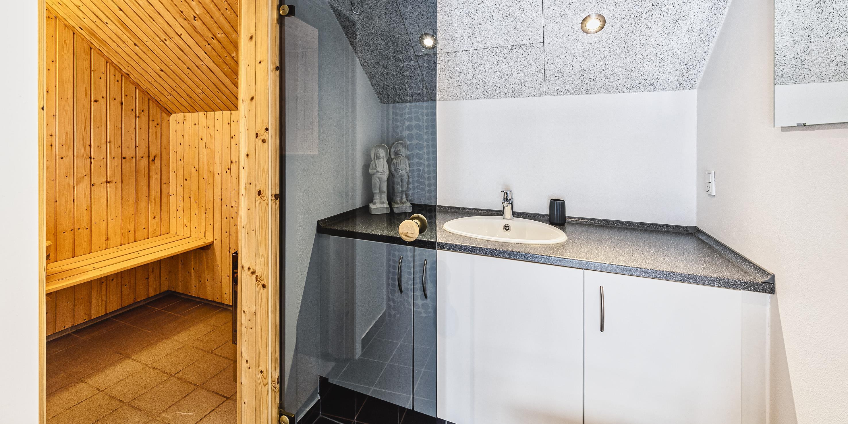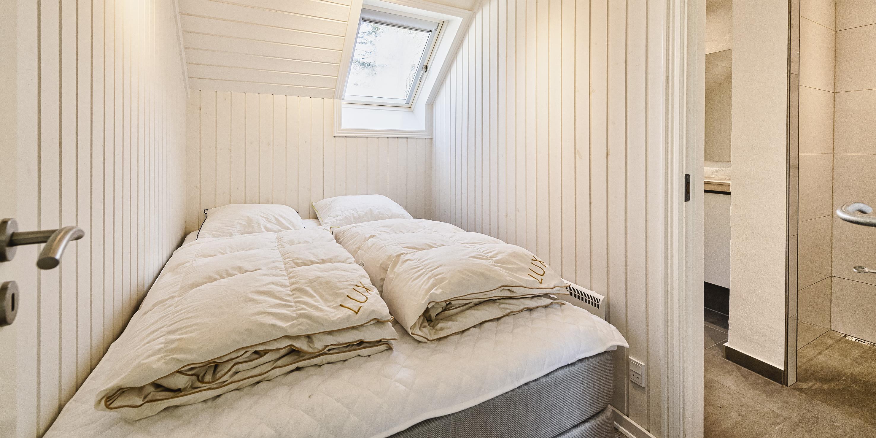 4 soveværelser. 1 med dobbeltseng 180x200 cm. 3 med smal dobbeltseng ( 140x200 cm)