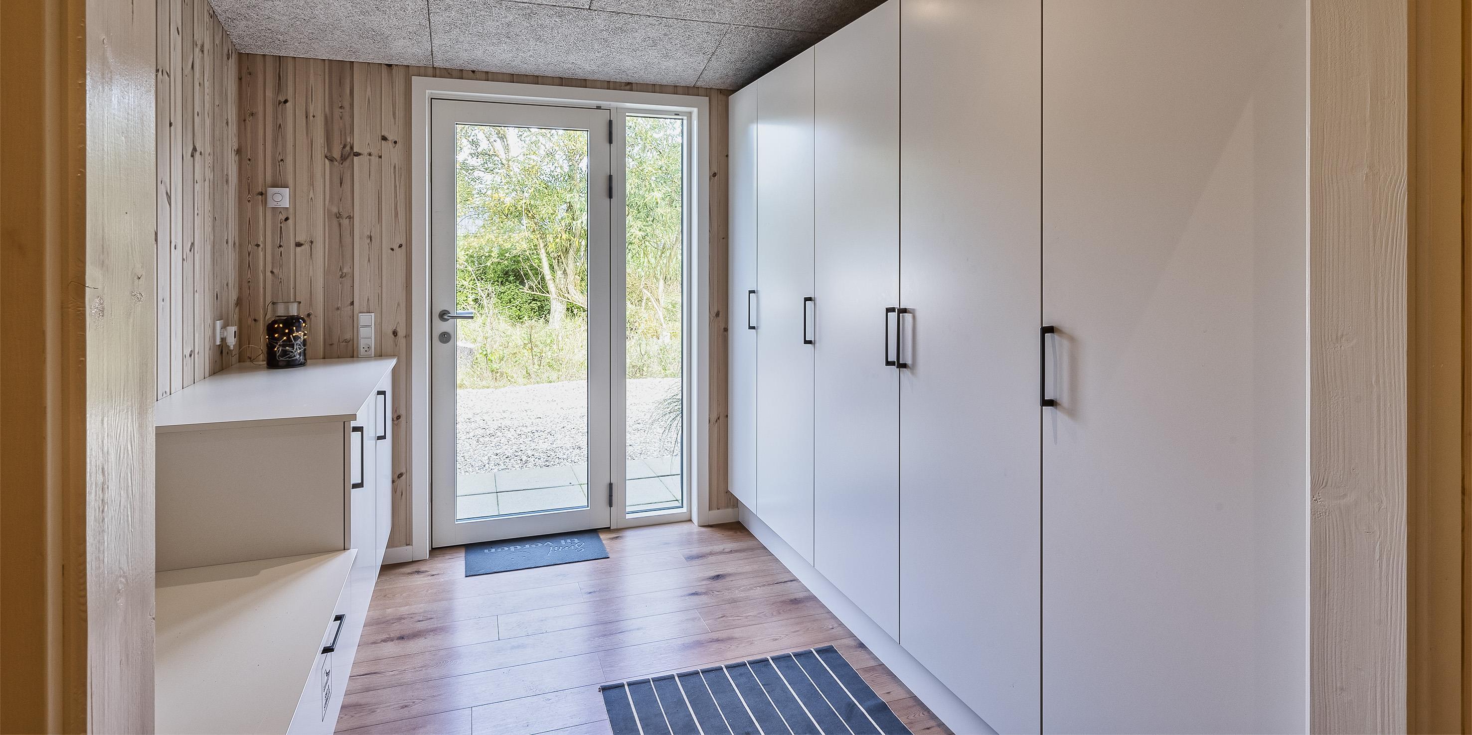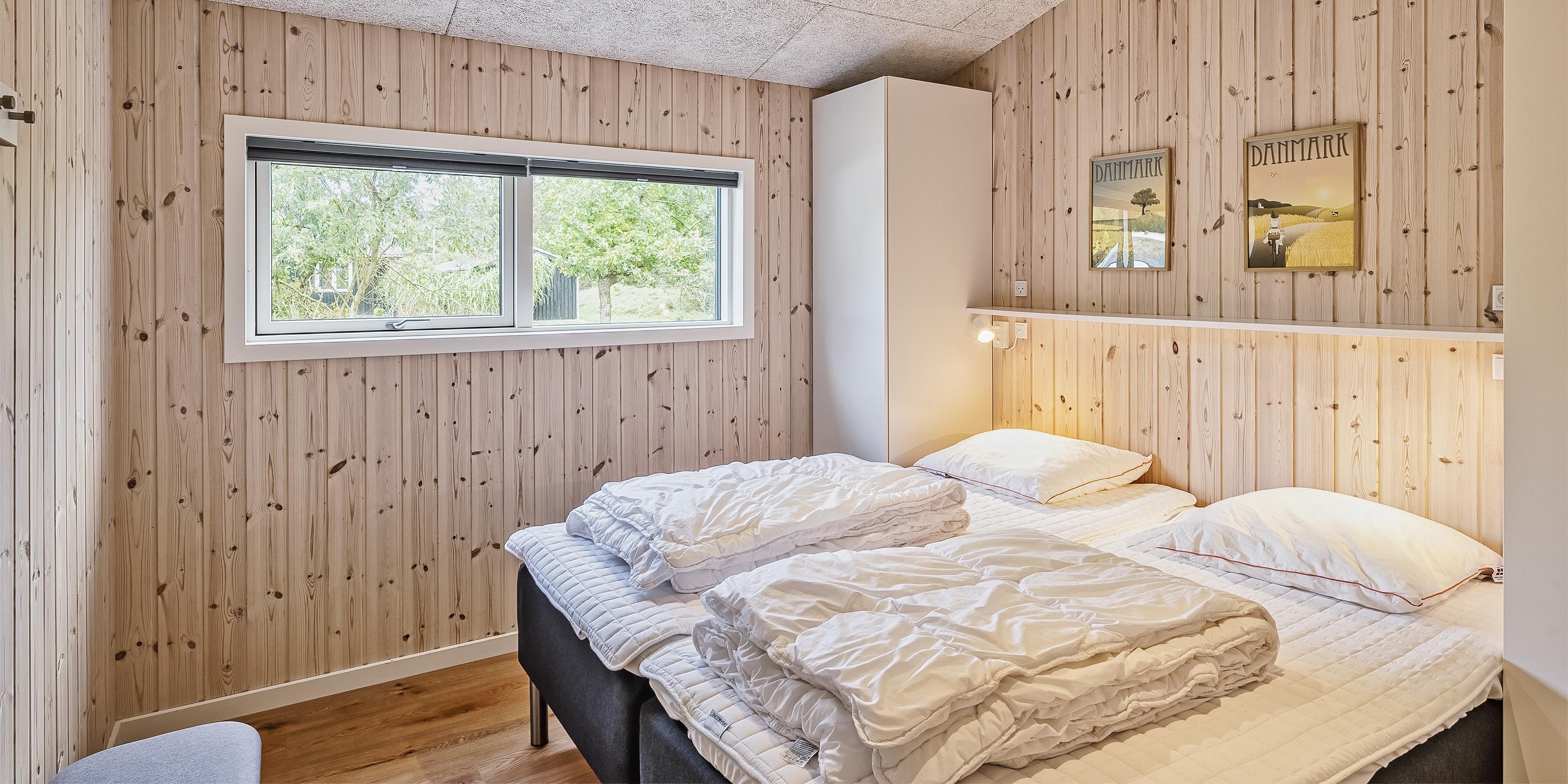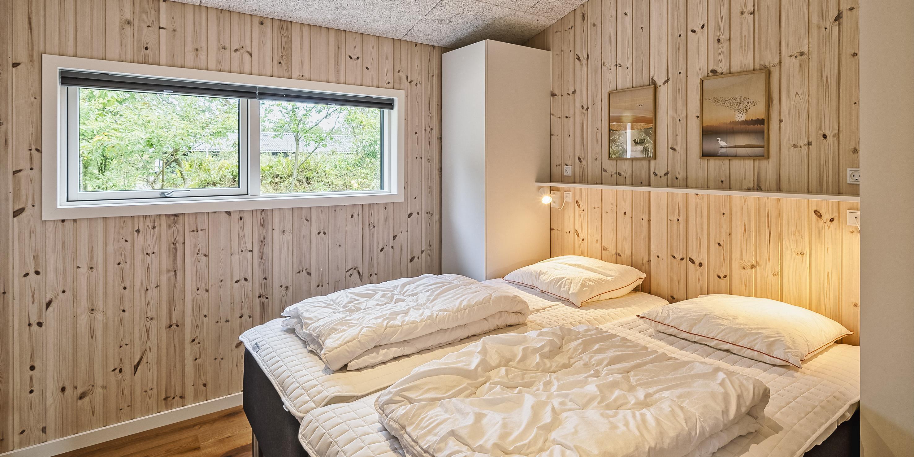 Sommerhuset: Entre indgangsparti med god plads til garderoben og ekstra opbevaring. Fra indgangspartiet kommer man videre til gangen, som fører til begge husets badeværelser, husets første soveværelse og aktivitetsrum. Fra aktivitetsrummet er der indgang til endnu et soveværelse. Det ene badeværelse er med vaskemaskine og tørretumbler. Fra gangen kommer man videre ind et stort køkkenalrum samt stue ud i et. Rummet er lyst og dejligt med gode vinduespartier og udgang til terrassen. Køkkenet fremstår med alt komfort såsom opvaskemaskine, mikroovn, kogeplade, emhætte og køle-/fryseskab. Fryser er med 8 skuffer. Stort spisebord med plads til 8 gæster. Dejlig opholdsstue med fjernsyn med google Chromecast samt trådløs internetadgang. De danske tv-programmer streames via google Chromecast. Herfra er der udgang til en dejlig terrasse miljø. Under den overdækkede terrasse forefindes ude jacuzzi og sauna. Dagen kan nydes fra morgen til aften på den store delvis overdækket terrasse. Fra stuen er der adgang til de resterende 2 andre soveværelser. 4 soveværelser: DS + DS + DS + DS.
