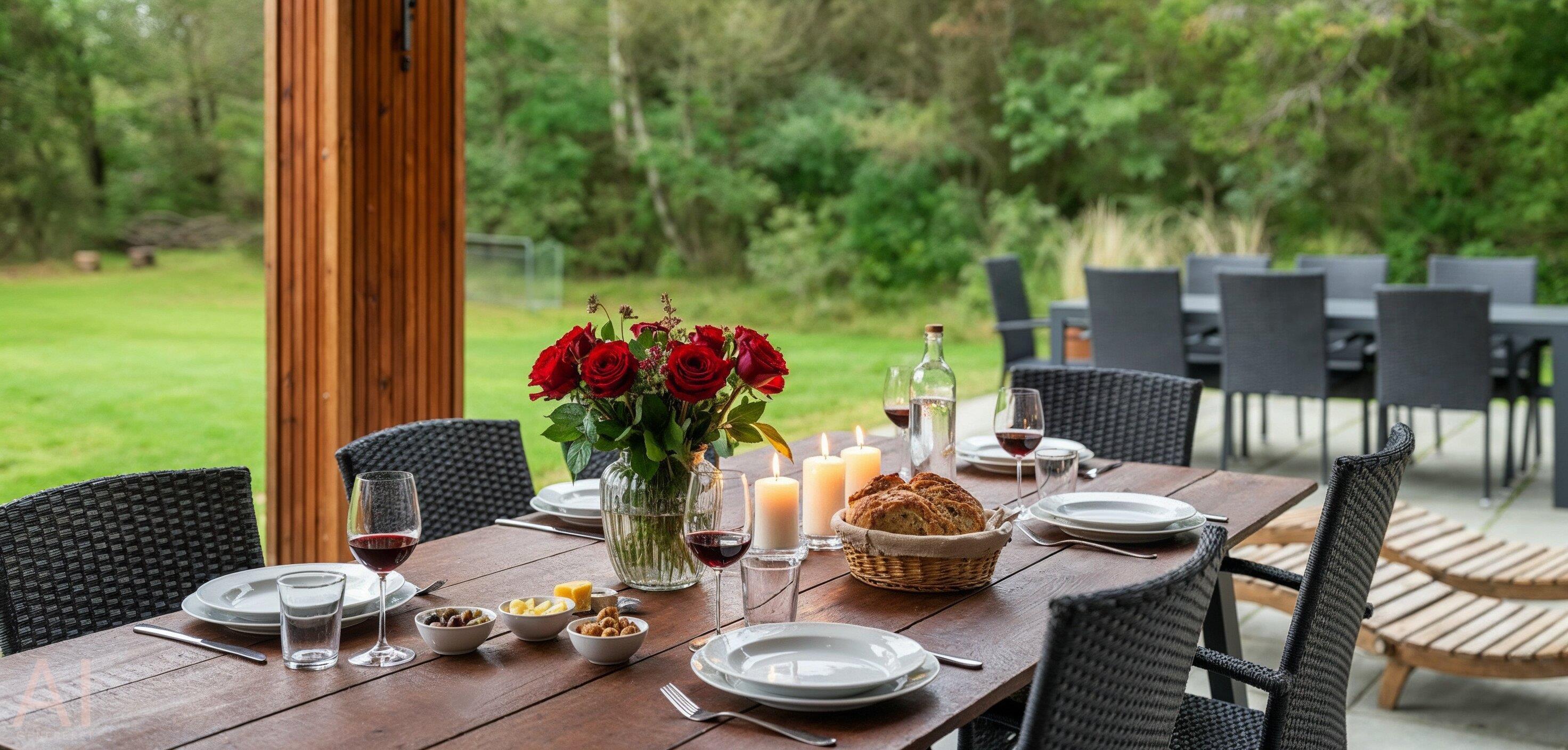 De udvendige faciliteter byder på dejlig stor delvis overdækket terrasse, hvor aftnerne kan forlænges og nydes til hen i foråret/efteråret. Den overdækkede del er 30 m2 stor. I forbindelse med den overdækkede terrasse forefindes der en ude jacuzzi og sauna samt en udebruser, som kan benyttes om sommeren. Sommerhuset ligger på en 2288 m2 stor grund med gode parkeringsforhold.