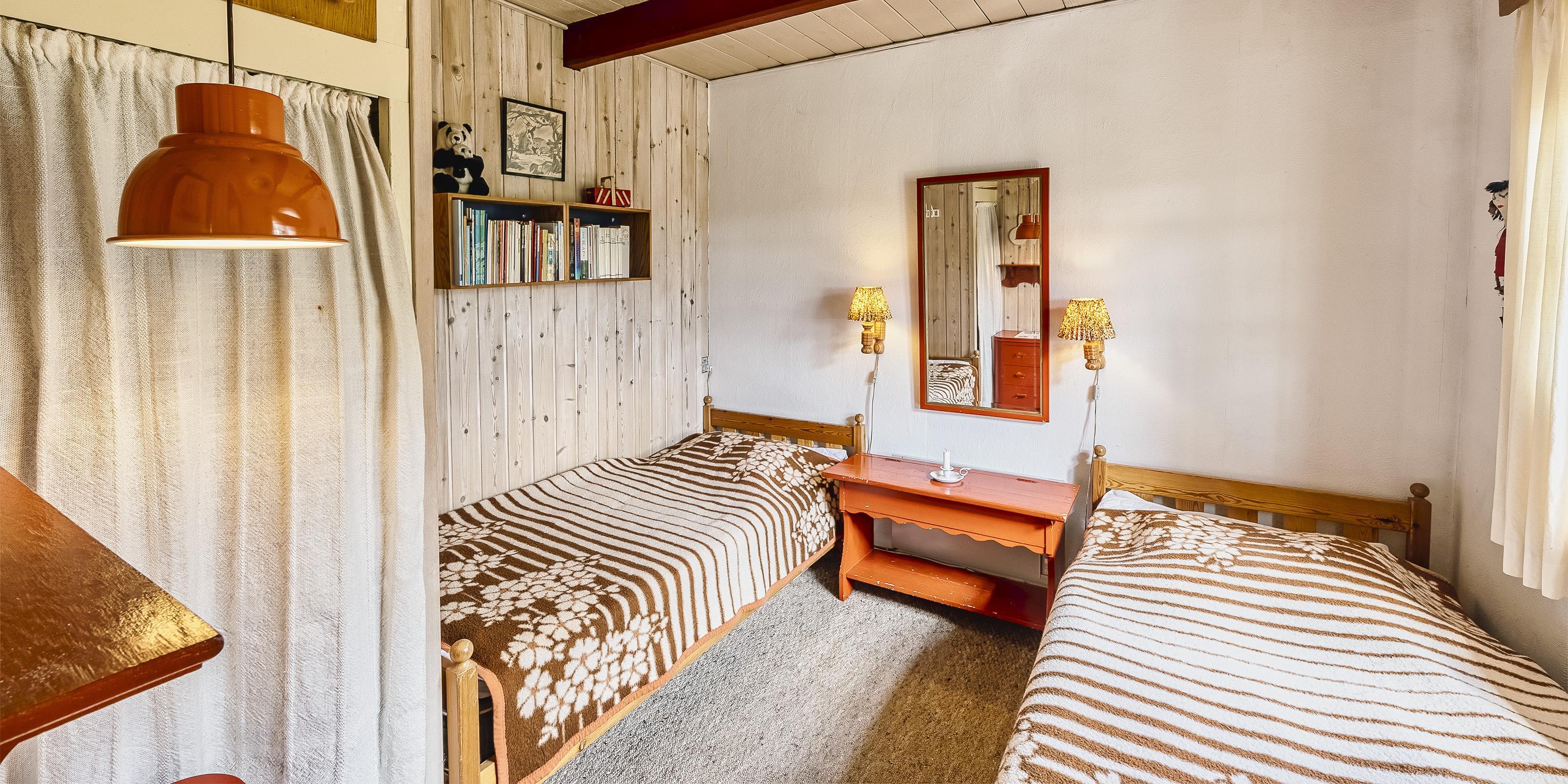 2 soveværelser. 1 med 3/4 seng. 1 med 2 enkeltsenge (á 90x200 cm).