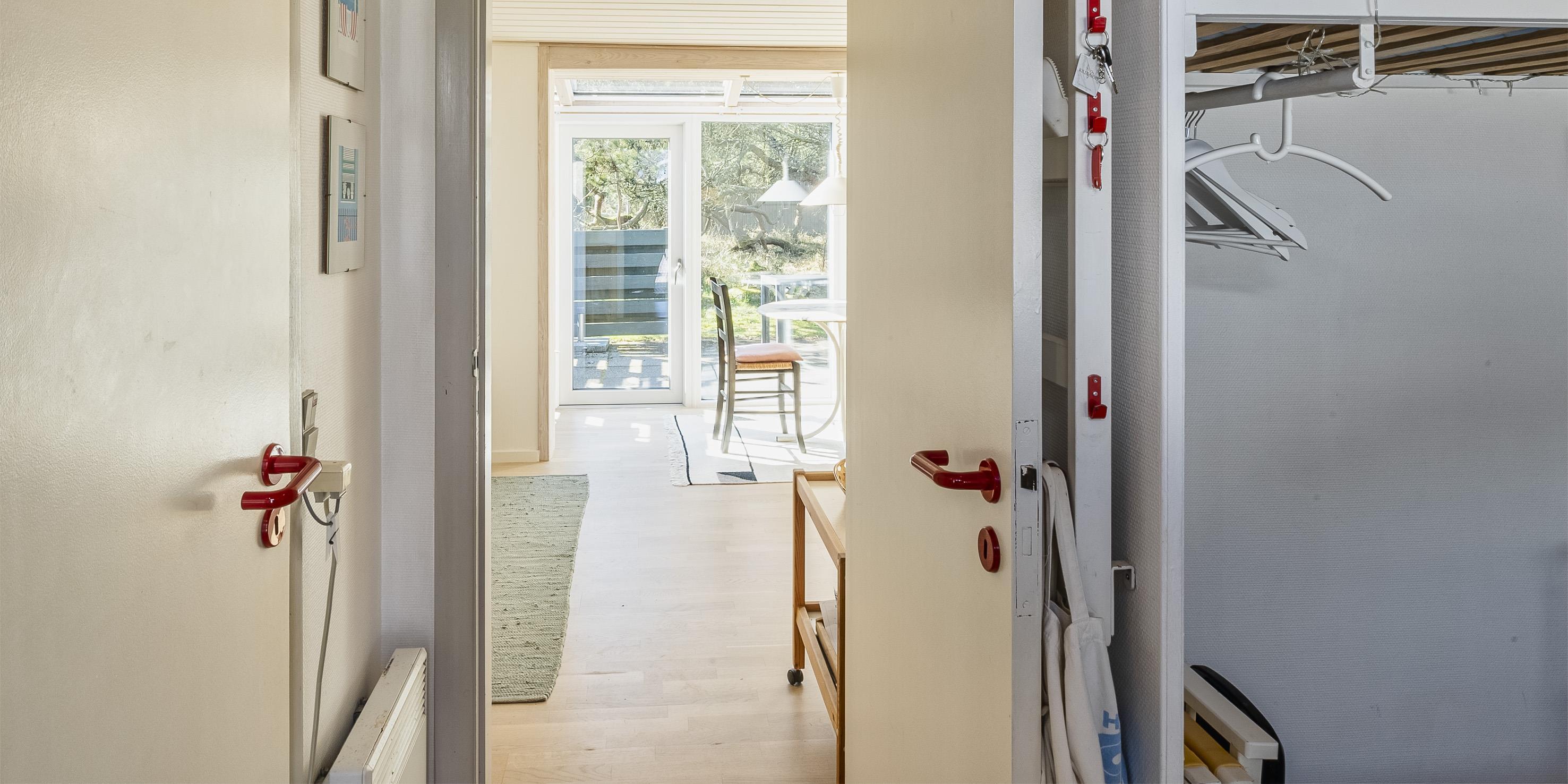 Lejligheden er 32 m2 og fremstår lyst. Indeholder.: Entre/indgang. Åbent opholdsrum med stue, køkken og spiseplads. Køkken med køleskab og mini-ovn. Dejlig spiseplads med udsigt til terrassen samt udgang til en rigtig hyggelig lille solrig terrasse (mod syd) med gas-grill (sommer). Stue med sovesofa og trådløs internet. Der er ingen fjernsyn i lejligheden. Soveværelset er i åben forbindelse med gangen, DS. Badeværelset er med bruser, håndvask og toilet. Rygning og husdyr er ikke tilladt. Der er mulighed for at benytte swimmingpoolen ved Familie Camping for et symbolsk beløb. Byggeår 1961. Hyggelige fællesområder med bænke og bålplads. 1 parkeringsplads udenfor rækkehuset.