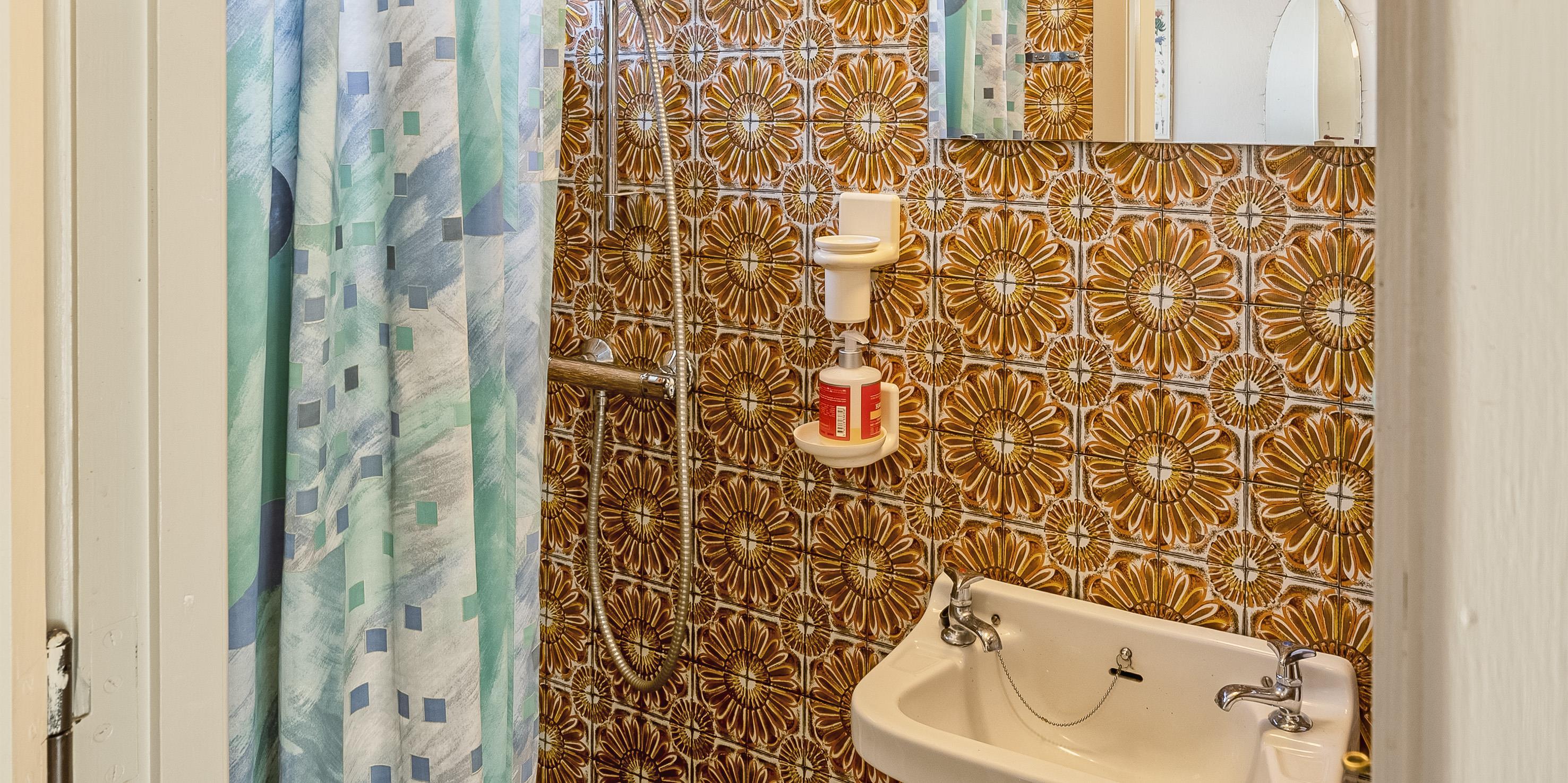 Bad med toilet, bruser og vask